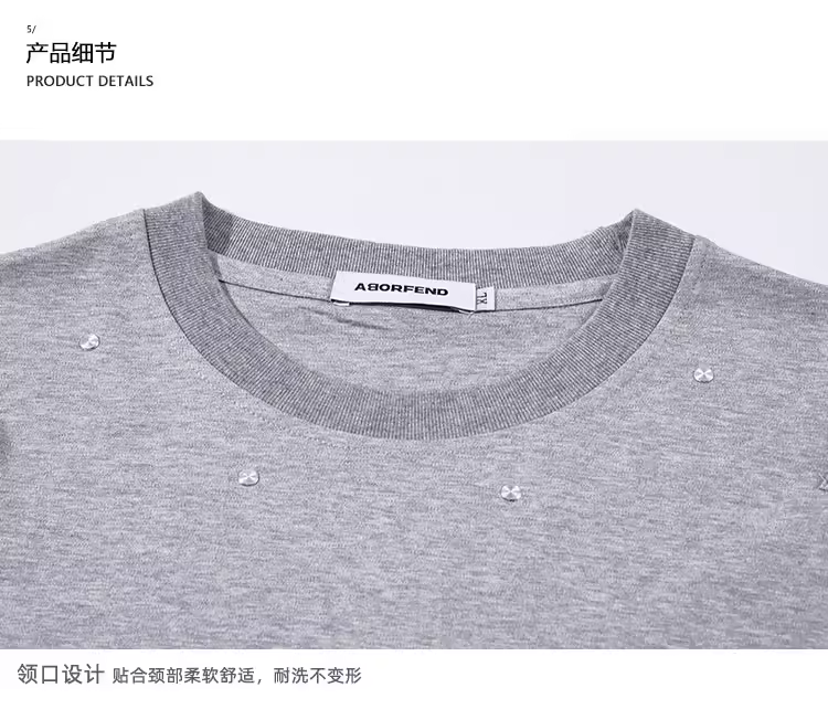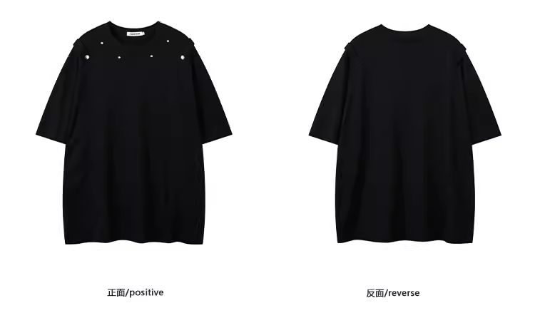 K787 Áo thun ngắn tay phong cách retro Mỹ màu trơn giản dị đường phố unisex oversize hip-hop đính đá cặp đôi