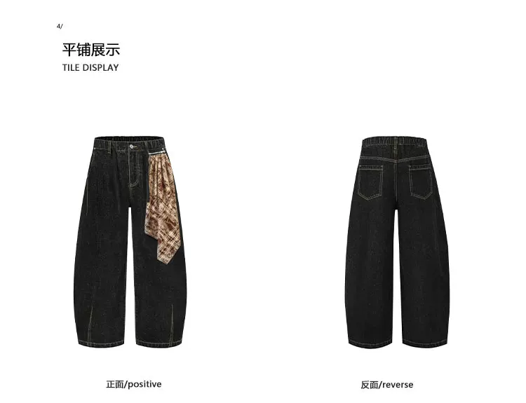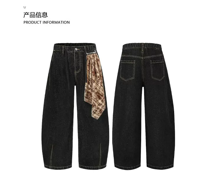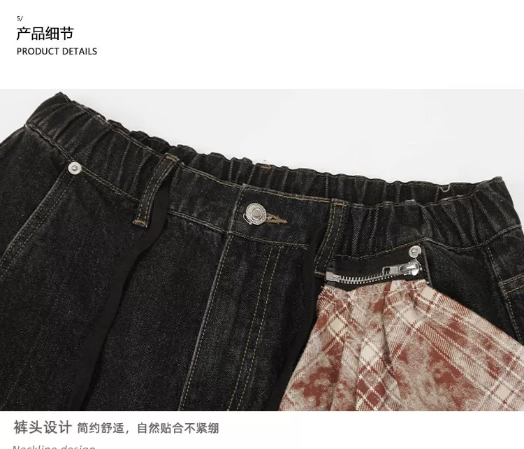 K787 Quần jean kẻ sọc cổ điển kiểu Mỹ chắp vá unisex oversize niche quần ống thẳng thông thường hợp thời trang