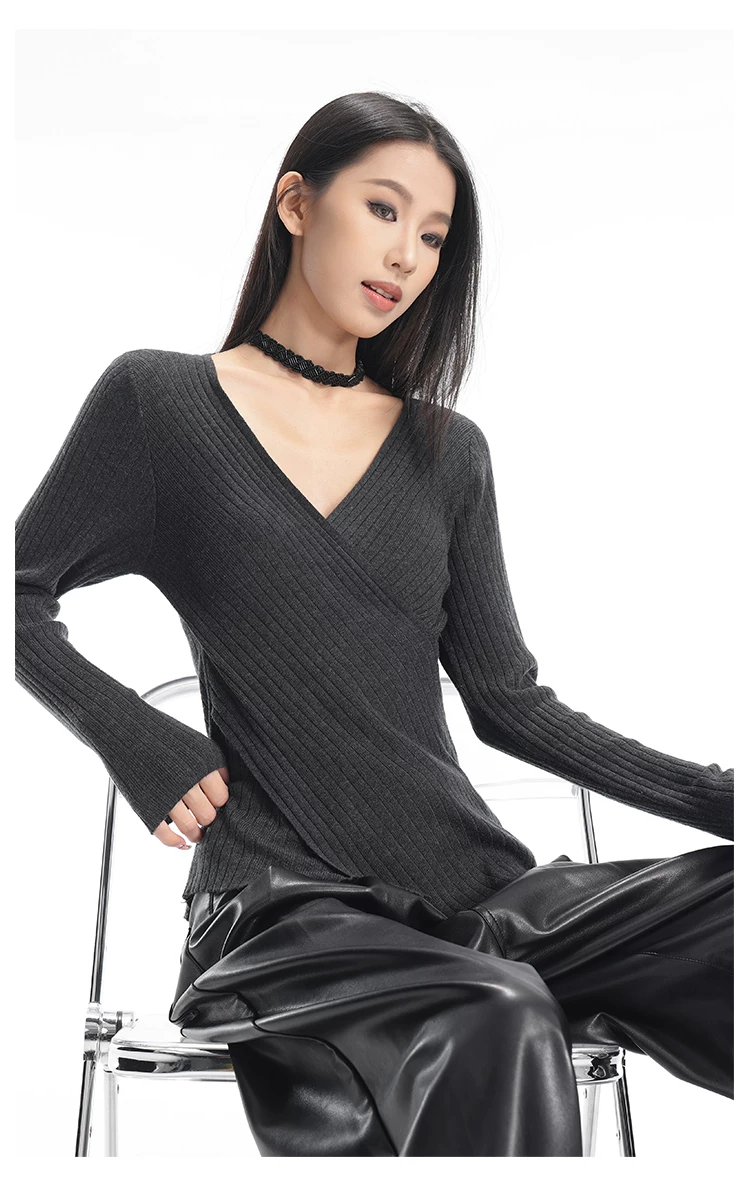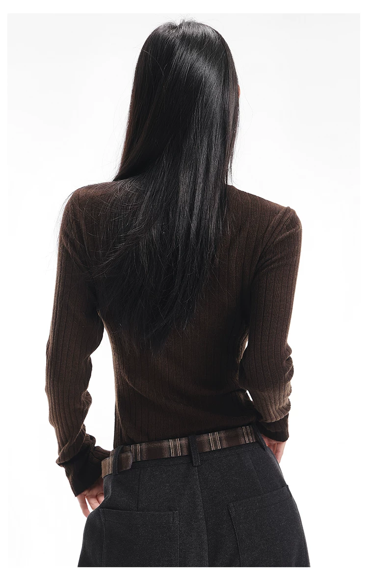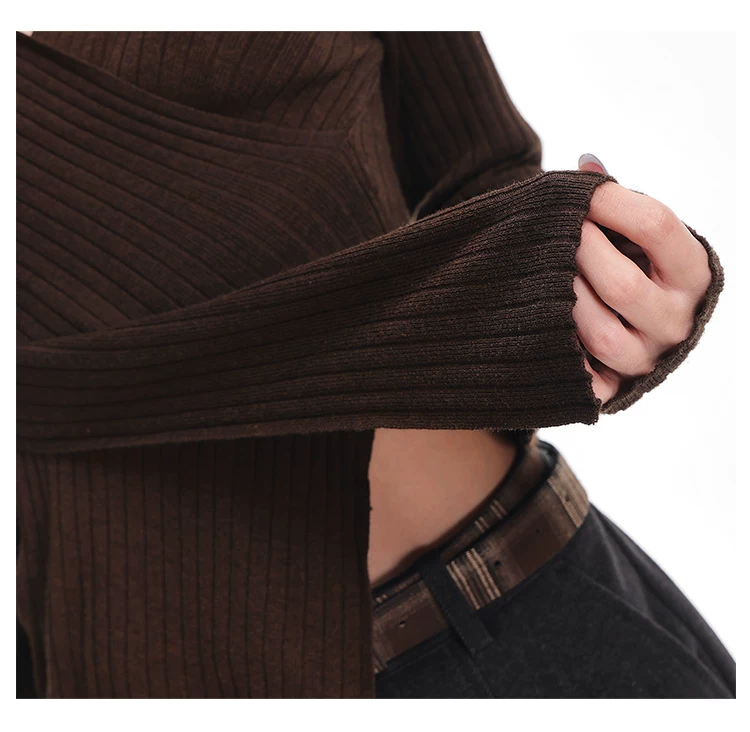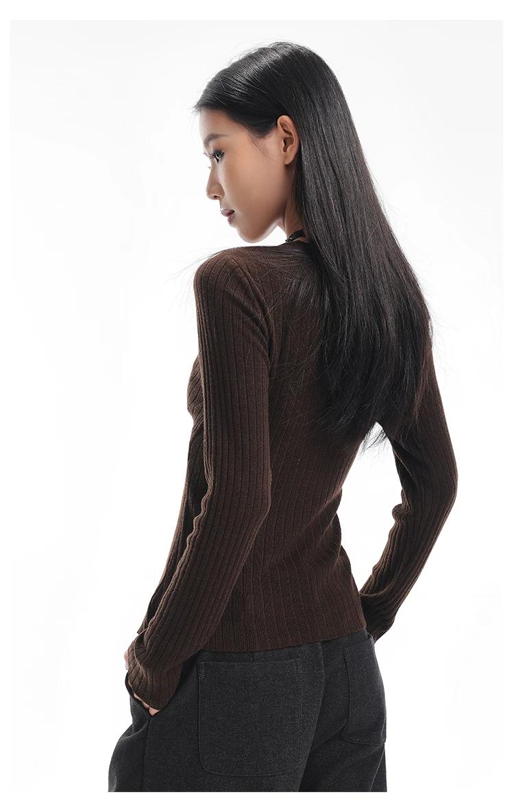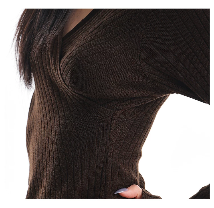 - KEN STUDIO Áo dệt kim dài tay màu cà phê mùa thu đông mới dành cho nữ có cổ chữ V, kiểu dáng ôm sát và tạo vẻ thon gọn với áo lót bên trong