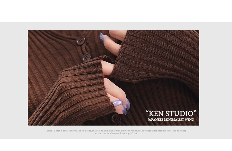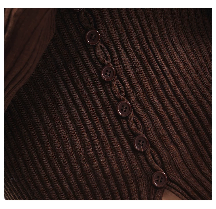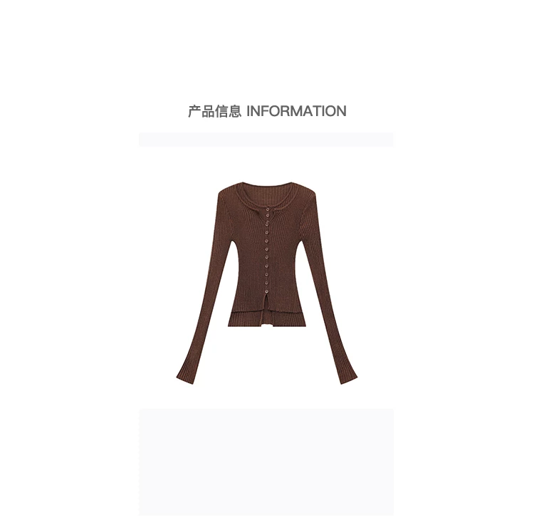 - KEN STUDIO Áo dệt kim dài tay màu cà phê thu đông mới dành cho nữ với thiết kế giả hai mảnh áo lót thon gọn