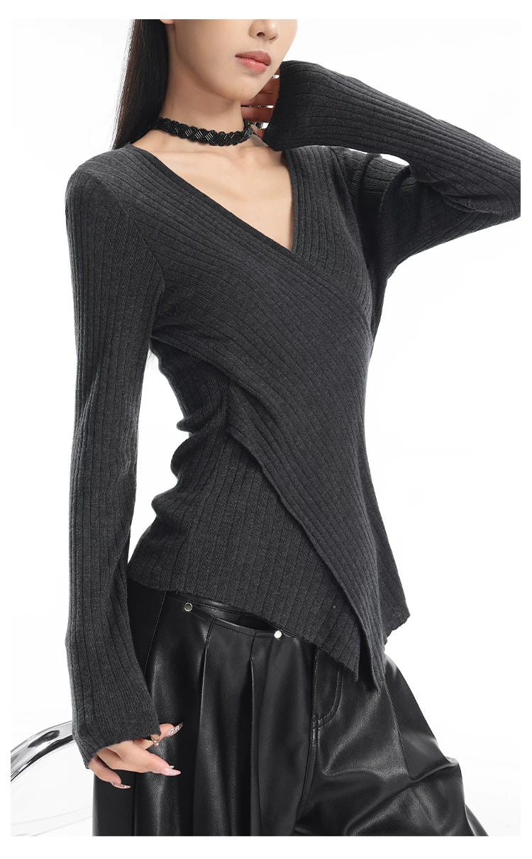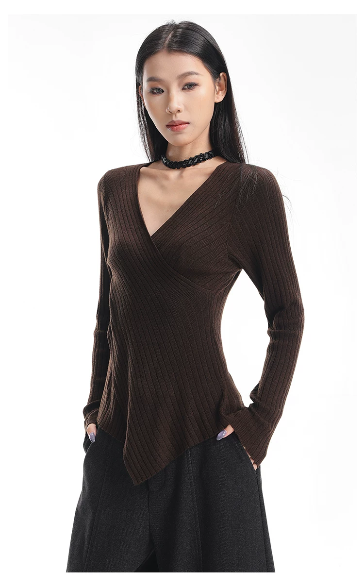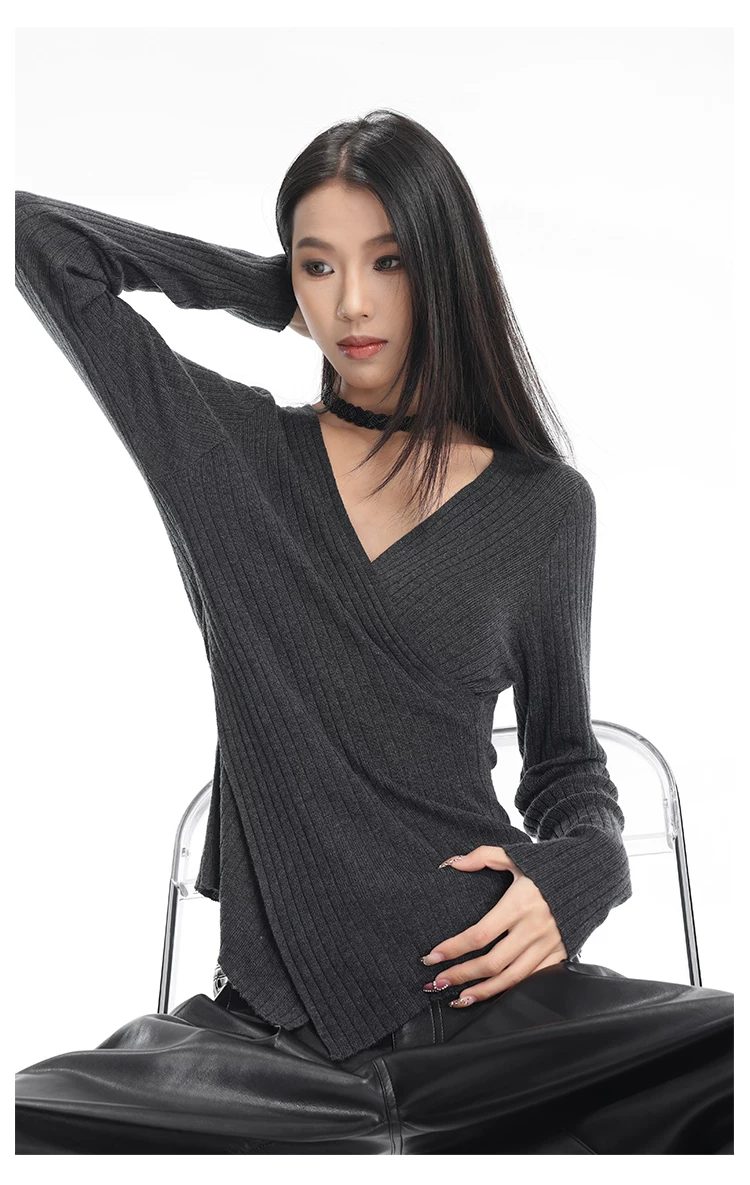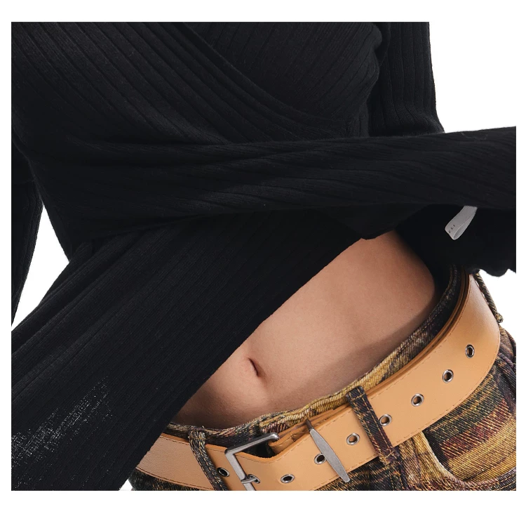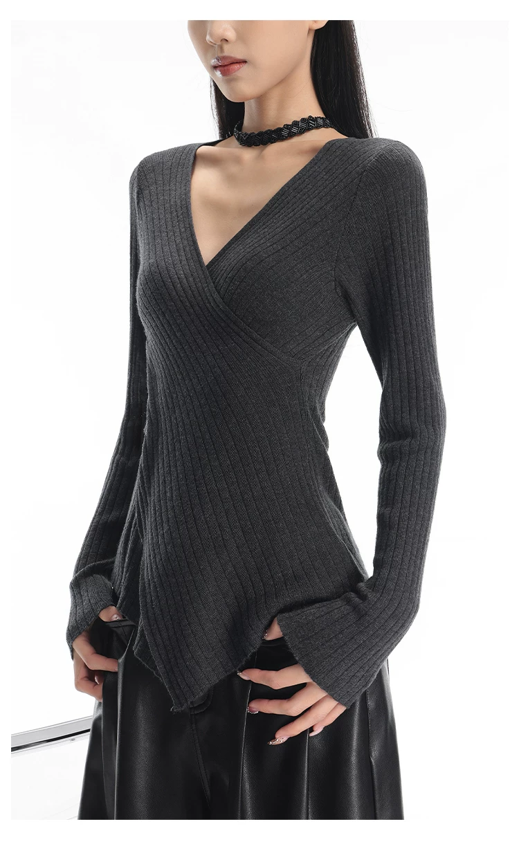 - KEN STUDIO Áo dệt kim dài tay màu đen thu đông mới dành cho nữ, cổ chữ V, ôm vừa vặn, áo lót đa năng, áo bên trong