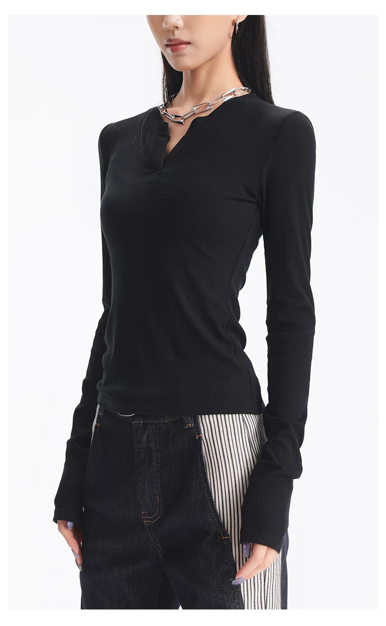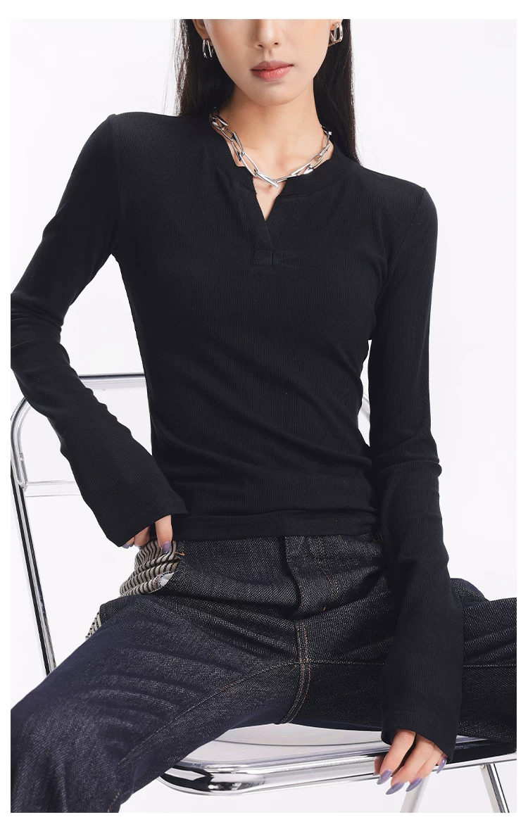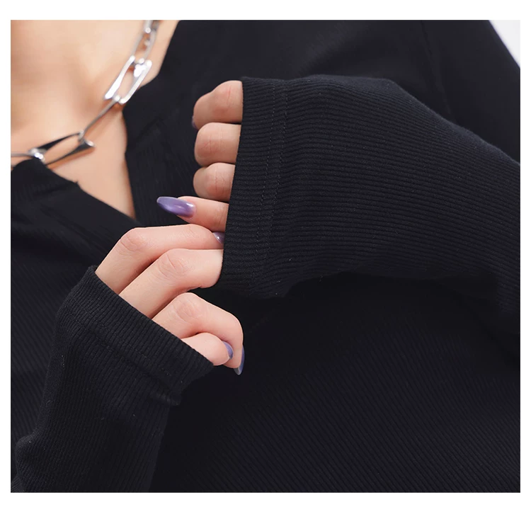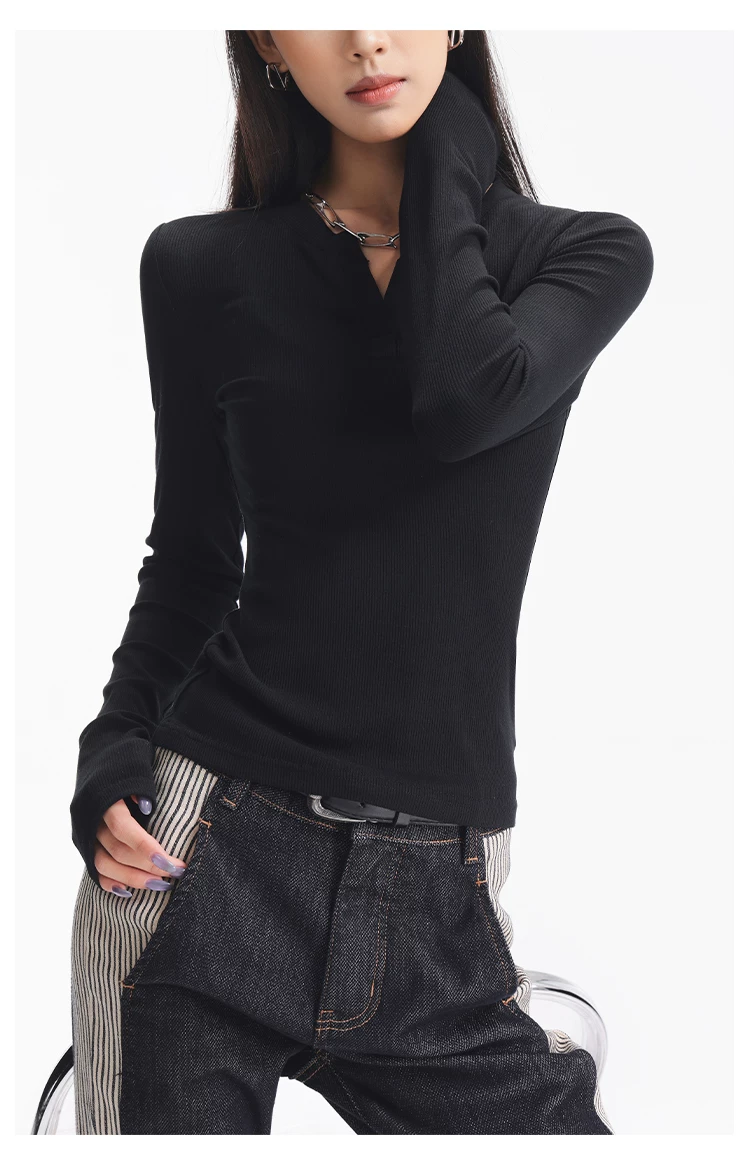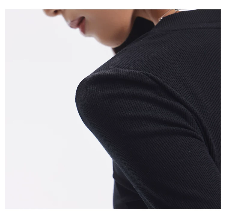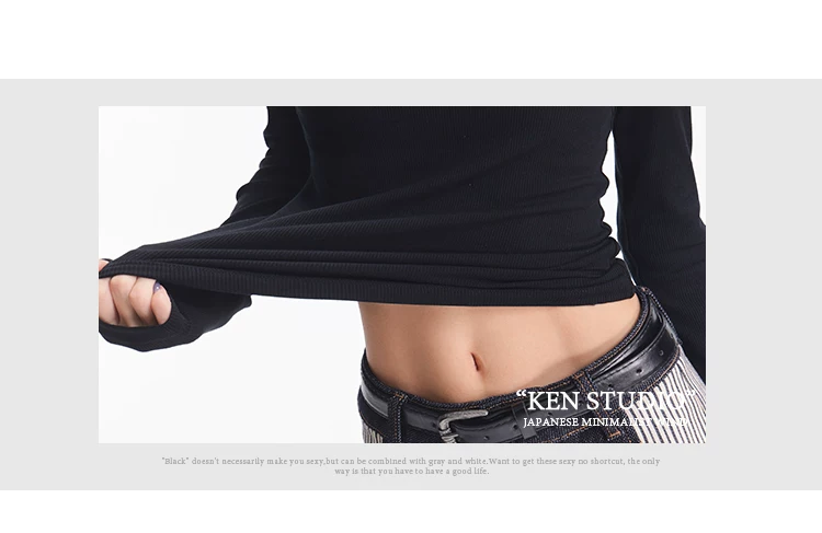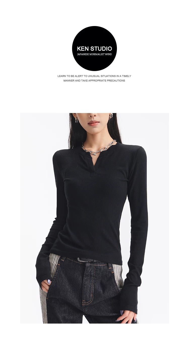 - KEN STUDIO Áo dệt kim dài tay màu đen thu đông mới dành cho nữ với thiết kế cổ áo nửa hở, kiểu dáng ôm sát và áo bên trong giúp thon gọn
