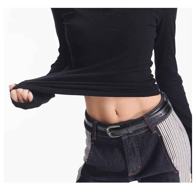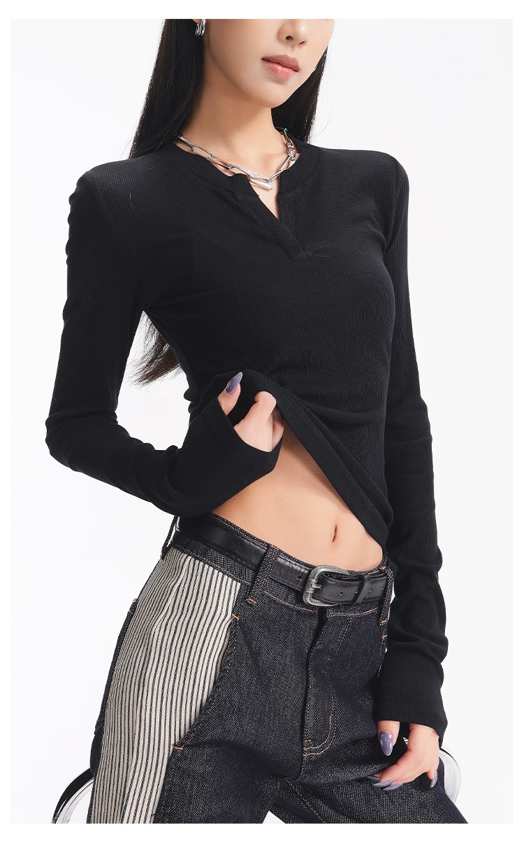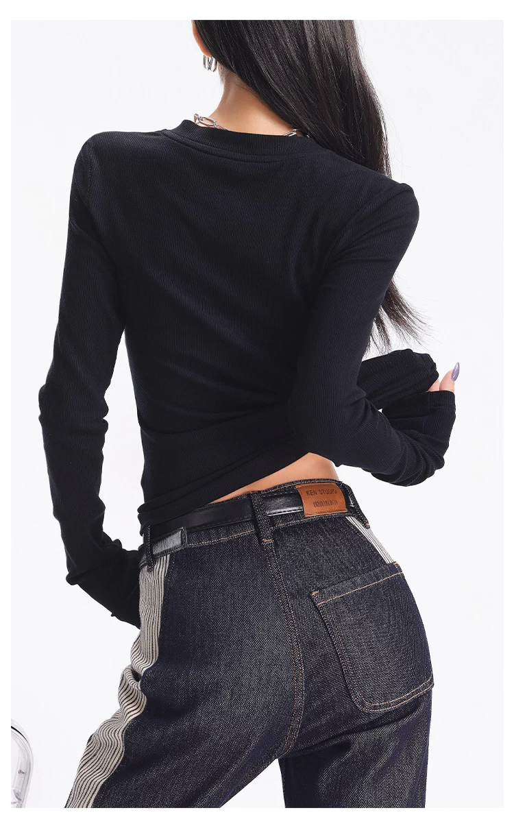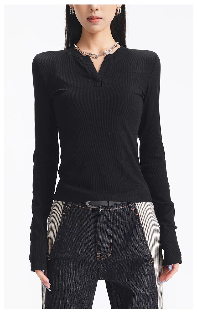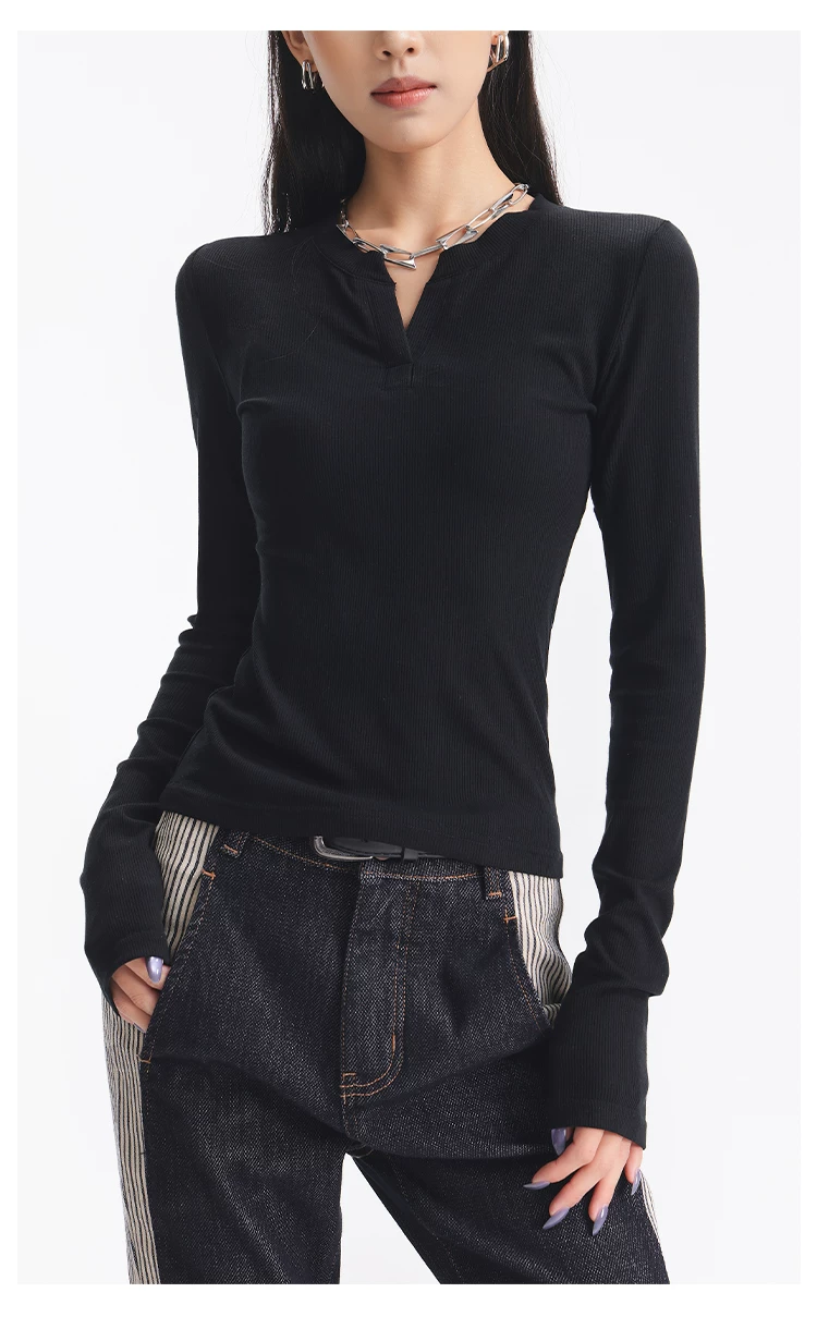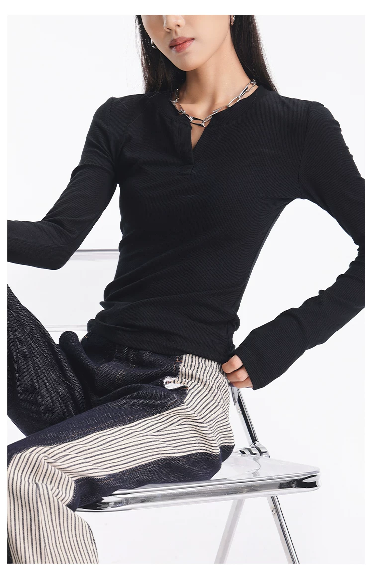 - KEN STUDIO Áo dệt kim dài tay màu đen thu đông mới dành cho nữ với thiết kế cổ áo nửa hở, kiểu dáng ôm sát và áo bên trong giúp thon gọn