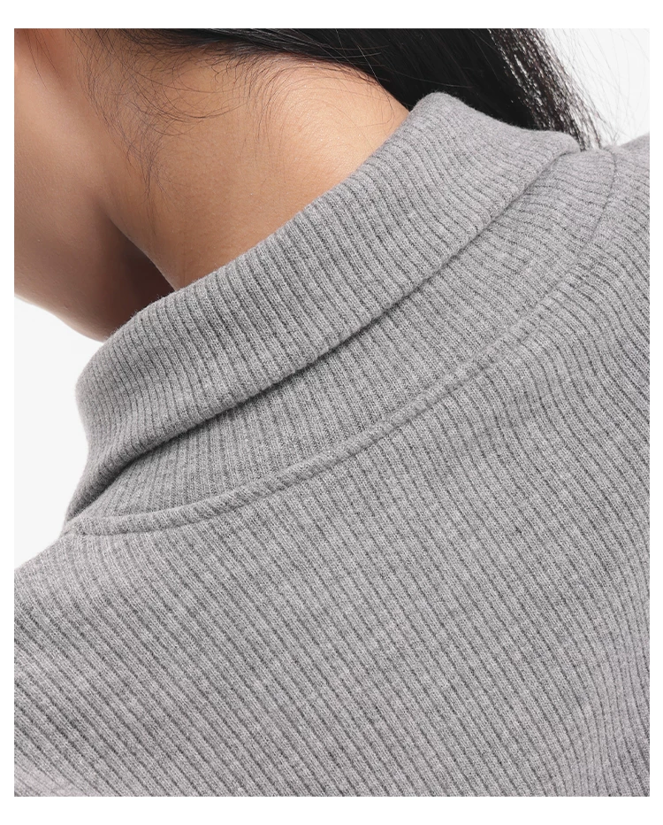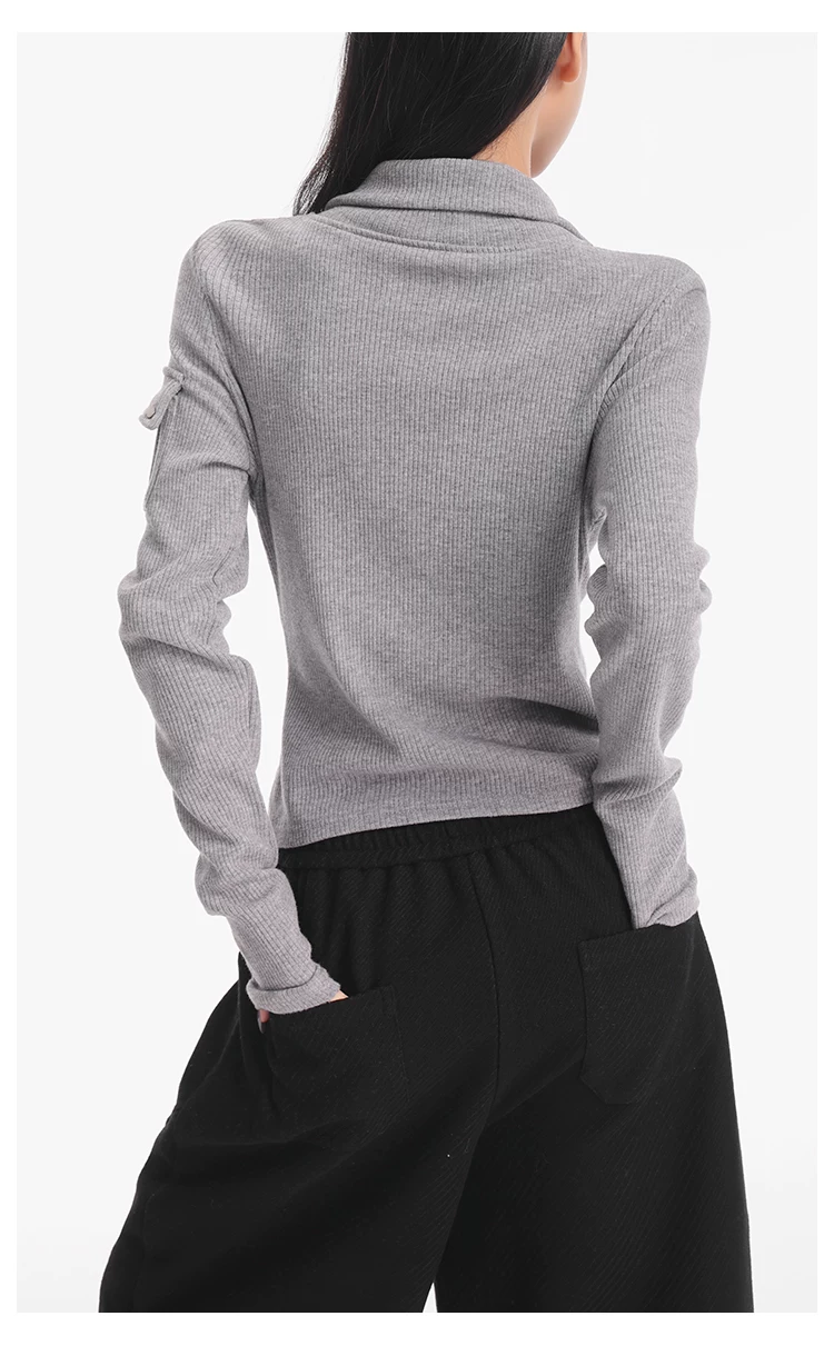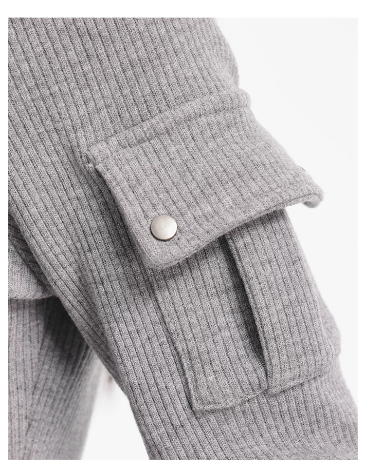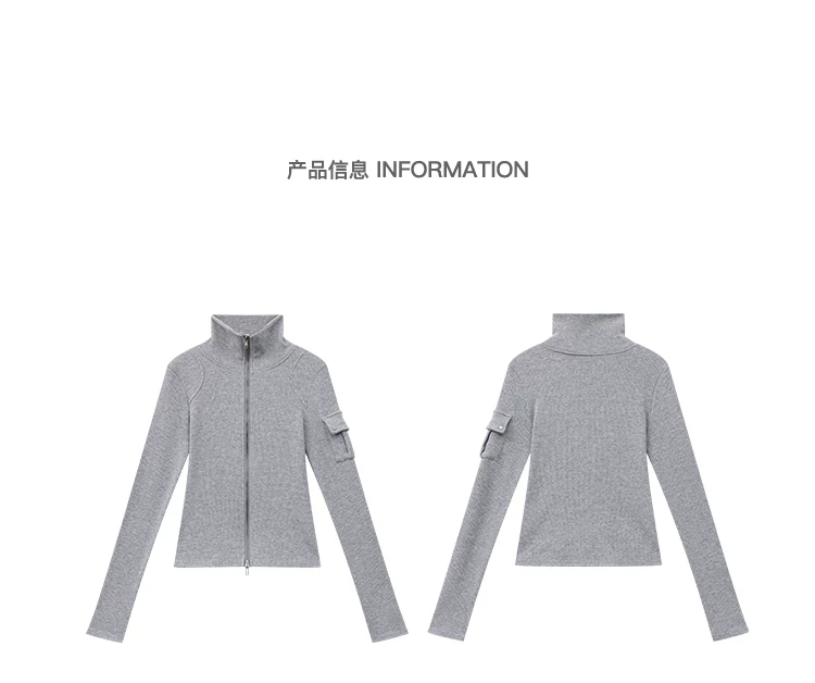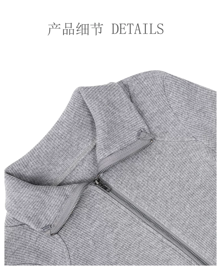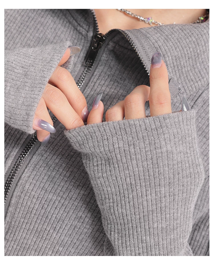 - KEN STUDIO Áo khoác dệt kim màu xám mới mùa thu đông dành cho nữ có khóa kéo đôi ve áo cardigan dáng ôm dài tay