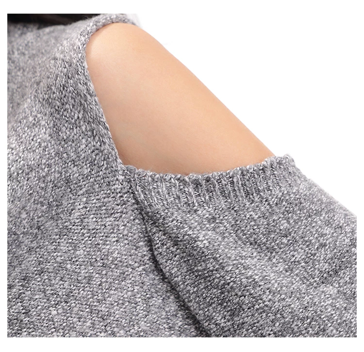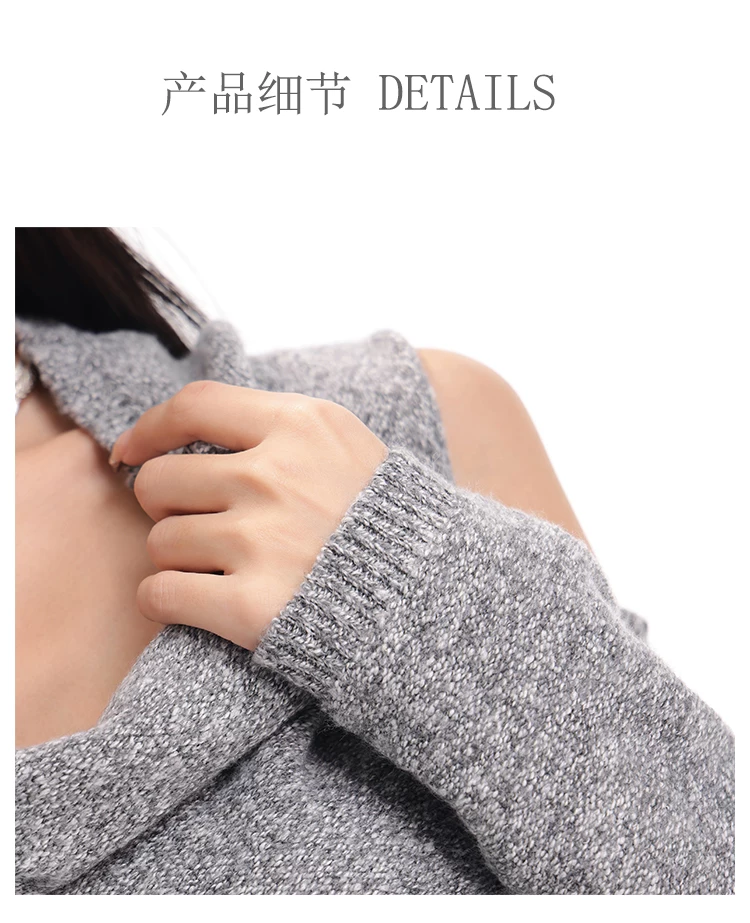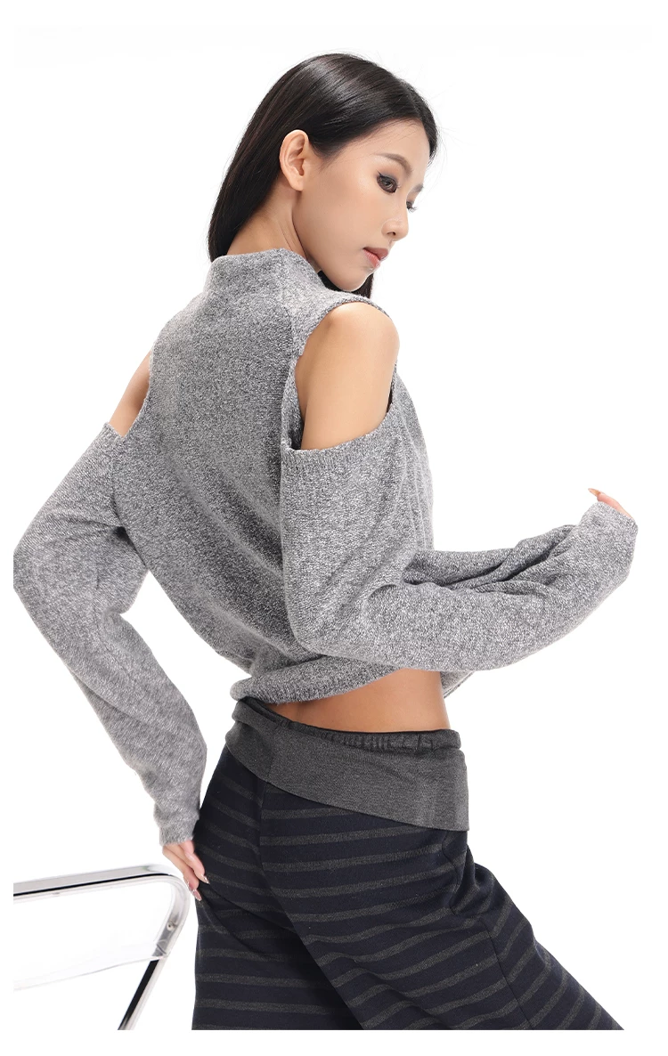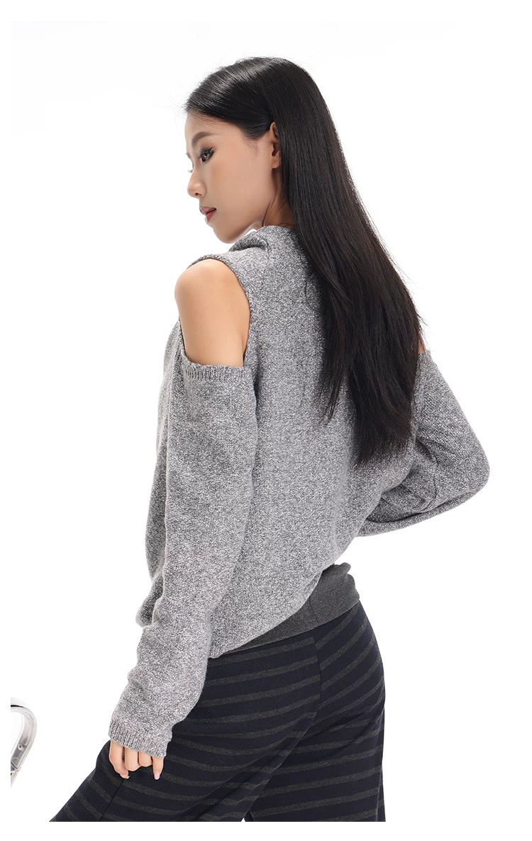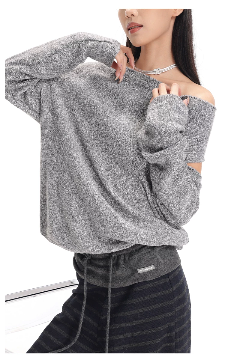 - KEN STUDIO Áo len chui đầu một vai màu xám mới thu đông dành cho nữ, áo len trễ vai kiểu dáng lười biếng thanh lịch