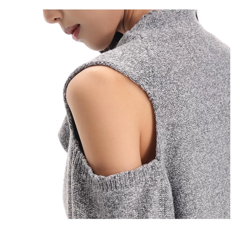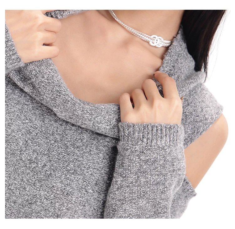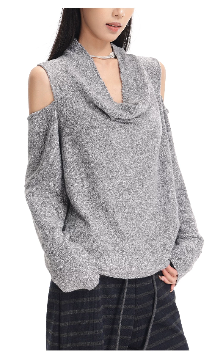 KEN STUDIO Áo len chui đầu một vai màu xám mới thu đông dành cho nữ, áo len trễ vai kiểu dáng lười biếng thanh lịch