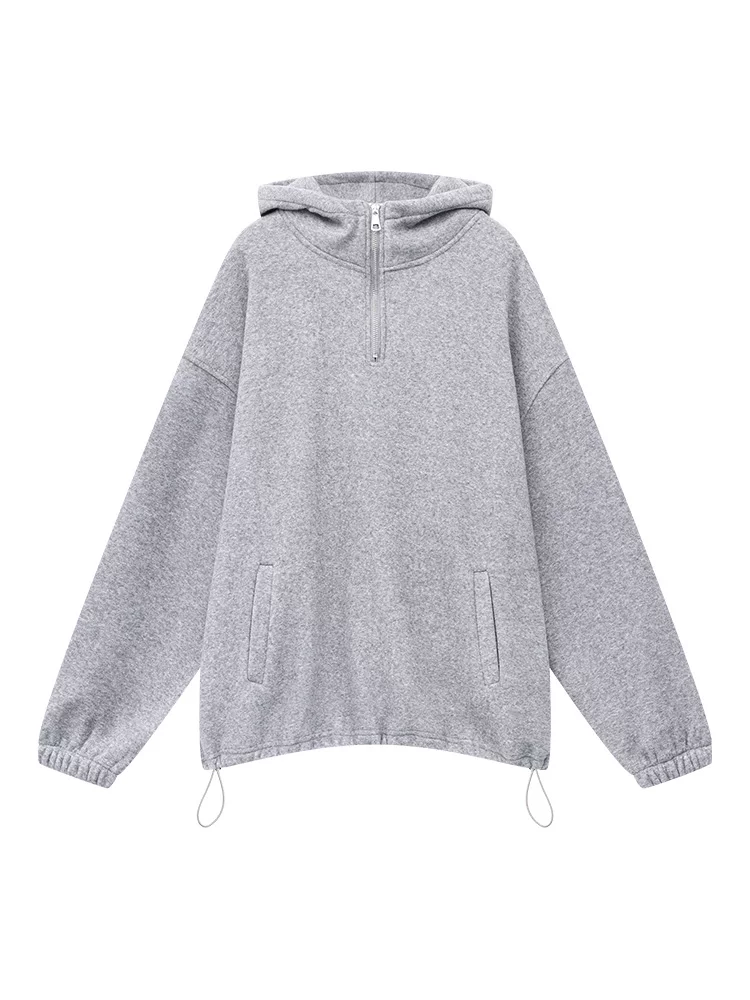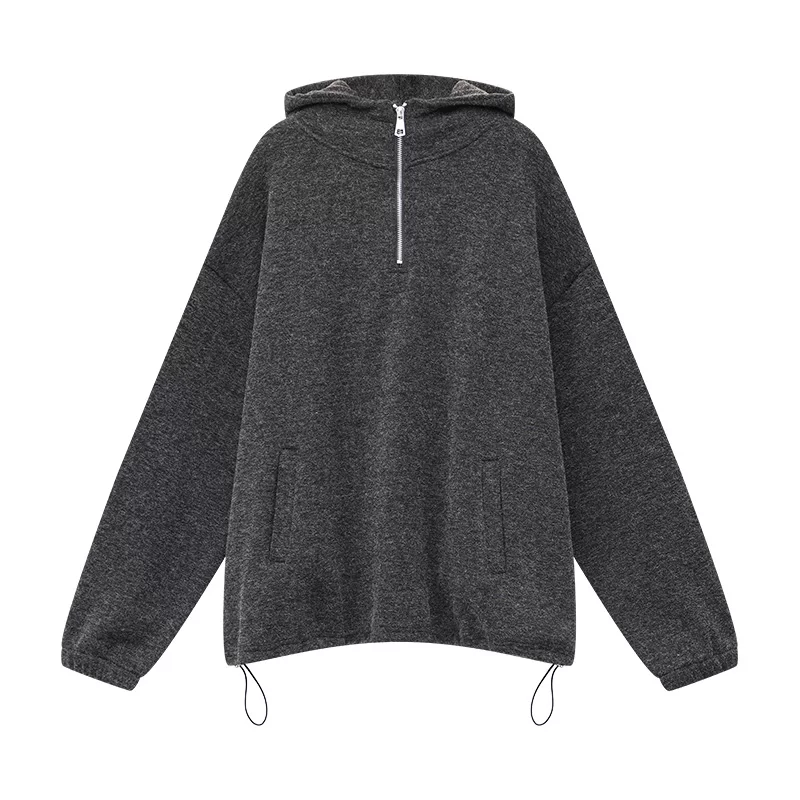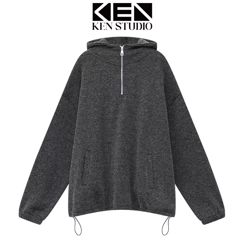- KEN STUDIO Áo len có mũ trùm đầu kiểu dáng giản dị mùa thu đông mới dành cho nữ, có lót lông cừu và dày dặn, áo khoác dáng rộng