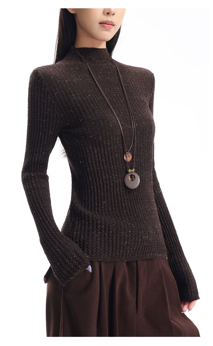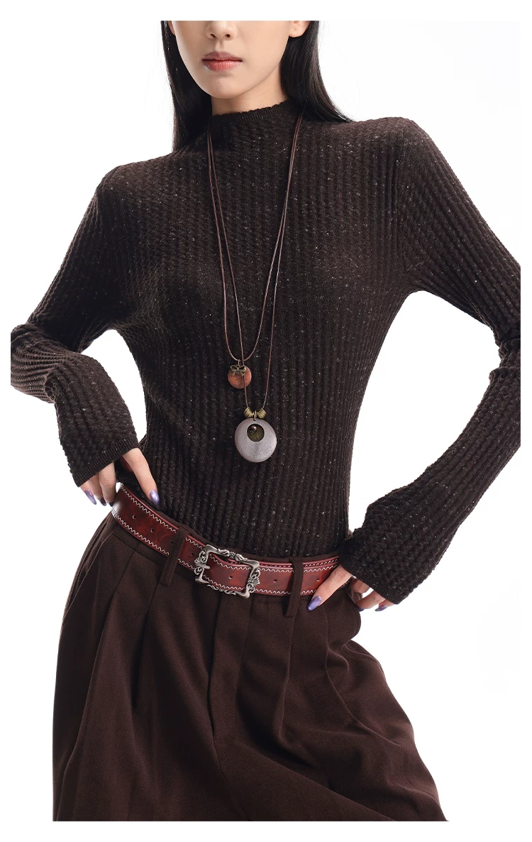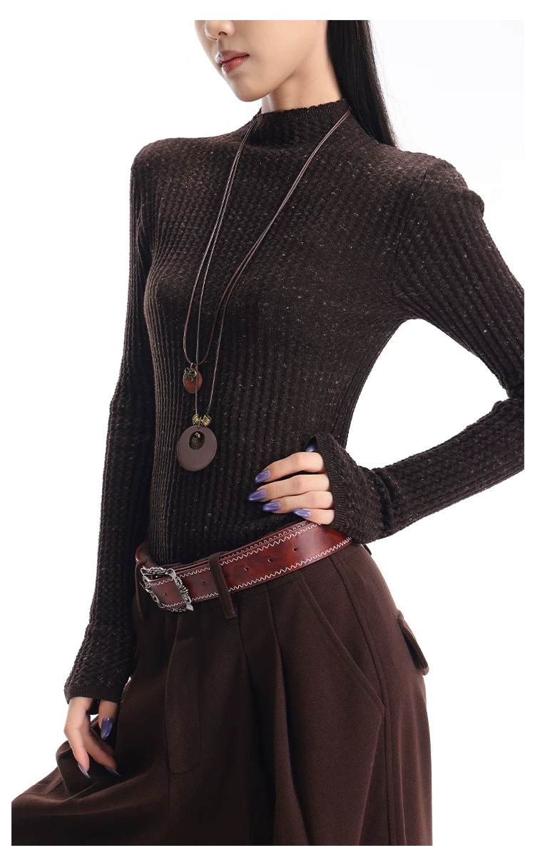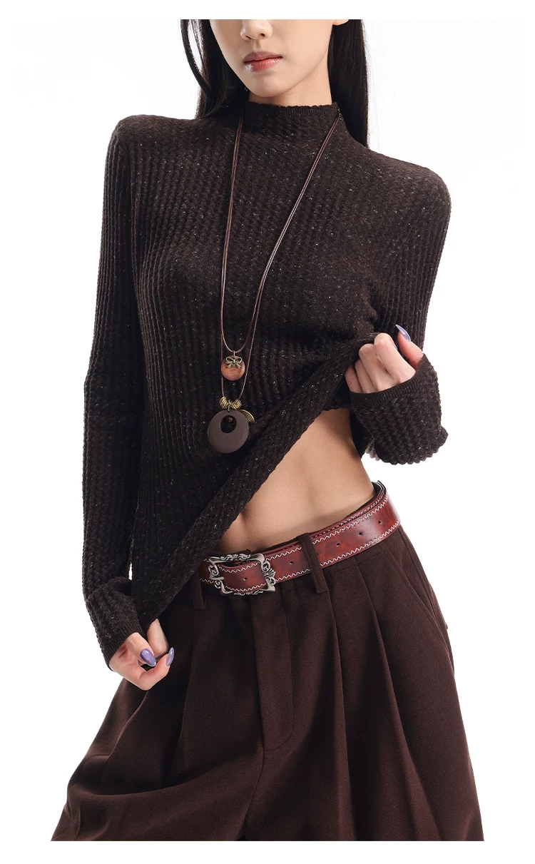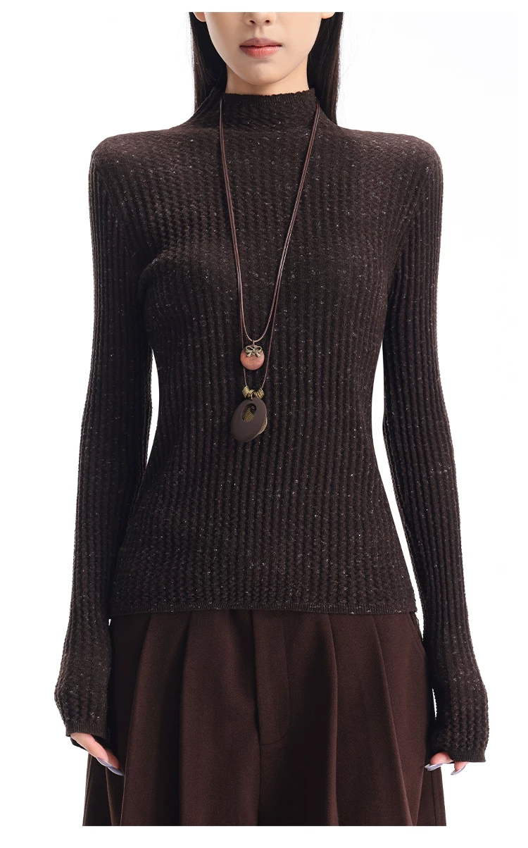 - KEN STUDIO Áo len dệt kim dài tay cổ lọ kiểu cổ điển thu đông mới dành cho nữ, dáng ôm, áo nửa cổ lọ