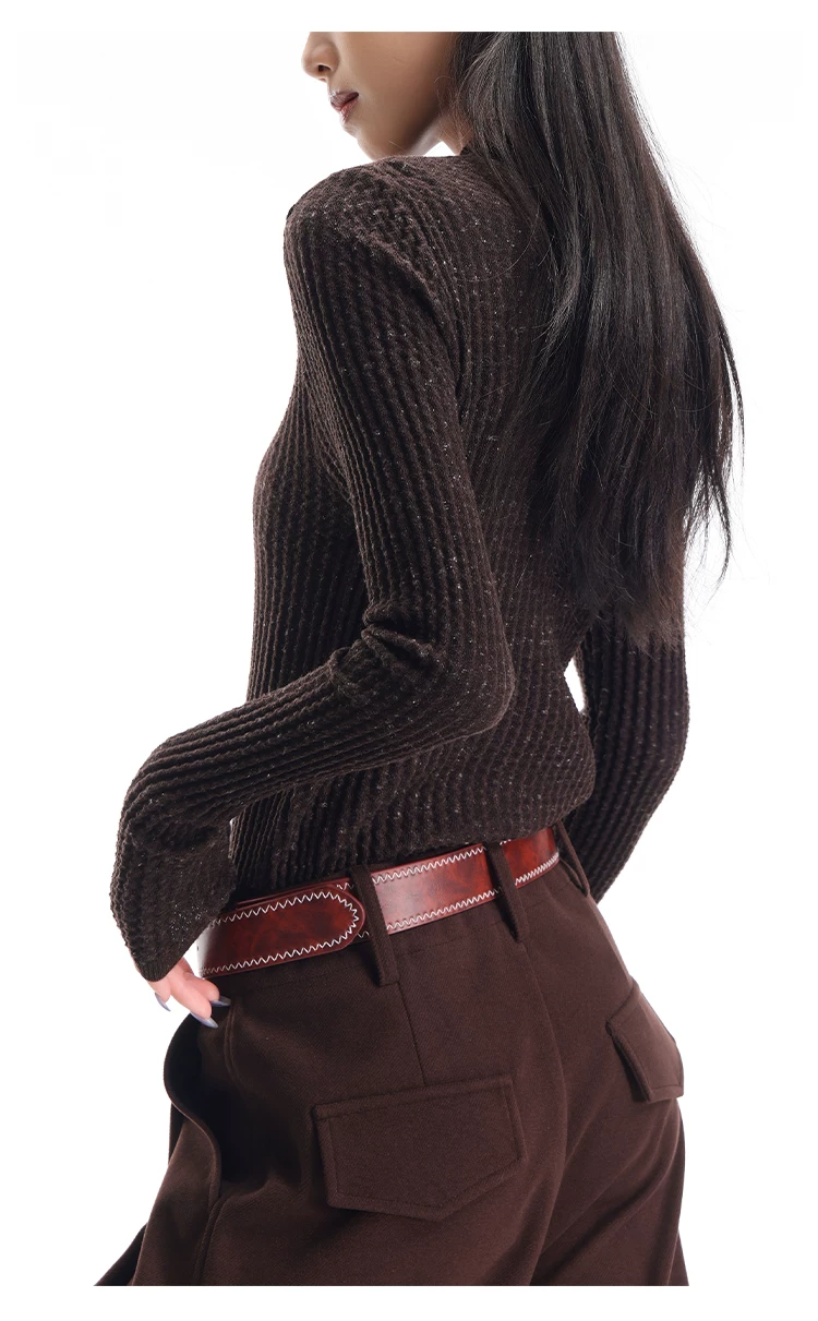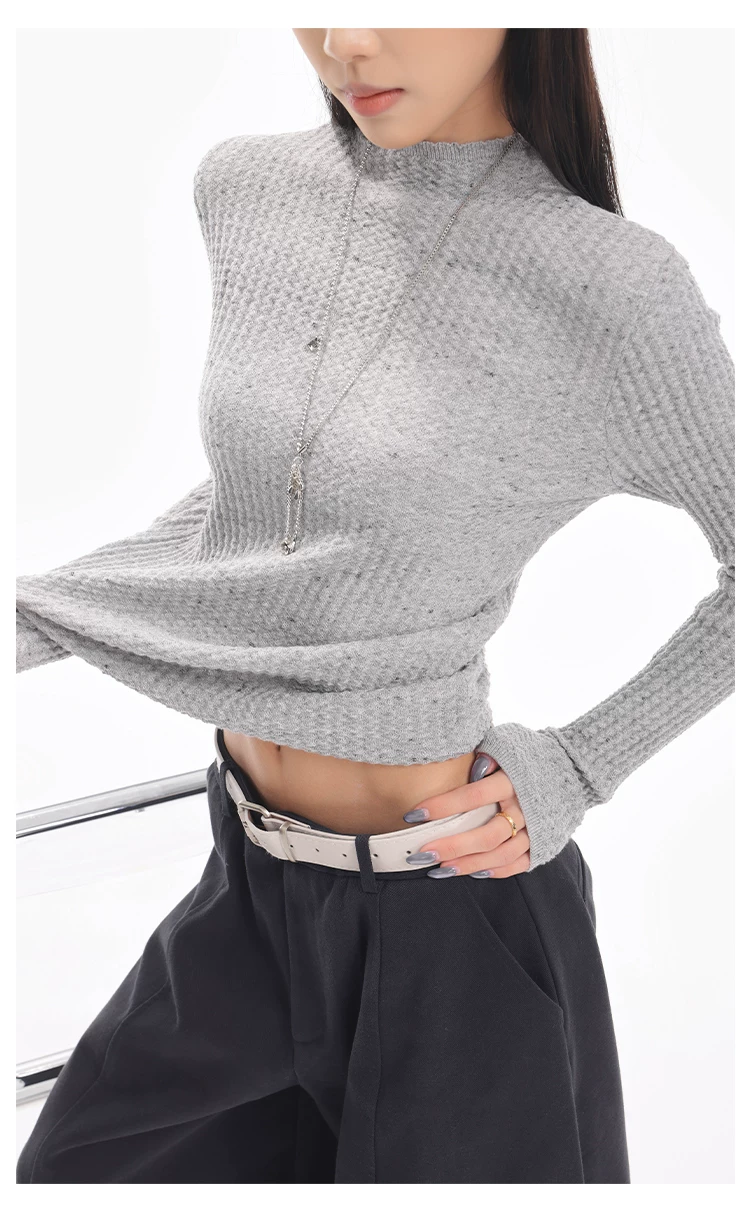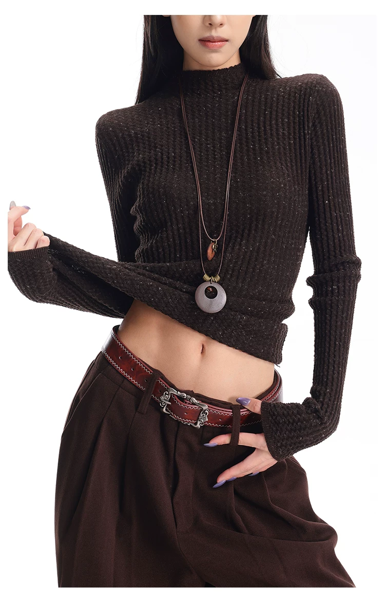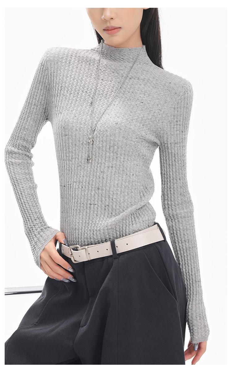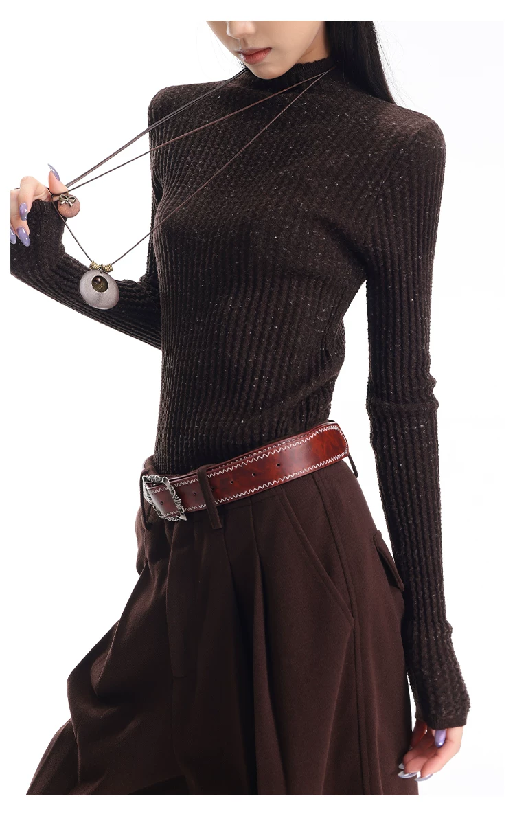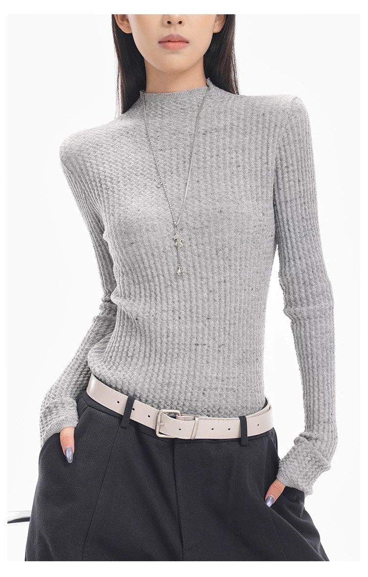 - KEN STUDIO Áo len dệt kim dài tay cổ lọ kiểu cổ điển thu đông mới dành cho nữ, dáng ôm, áo nửa cổ lọ