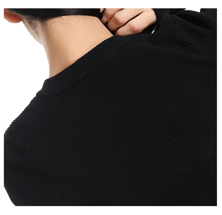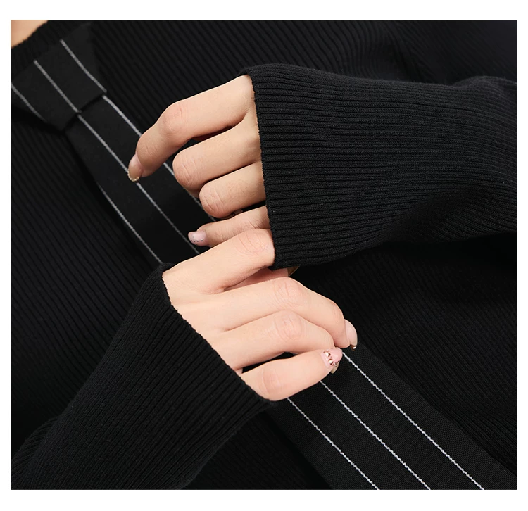 - KEN STUDIO Áo len dệt kim dài tay màu đen mùa thu mới dành cho nữ, cổ tròn, ôm vừa vặn, lớp trong