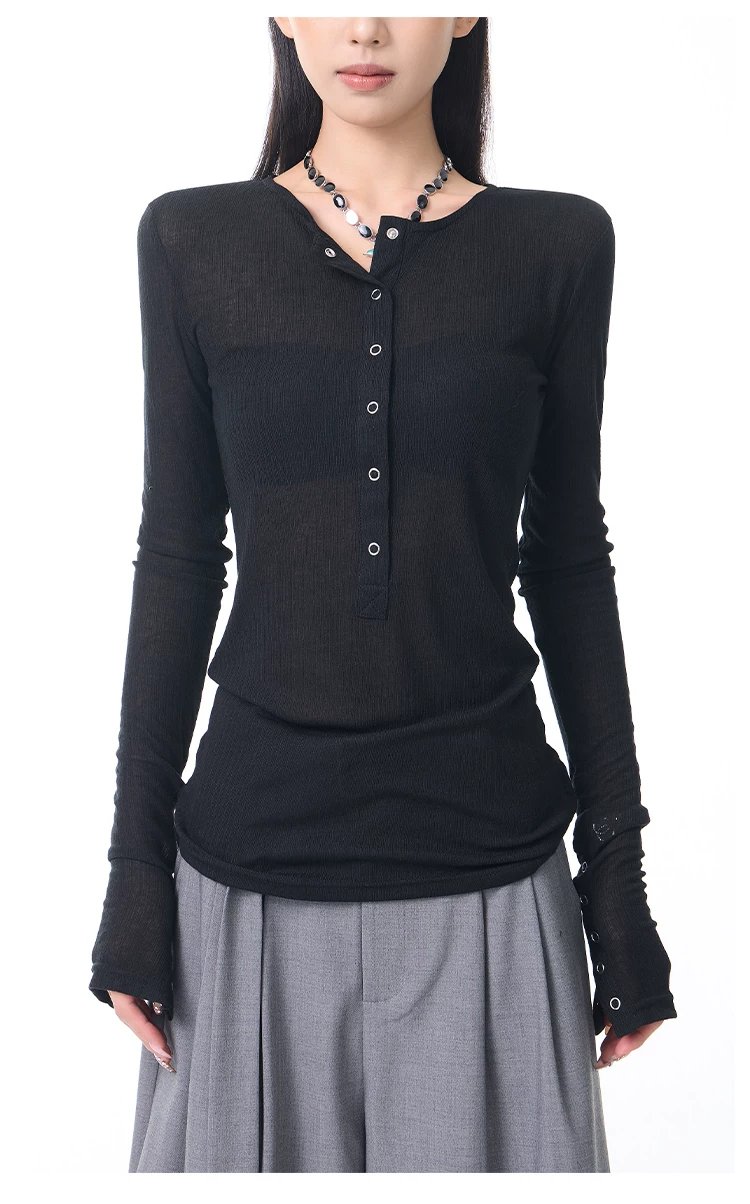 KEN STUDIO Áo thun dài tay dệt kim mới đầu thu dành cho nữ, dáng ôm, áo thun dáng ôm, áo lót, áo lót bên trong hợp thời trang.