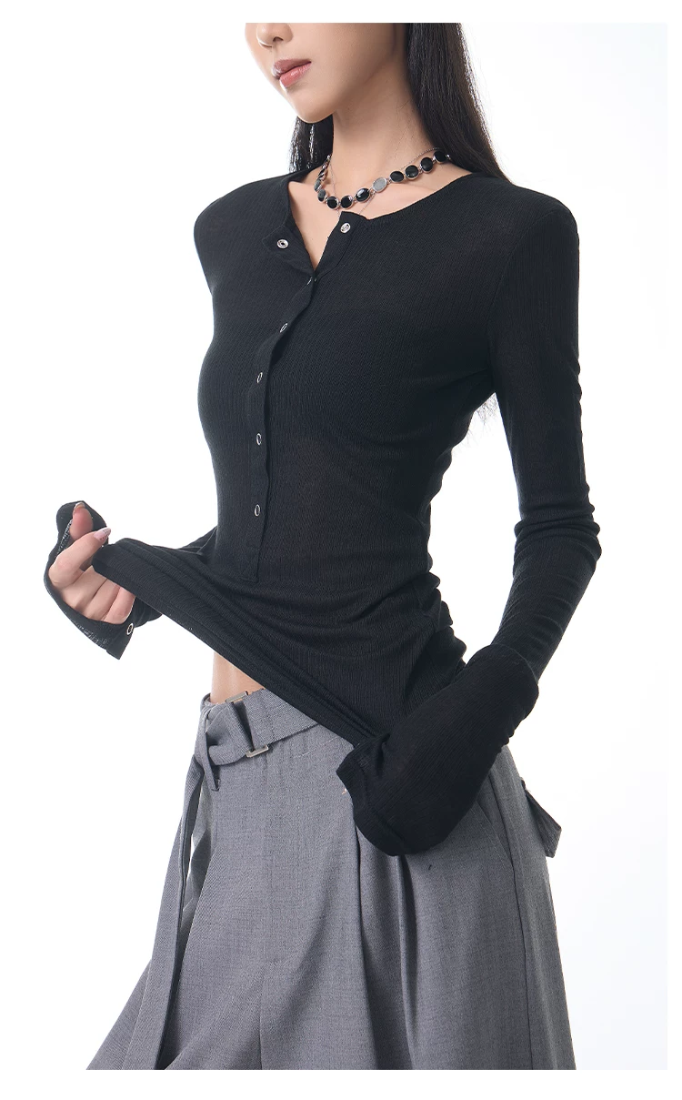 - KEN STUDIO Áo thun dài tay dệt kim mới đầu thu dành cho nữ, dáng ôm, áo thun dáng ôm, áo lót, áo lót bên trong hợp thời trang.