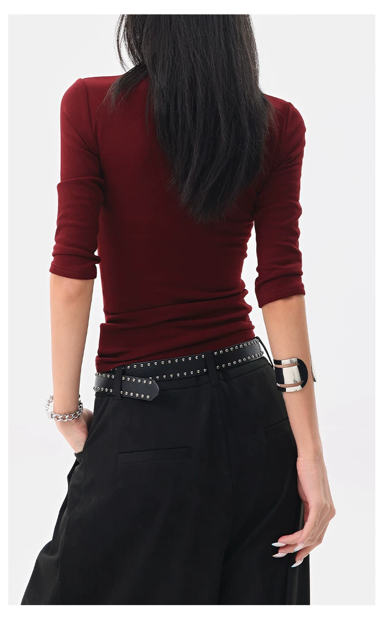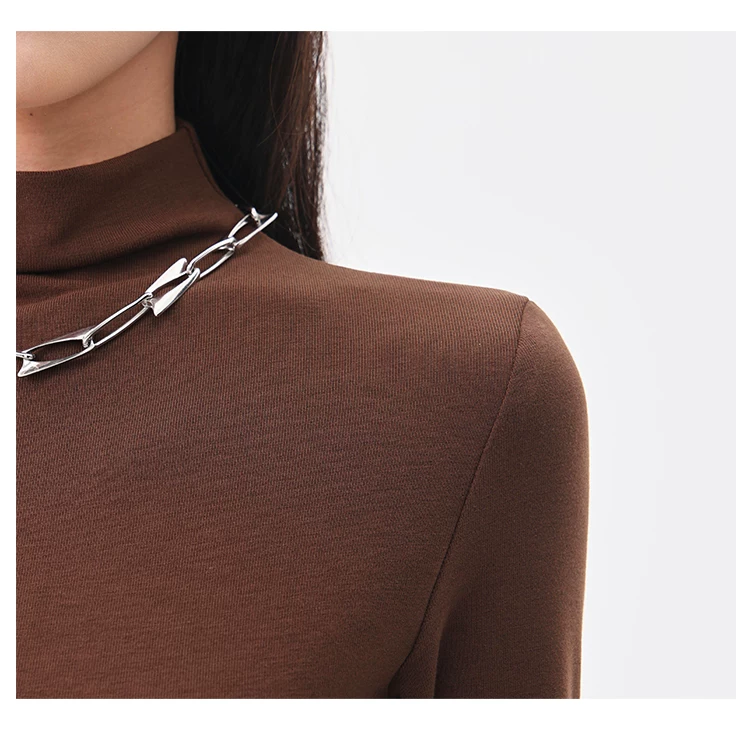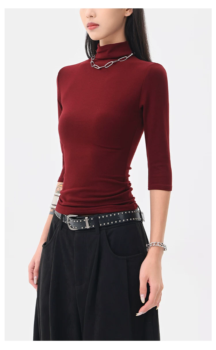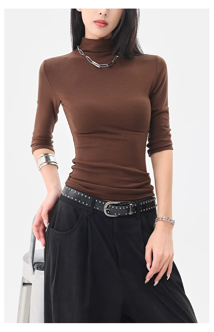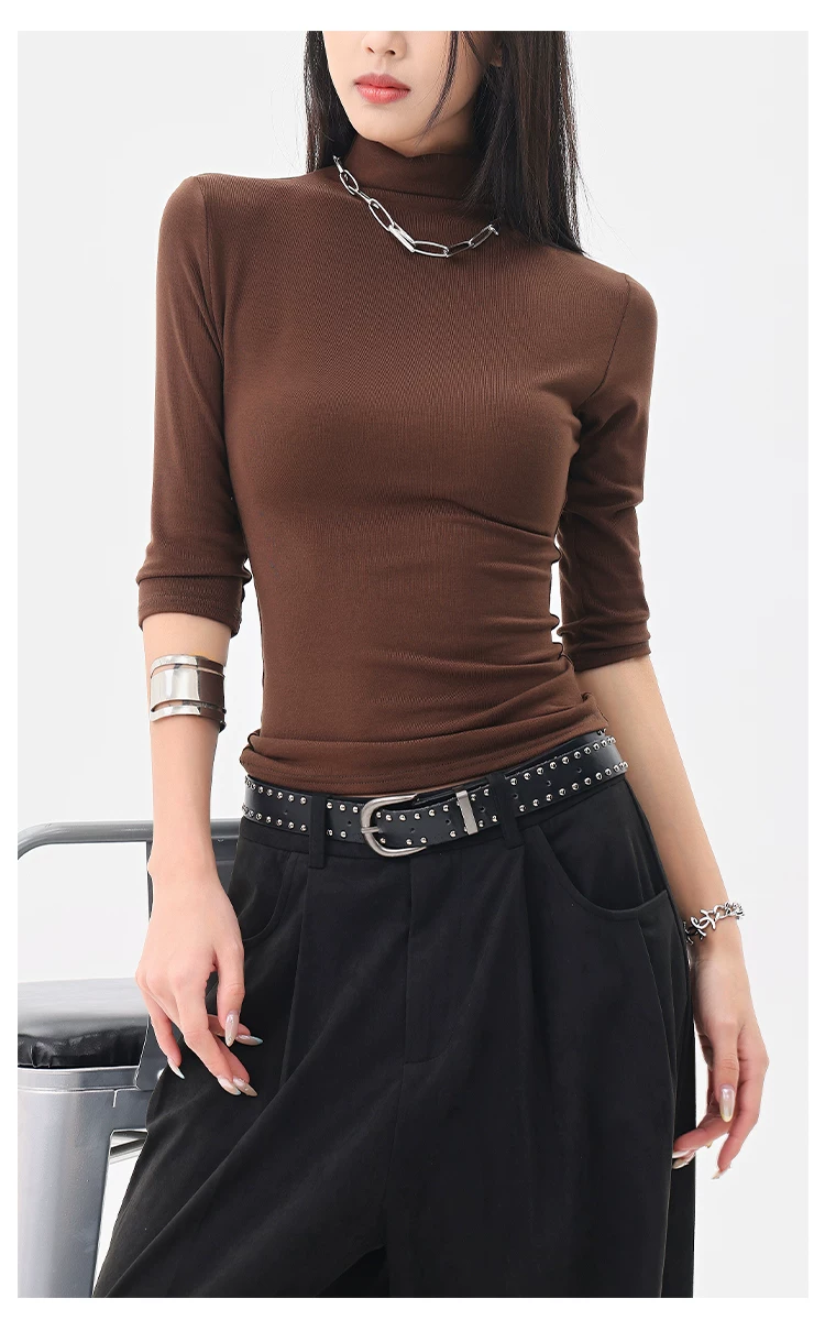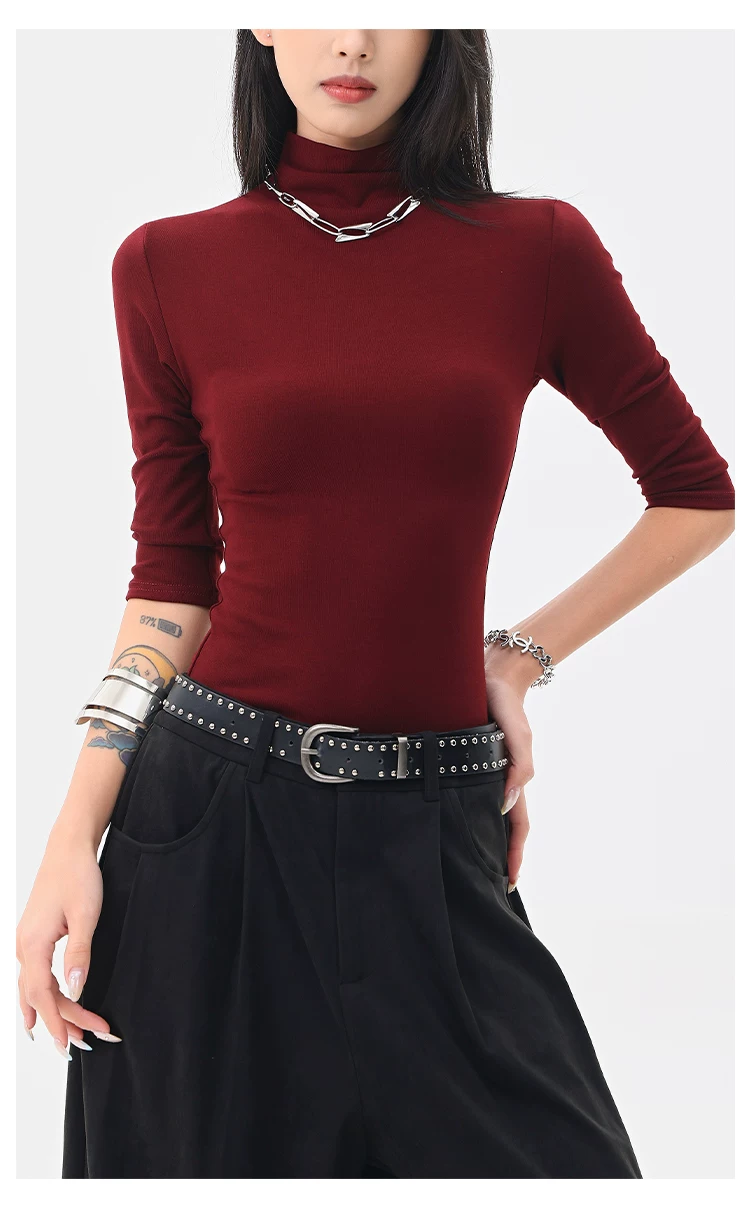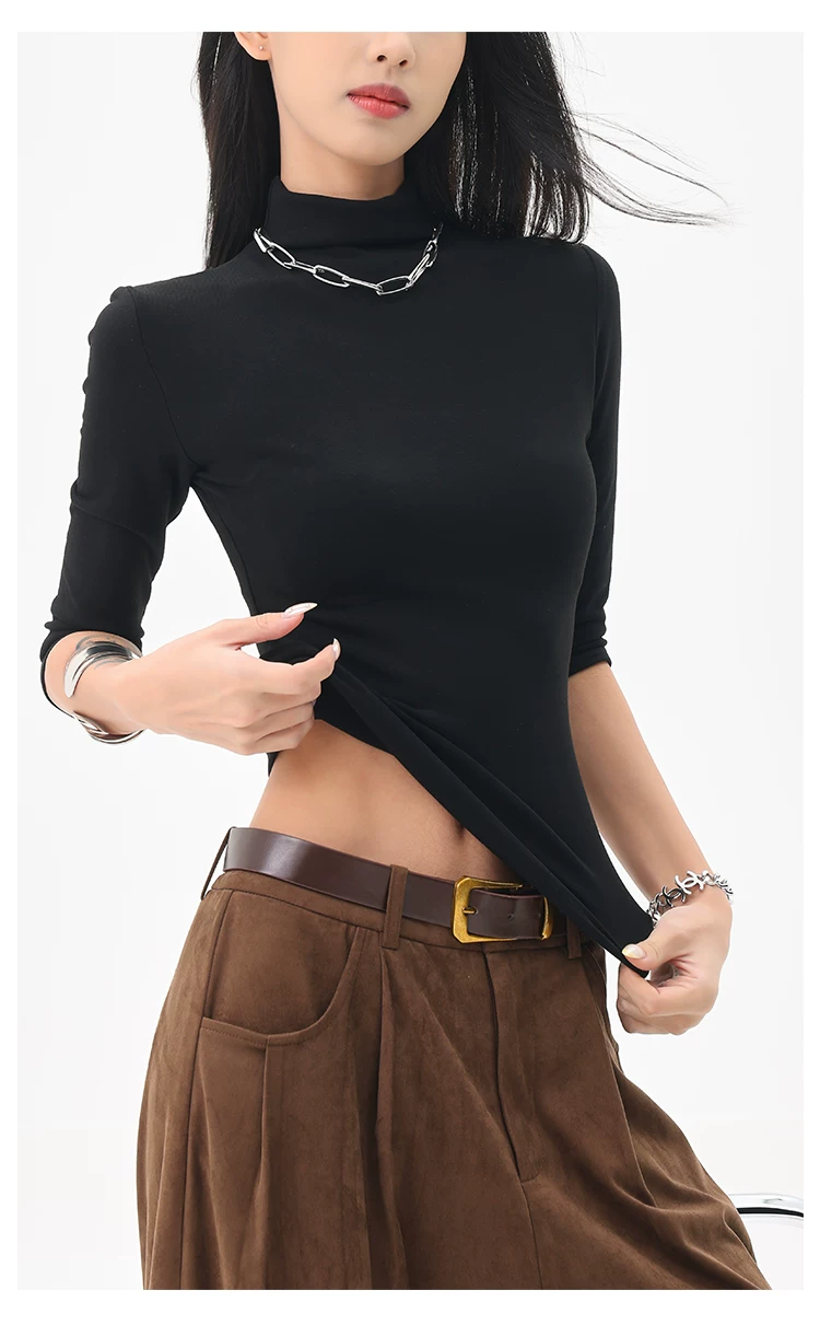 KEN STUDIO Áo thun dệt kim nửa tay cổ cao Melard dành cho nữ, áo trong mỏng vừa vặn mới đầu mùa thu