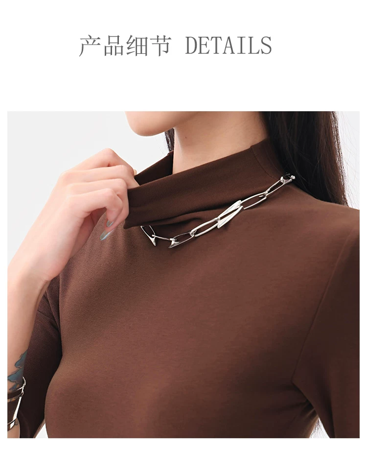 - KEN STUDIO Áo thun dệt kim nửa tay cổ cao Melard dành cho nữ, áo trong mỏng vừa vặn mới đầu mùa thu