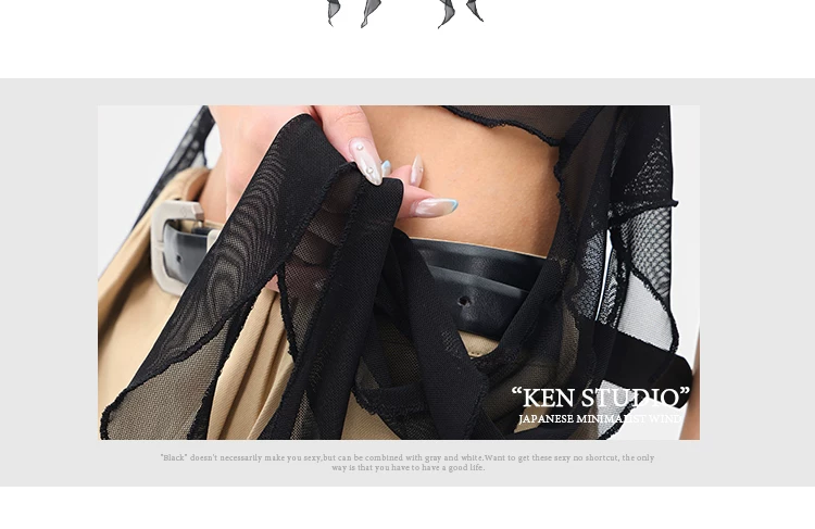 - KEN STUDIO Áo thun ngắn tay lưới ruy băng đen phong cách Mỹ dành cho nữ, áo crop top ngắn lưng cao, áo ôm dáng