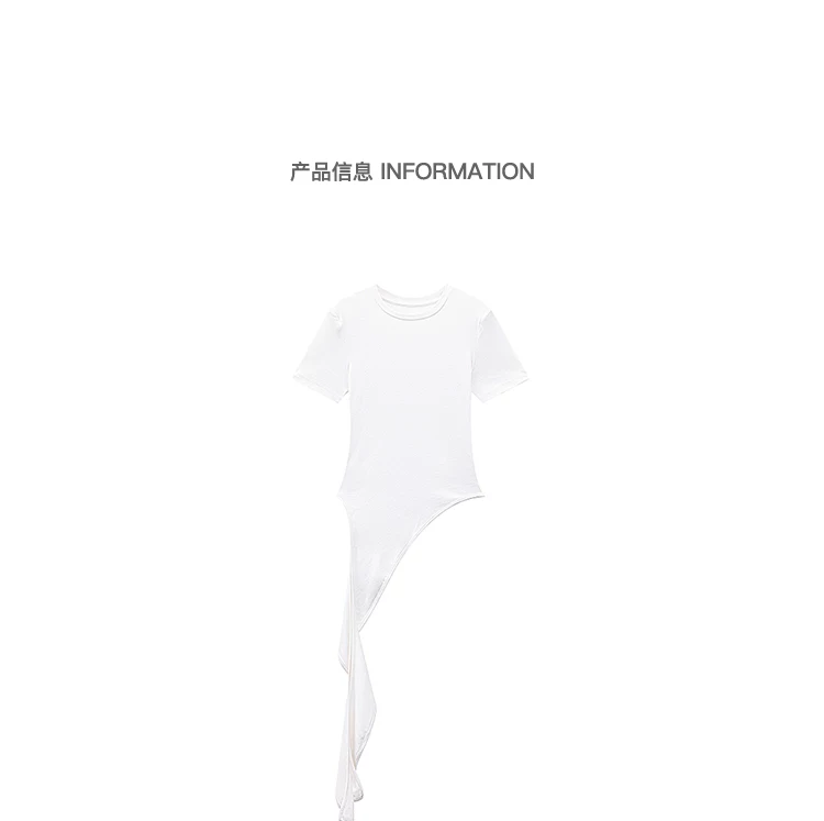 KEN STUDIO áo thun trắng cổ tròn tay ngắn thiết kế mùa hè độc đáo áo dáng rộng bất đối xứng giúp thon gọn