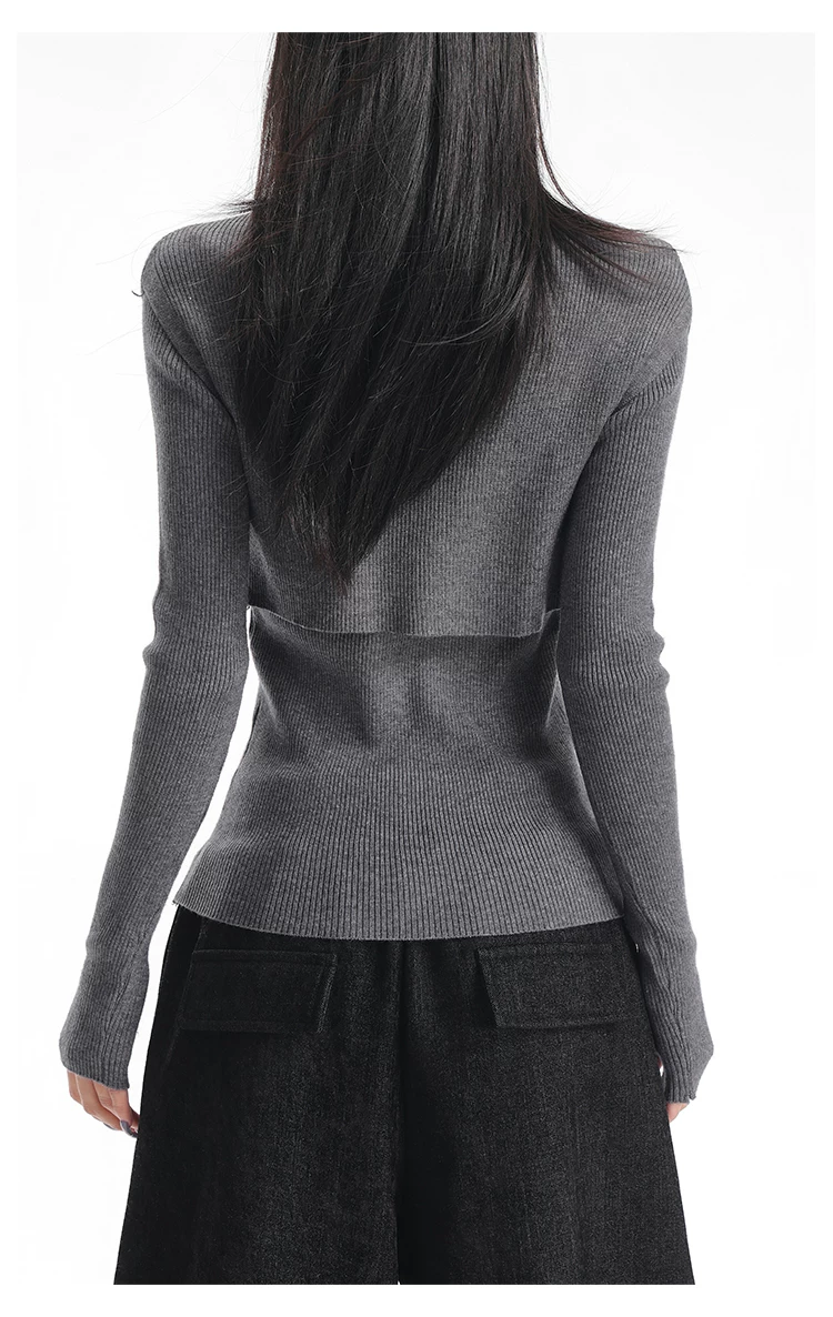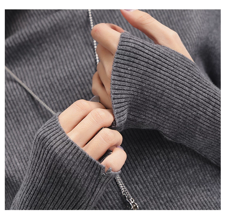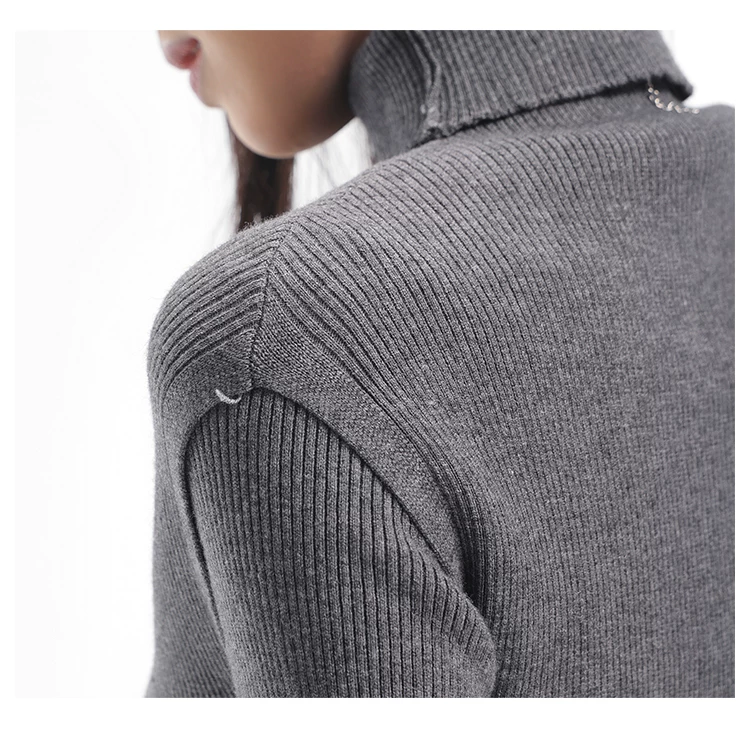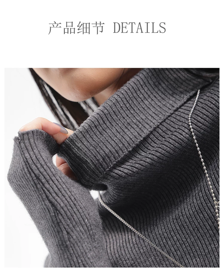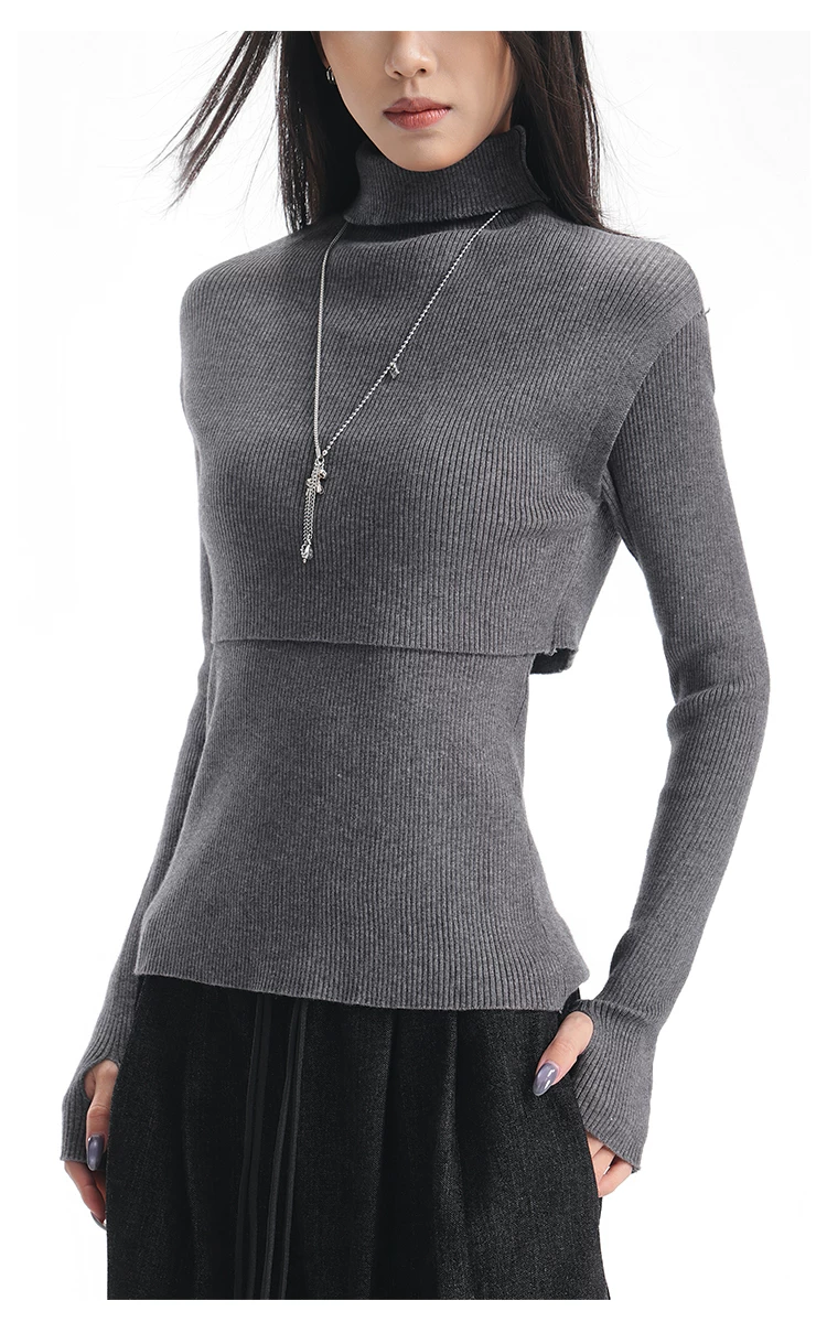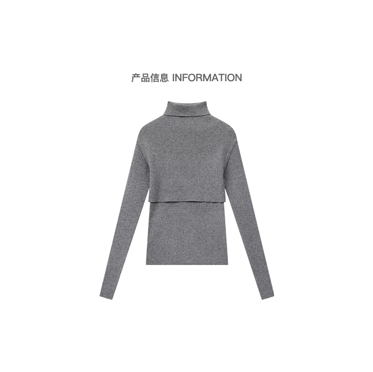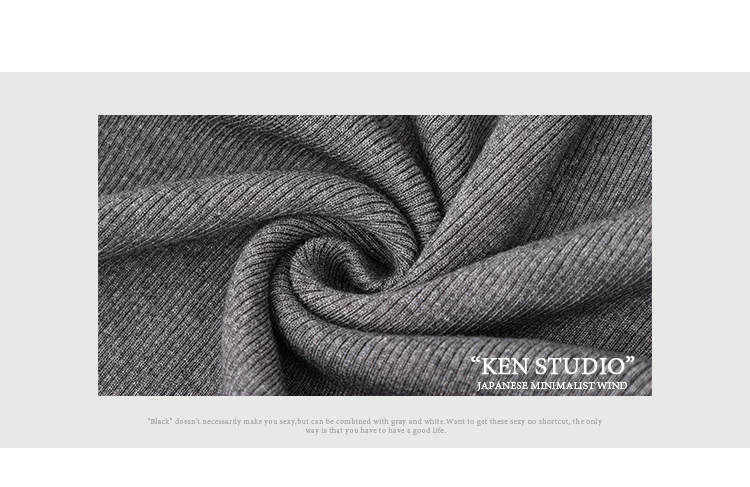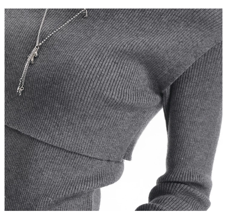 - KEN STUDIO Bộ đồ hai mảnh áo len dài tay màu xám mùa thu đông mới dành cho nữ cổ cao ôm sát bên trong