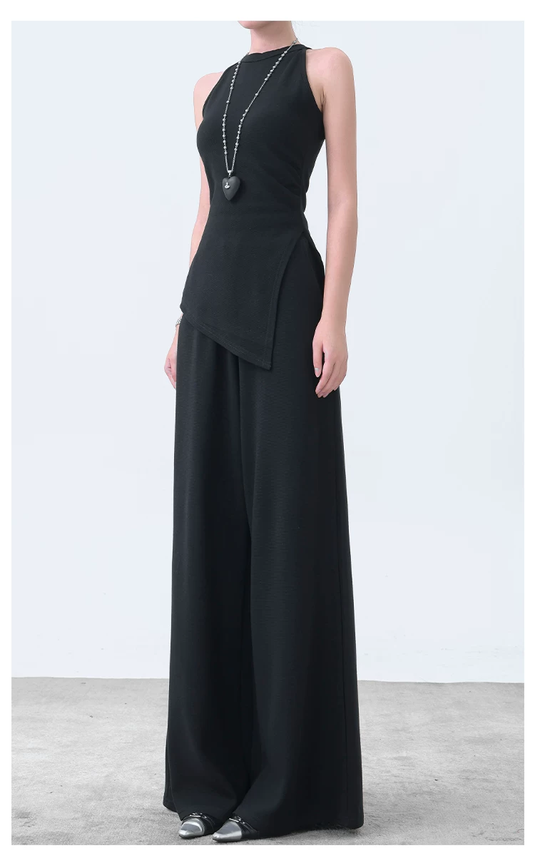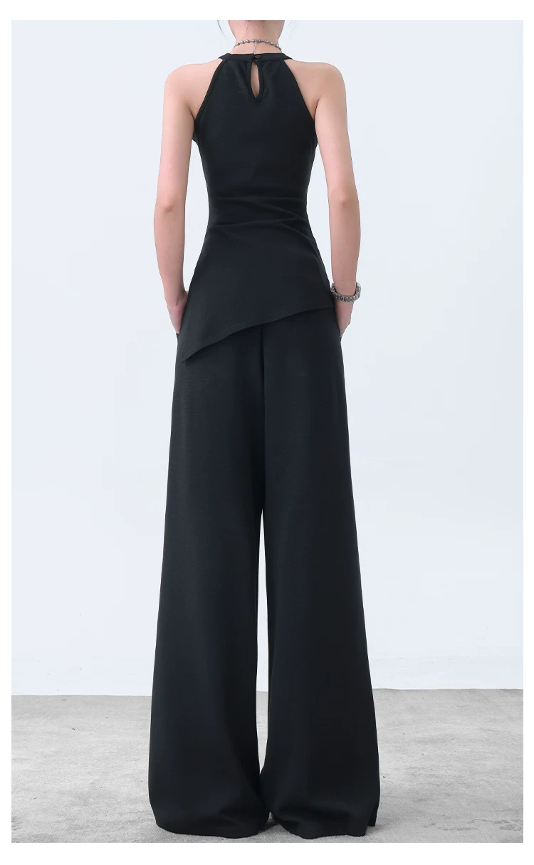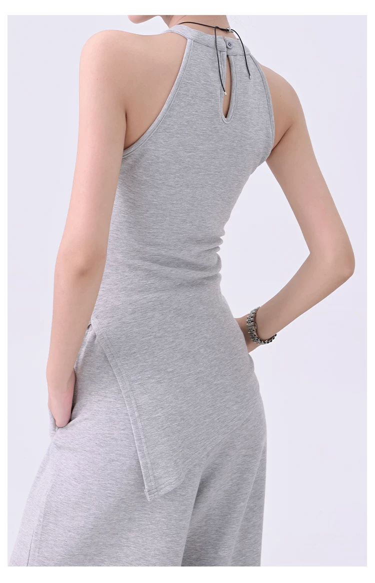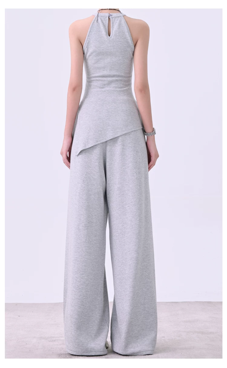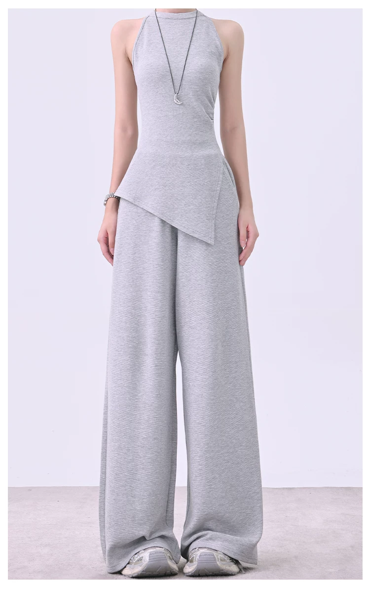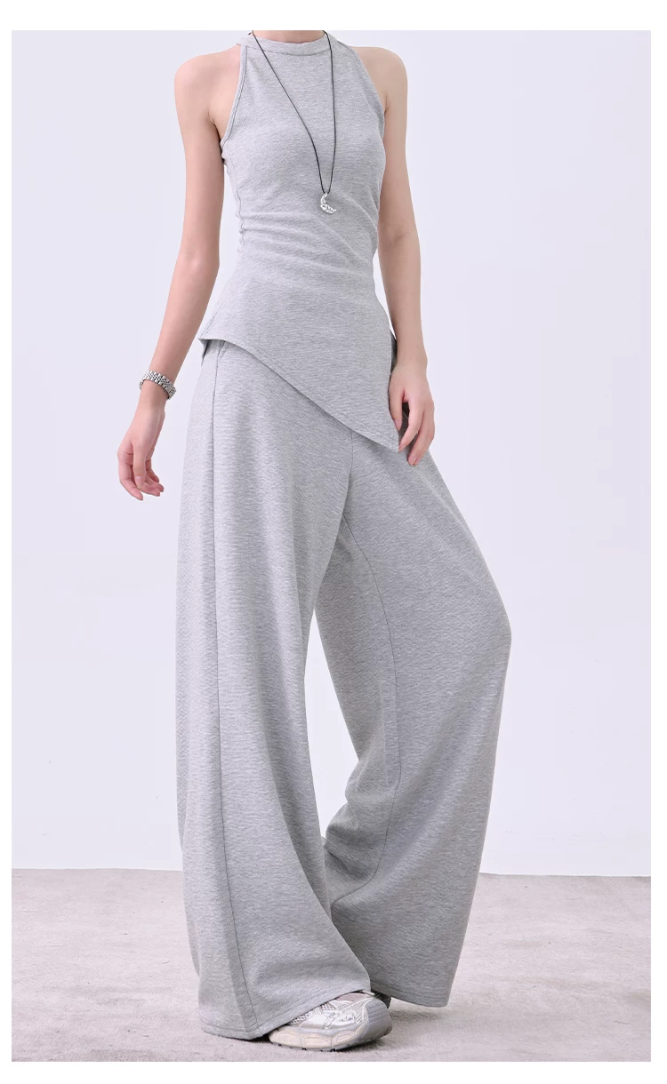 KEN STUDIO Bộ vest màu xám thanh lịch phong cách Hàn Quốc dành cho nữ, áo ba lỗ ôm sát, quần ống rộng dáng rộng, quần thể thao