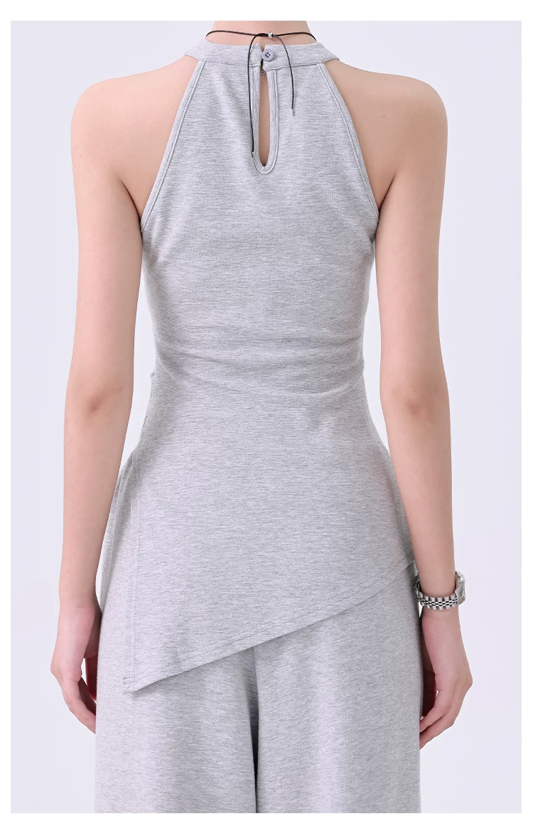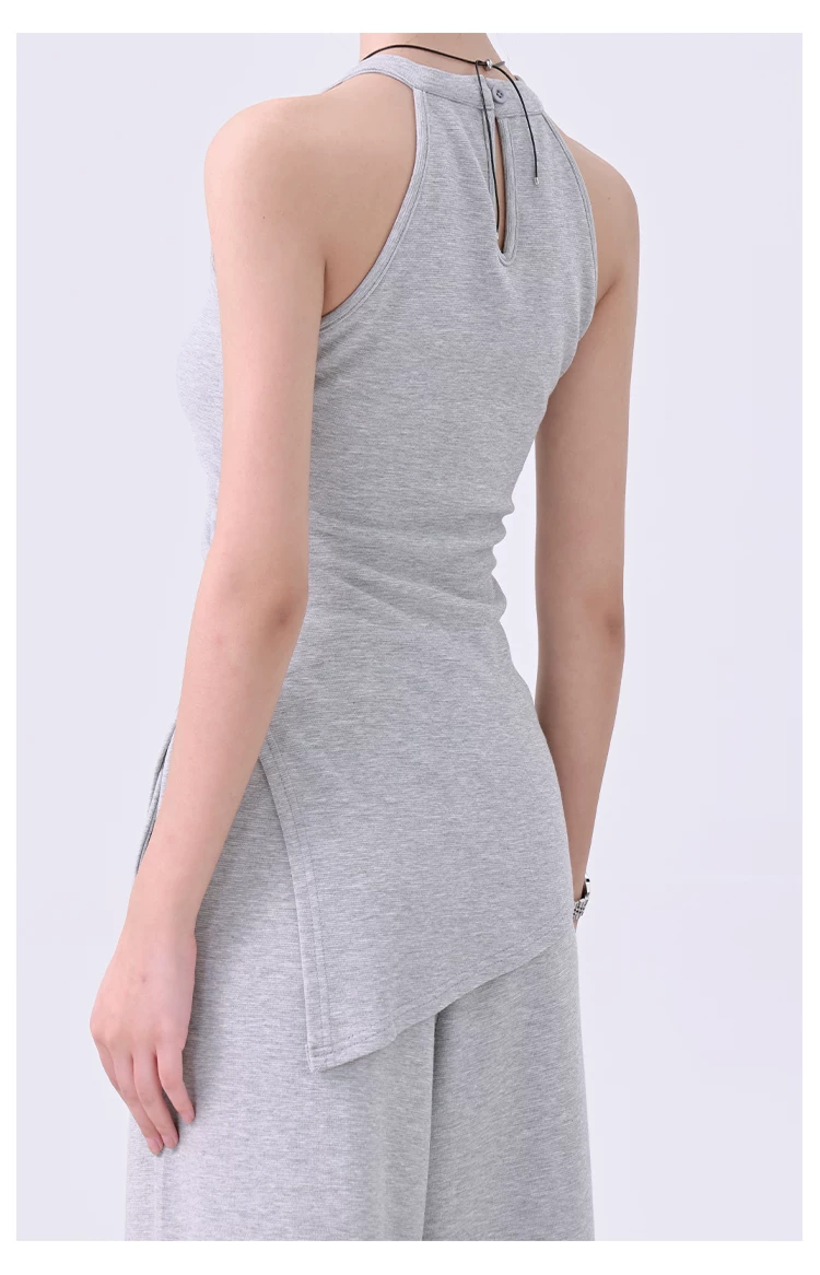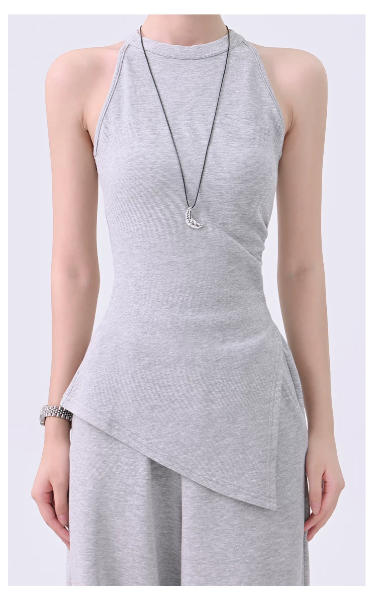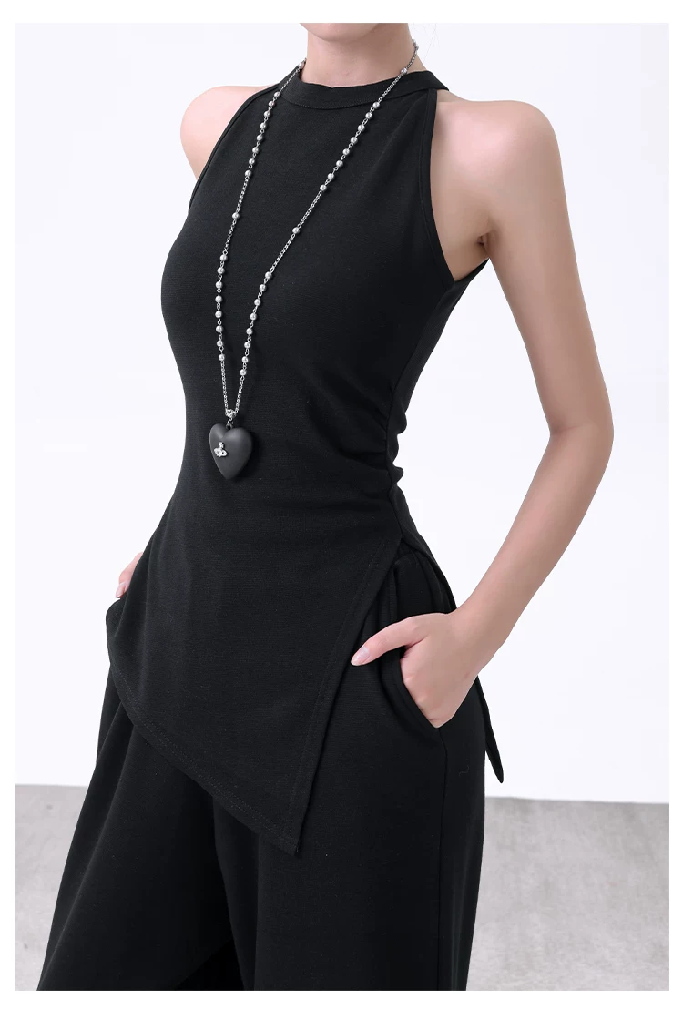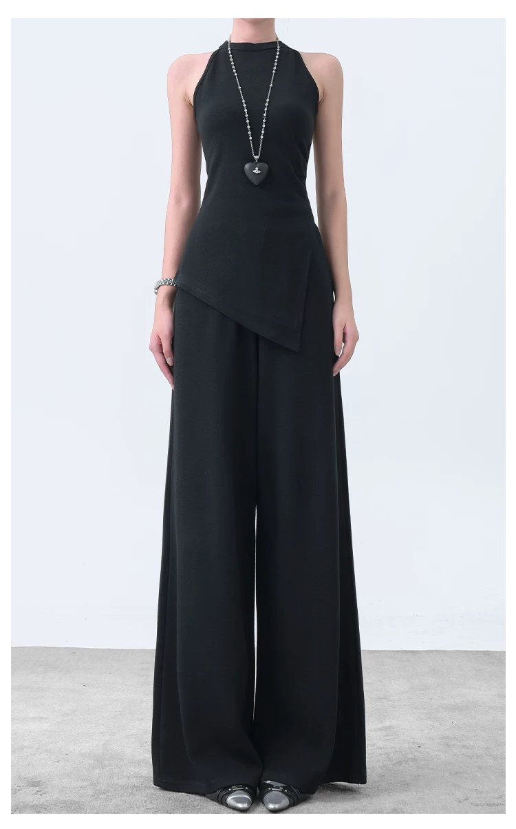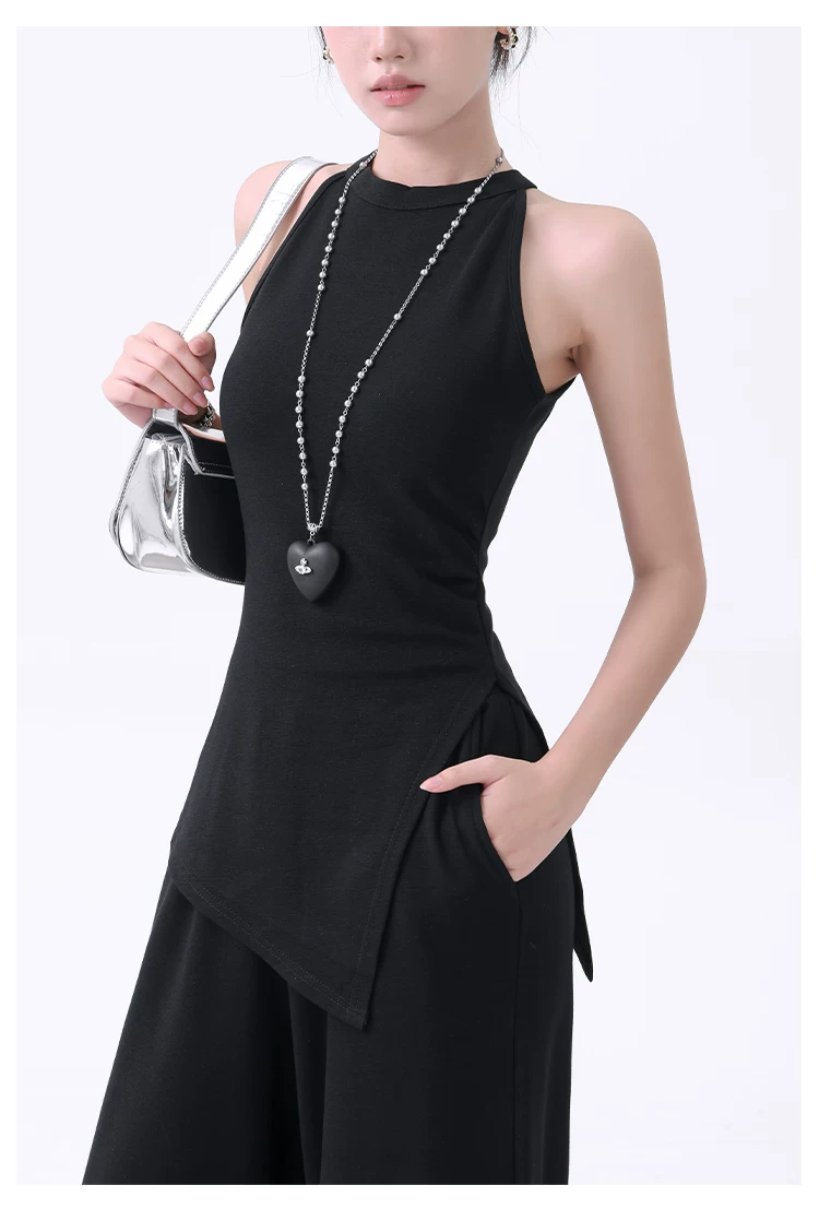 KEN STUDIO Bộ vest màu xám thanh lịch phong cách Hàn Quốc dành cho nữ, áo ba lỗ ôm sát, quần ống rộng dáng rộng, quần thể thao