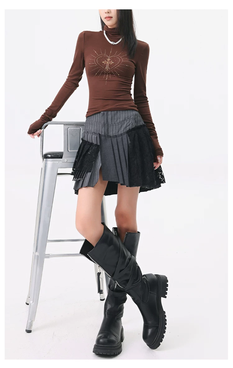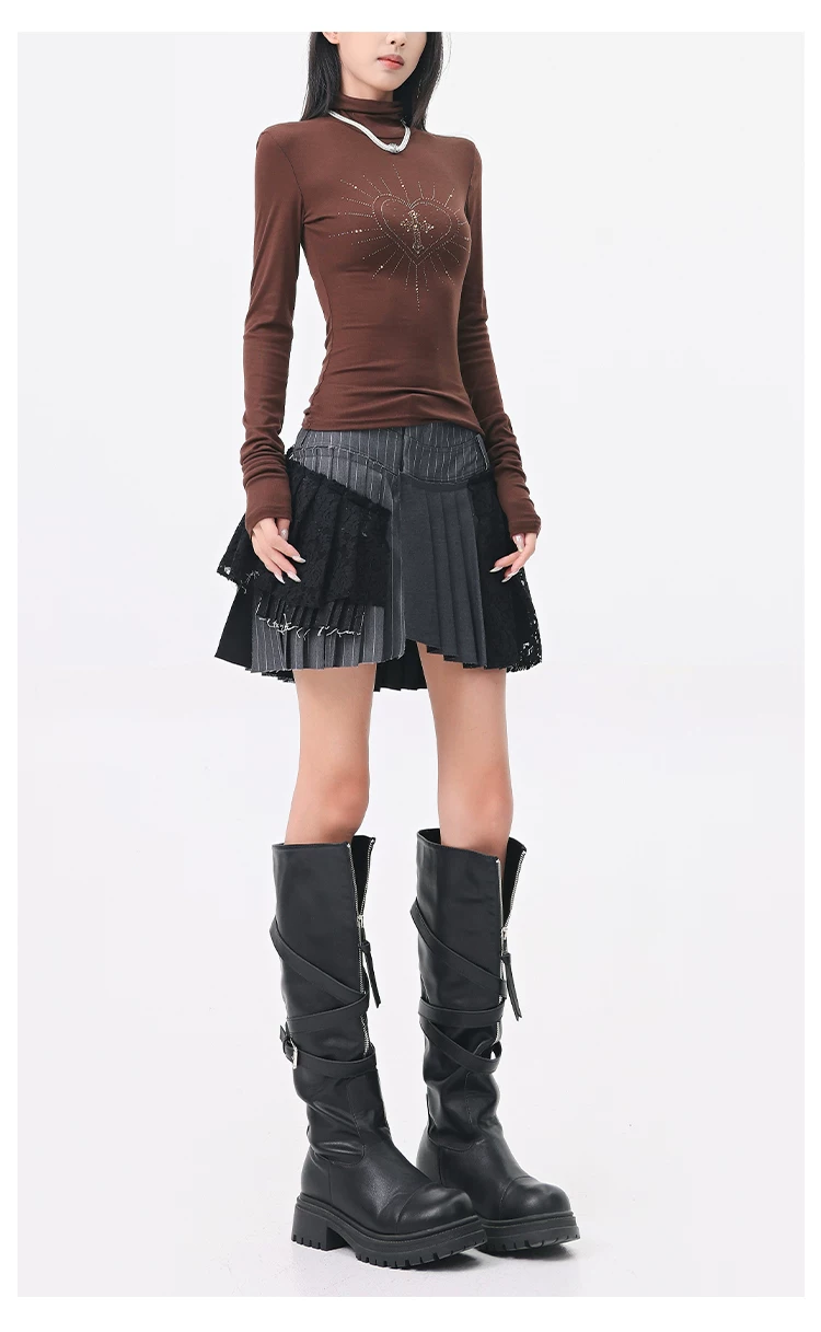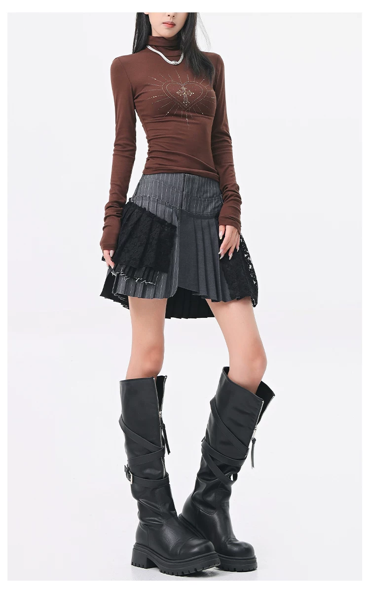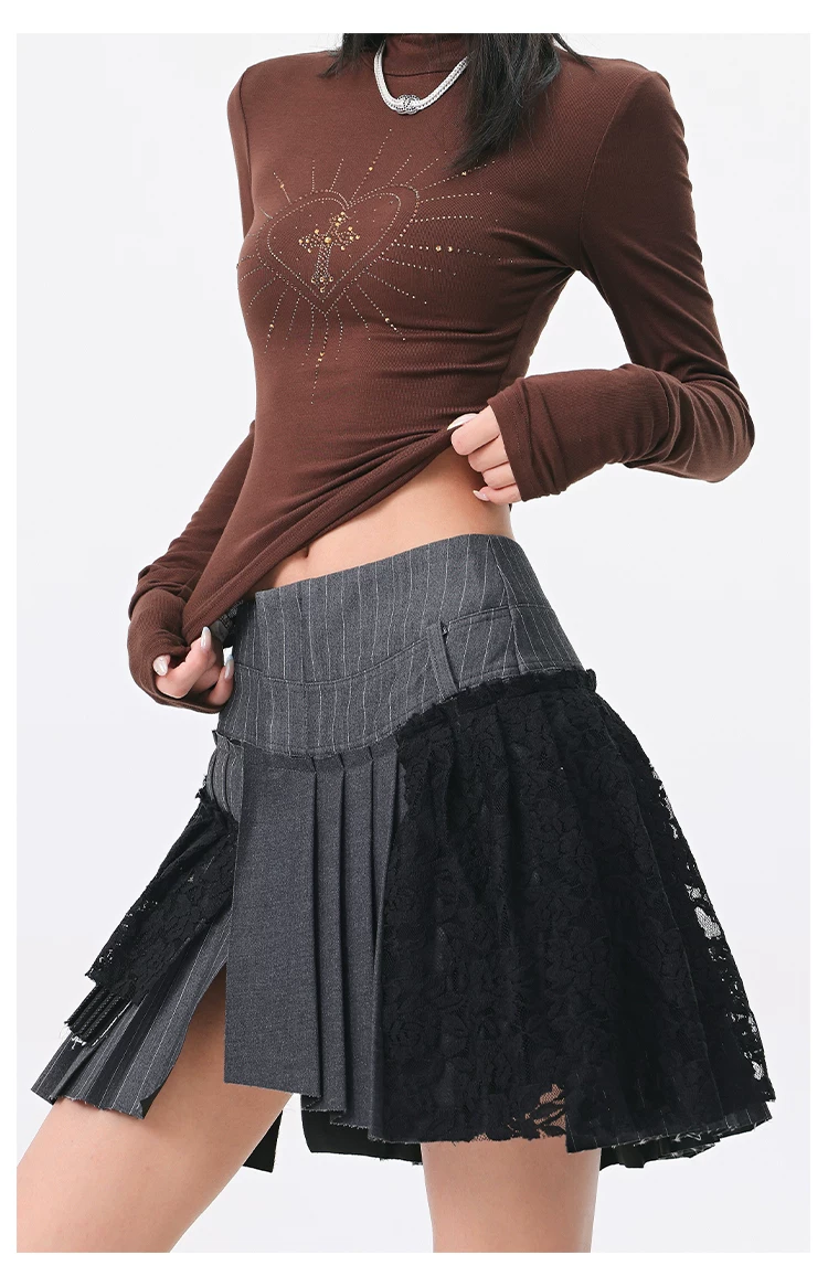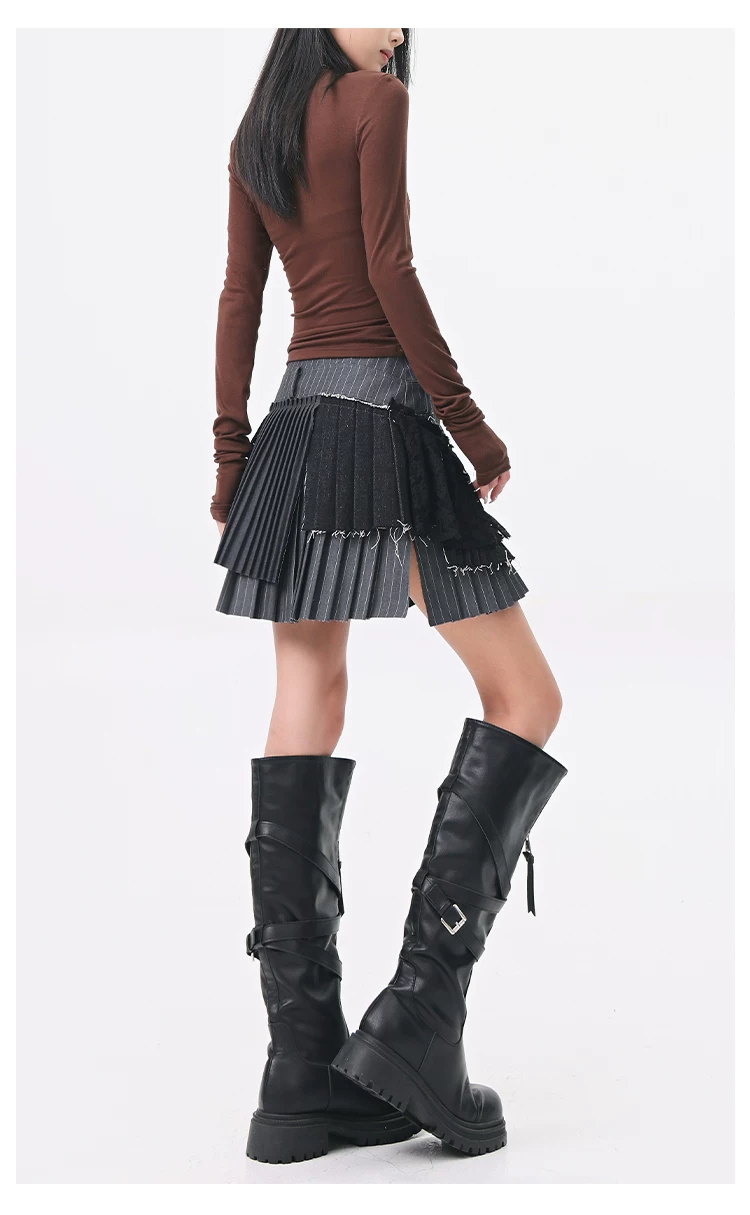 - KEN STUDIO cô gái cay cay váy xếp ly không đều mùa hè dành cho nữ mới váy ngắn ôm sát eo cao dáng chữ A