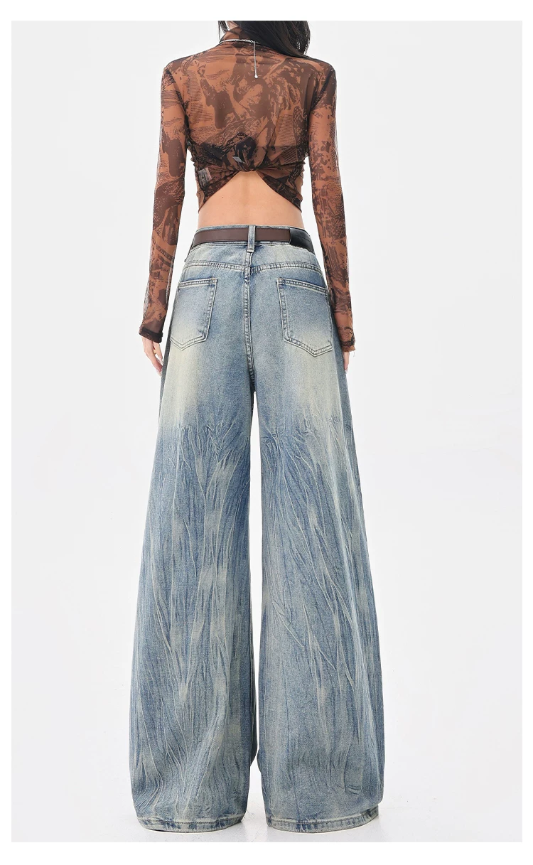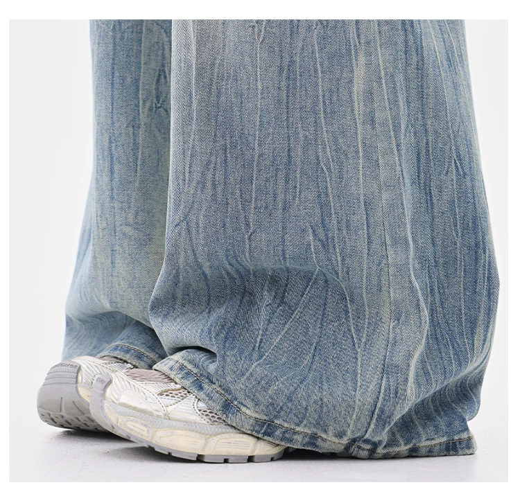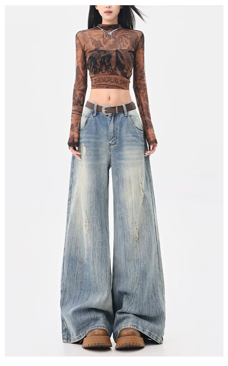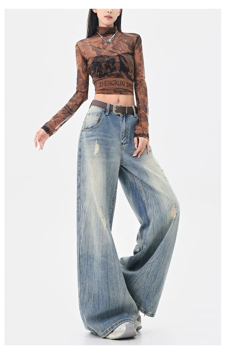 - KEN STUDIO đầu mùa thu quần jean ống rộng rách kiểu Mỹ cổ điển mới dành cho nữ, quần ống đứng dáng suông giản dị