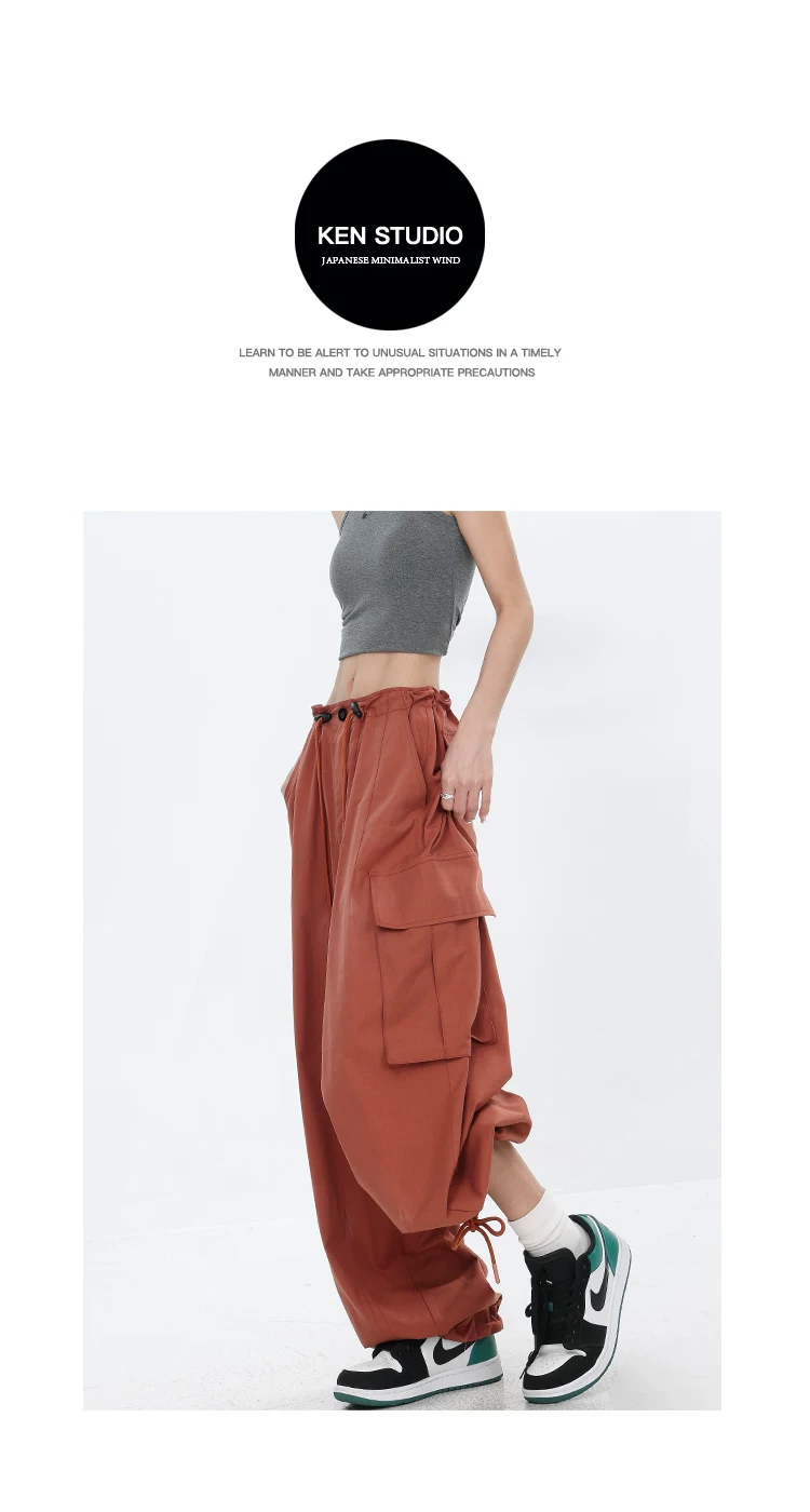 - KEN STUDIO mùa hè mới của Mỹ quần cargo đường phố cao cấp dành cho nữ quần nhảy đường phố hip-hop quần thẳng dáng rộng quần thường ngày