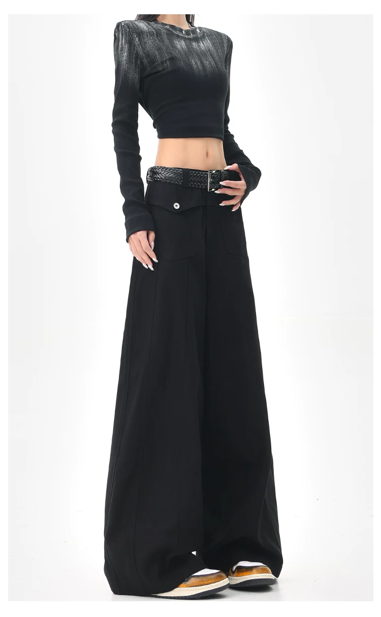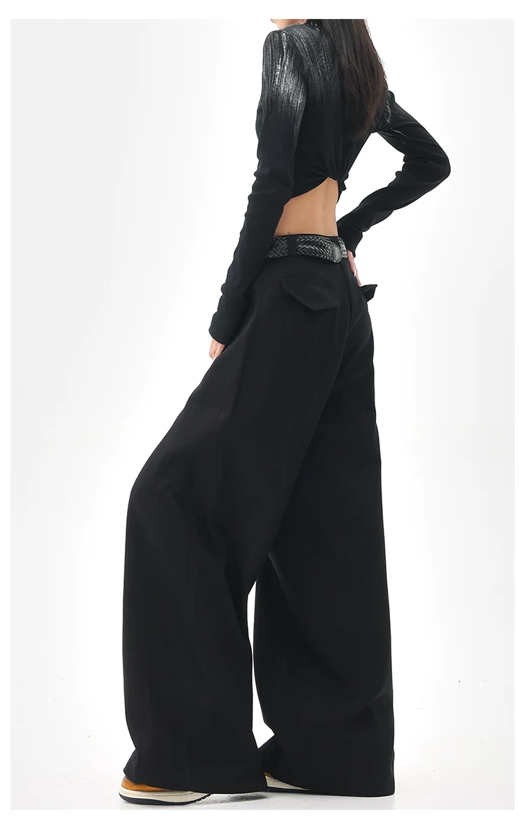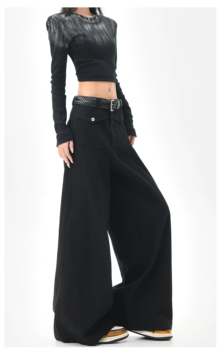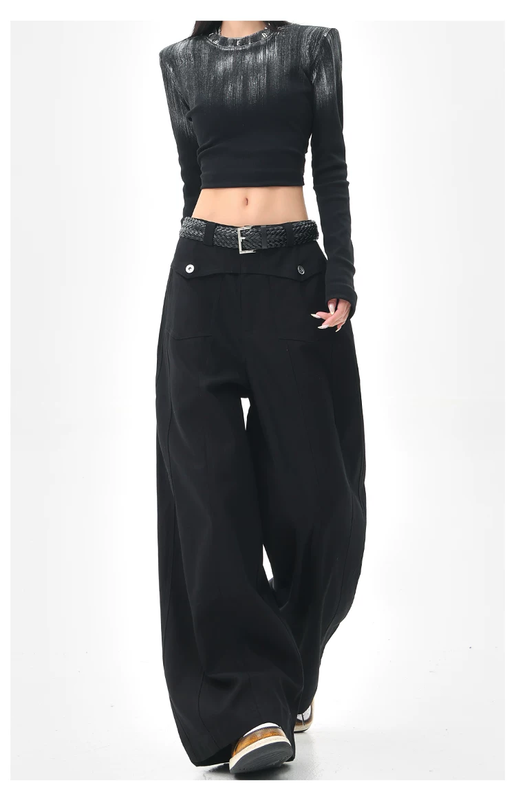 - KEN STUDIO mùa hè mới kiểu dáng cổ điển thiết kế giải cấu trúc quần scimitar quần dài thẳng dáng rộng giảm béo cho nữ