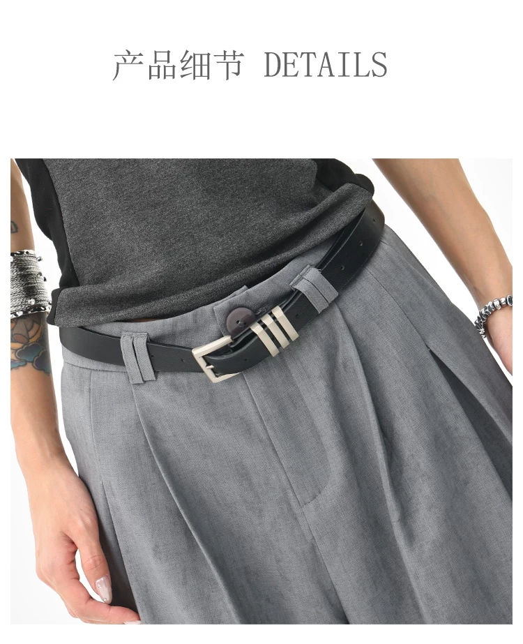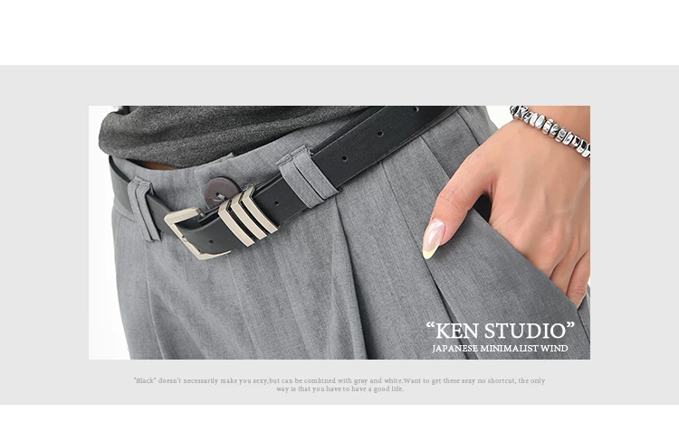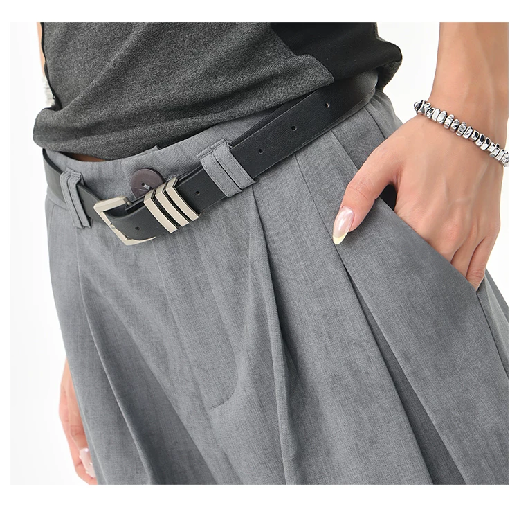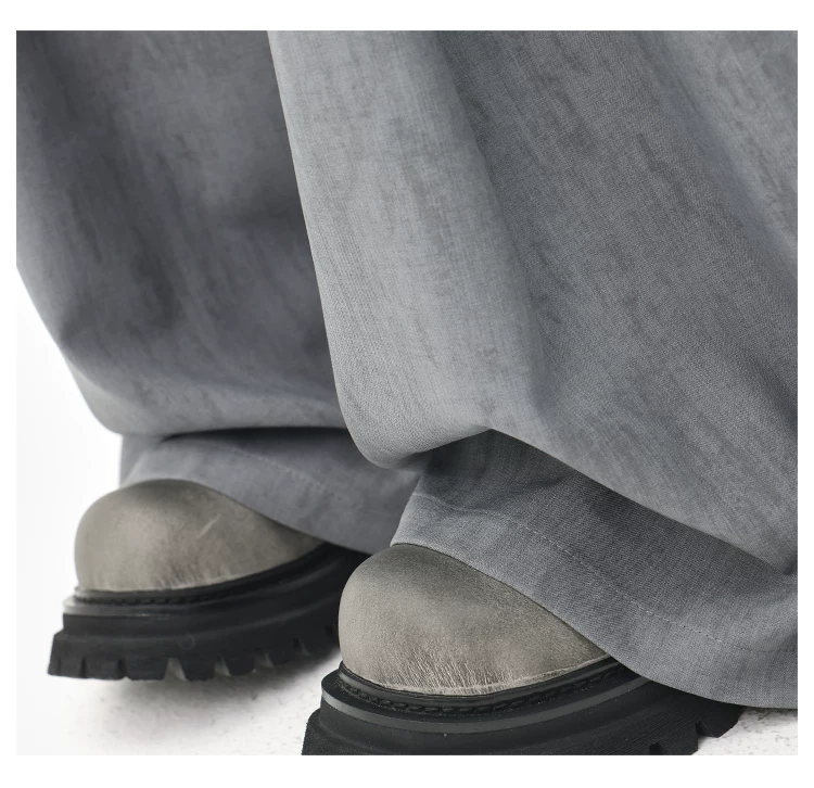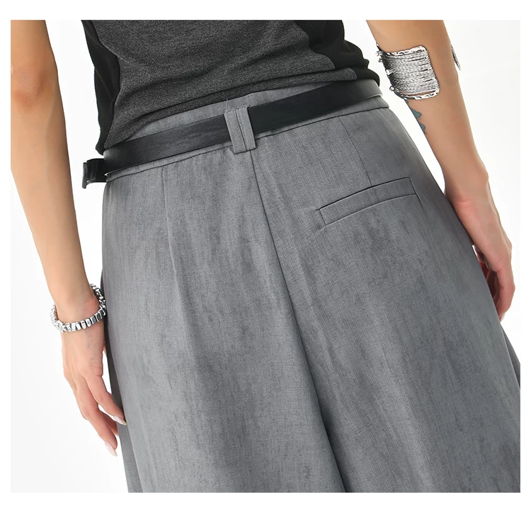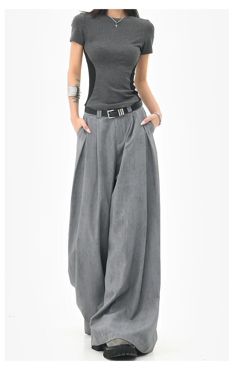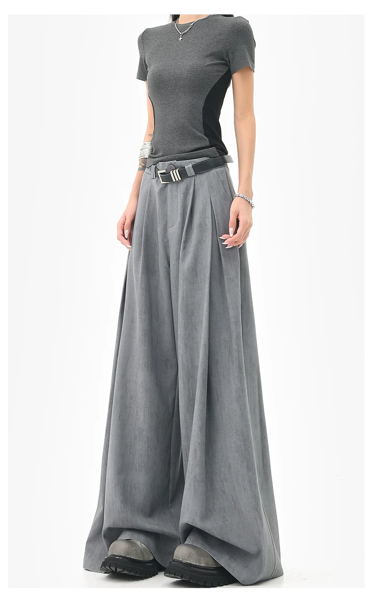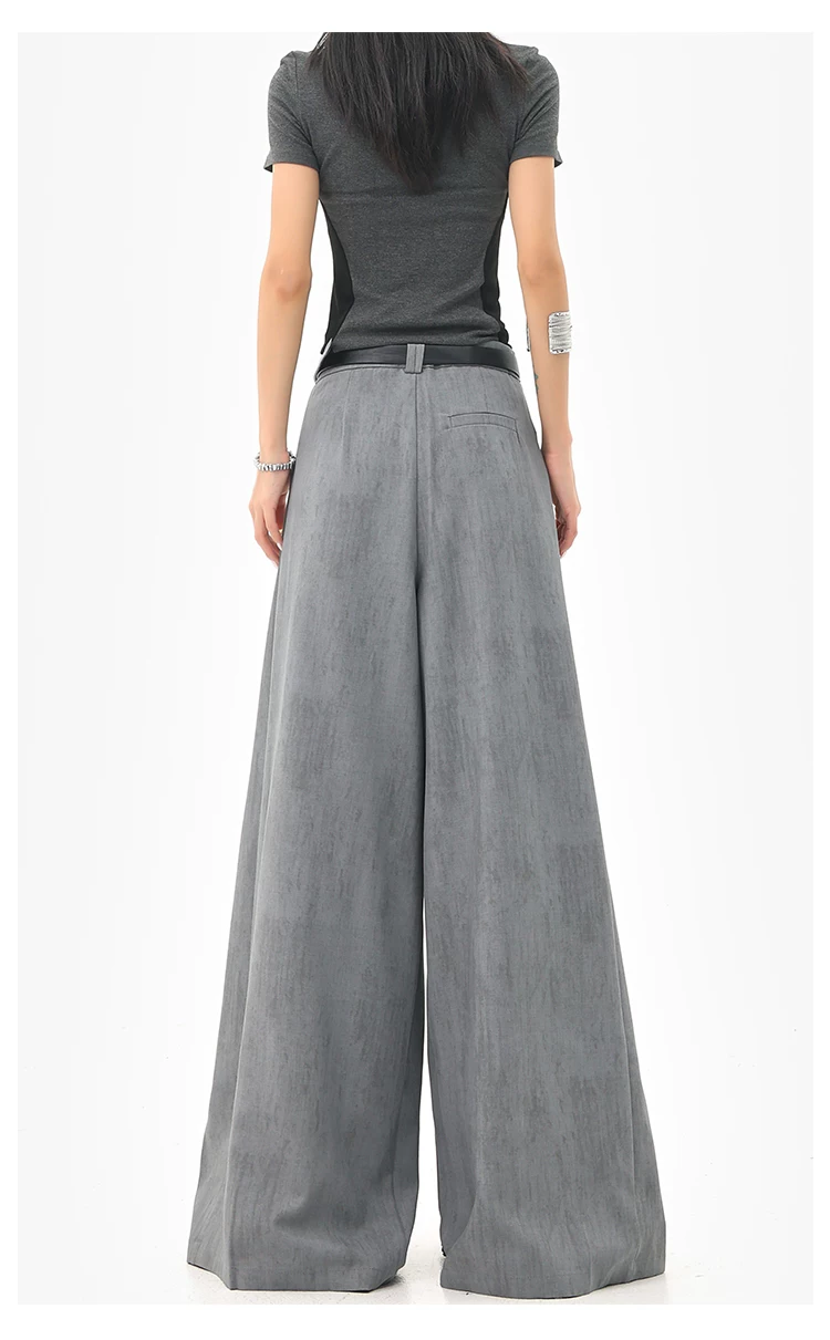 - KEN STUDIO mùa hè mới màu xám quần âu ống rộng xếp ly quần âu nữ thẳng dáng rộng quần âu quần âu thường ngày