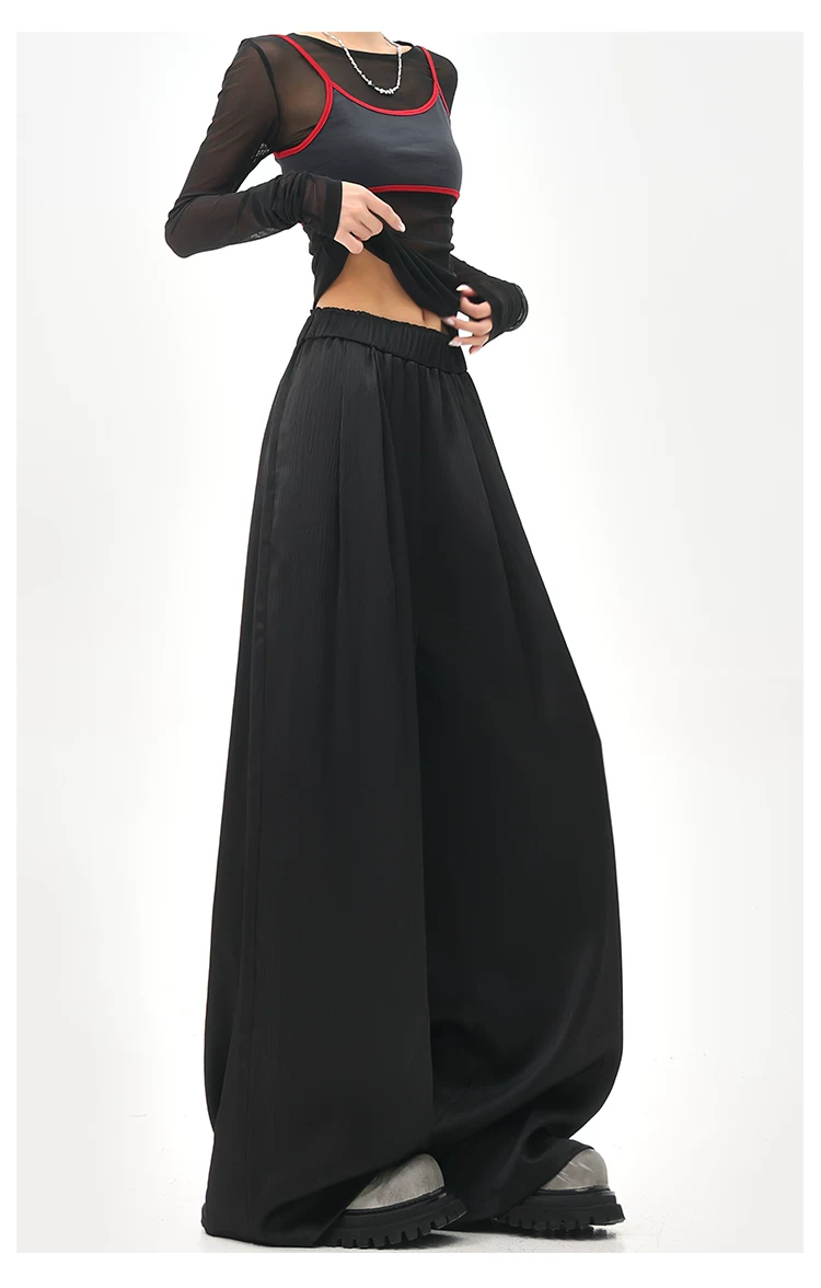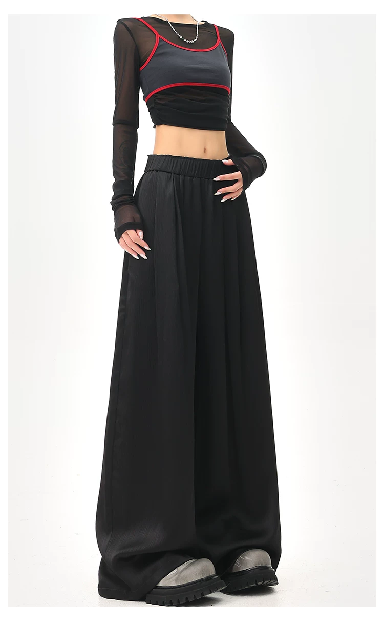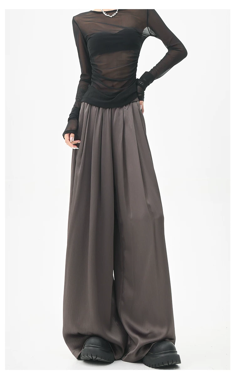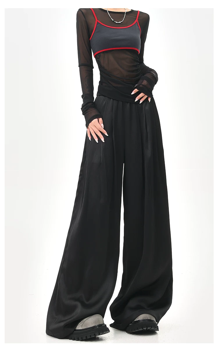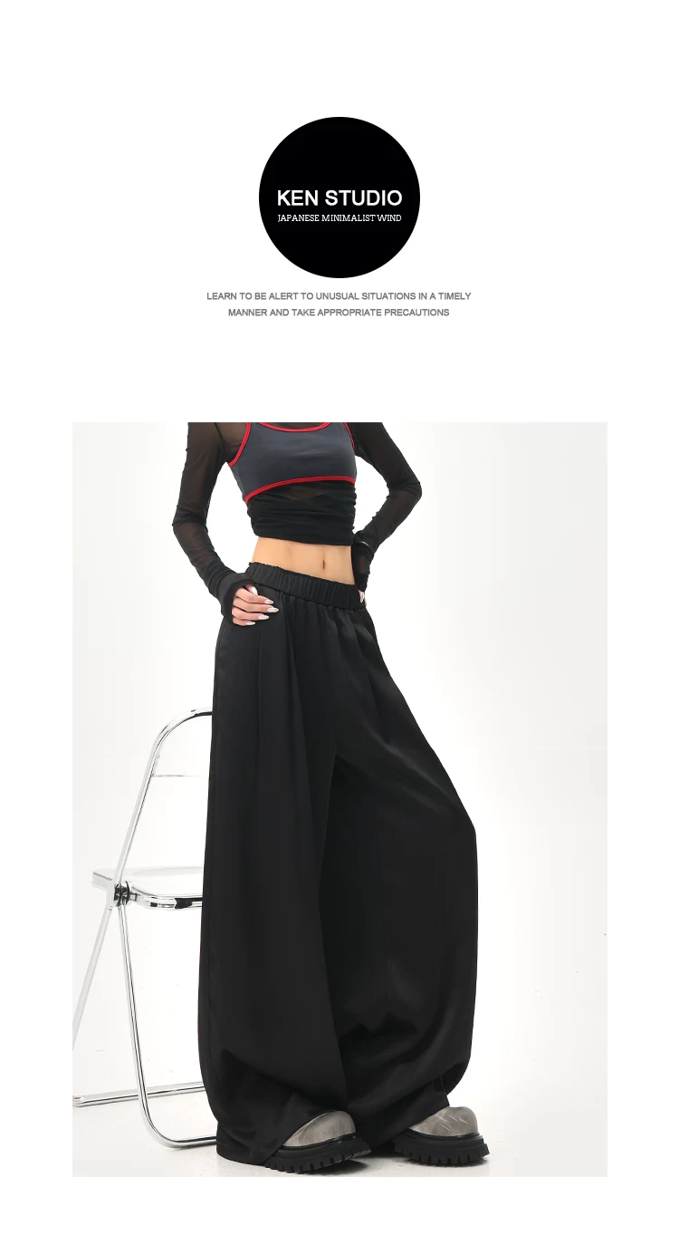 - KEN STUDIO mùa hè mới quần âu ống rộng xếp ly màu đen dành cho nữ, quần cạp cao, dáng suôn, quần rộng và tôn dáng