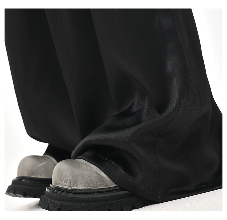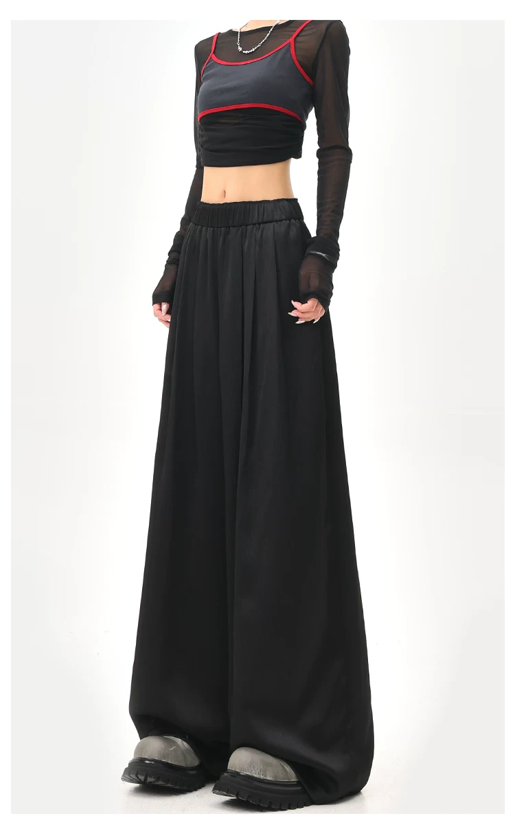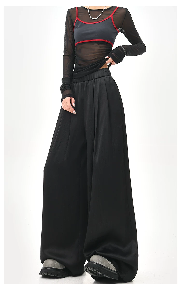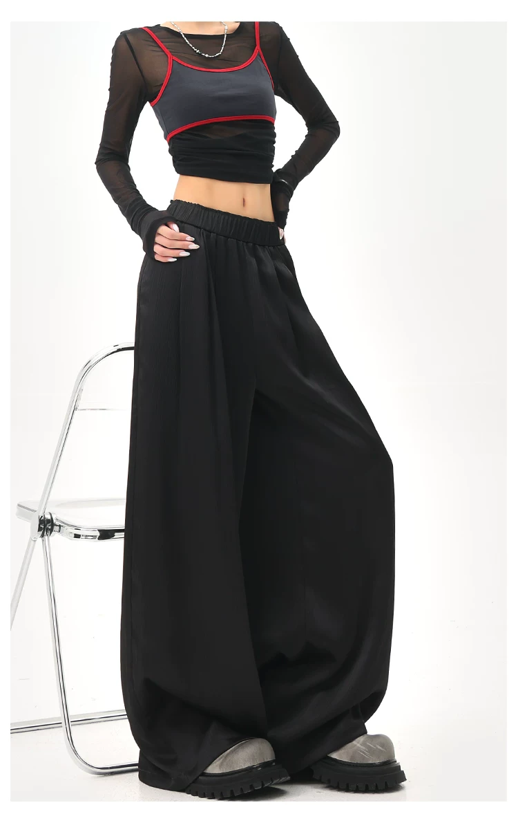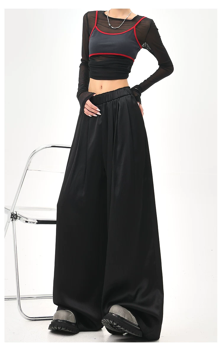 - KEN STUDIO mùa hè mới quần âu ống rộng xếp ly màu đen dành cho nữ, quần cạp cao, dáng suôn, quần rộng và tôn dáng