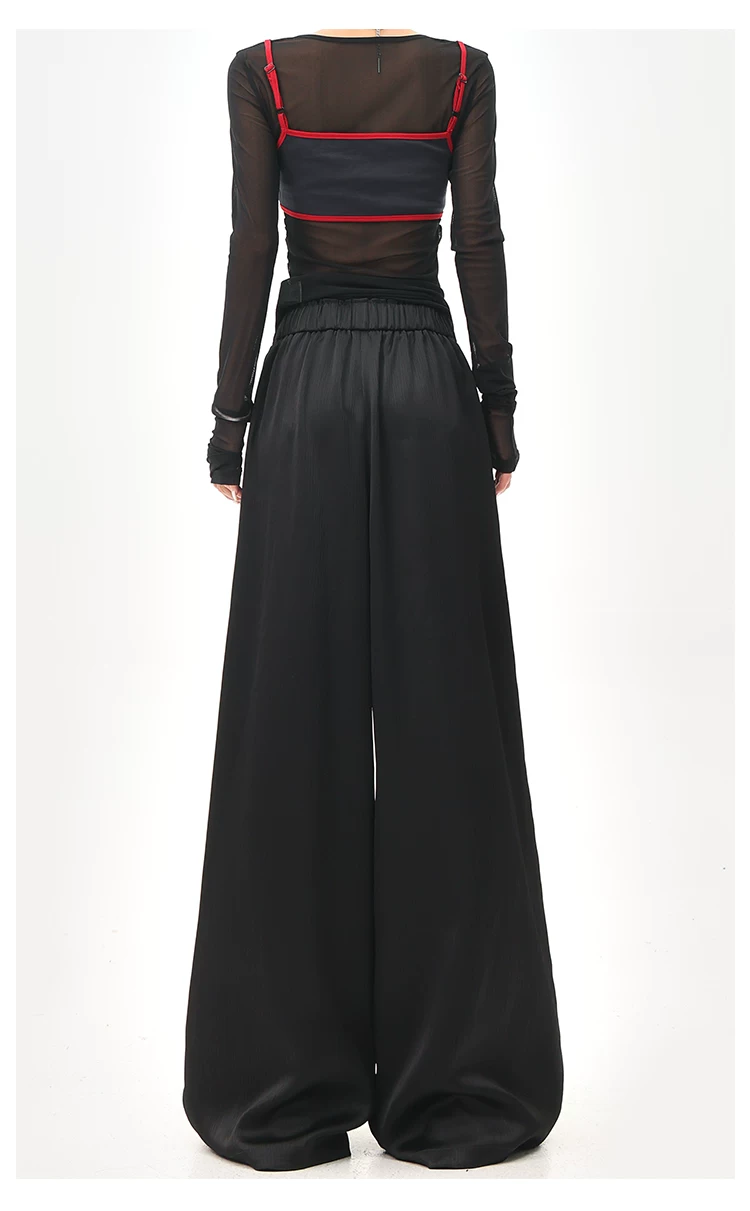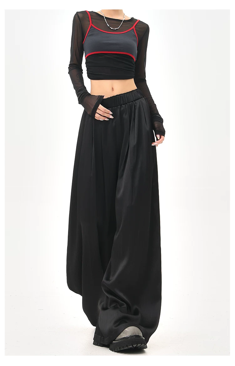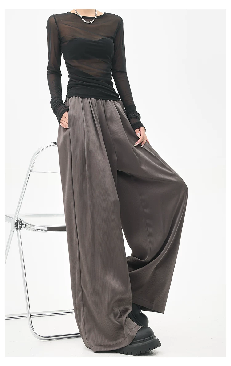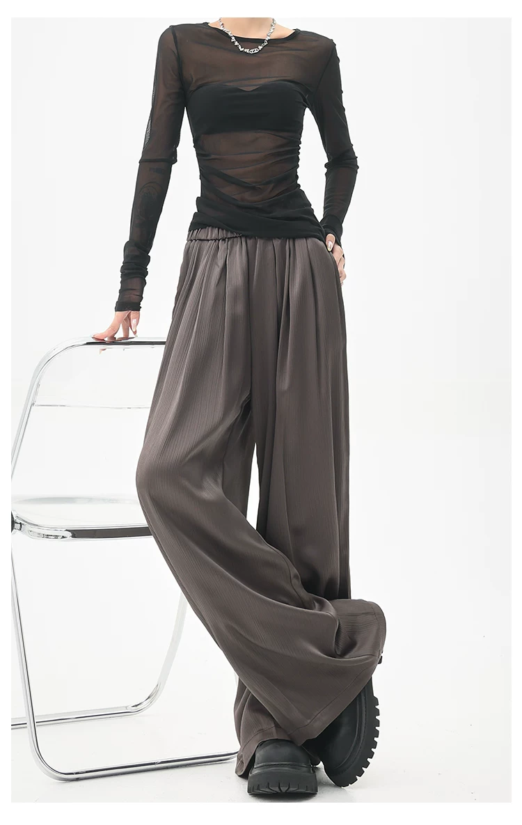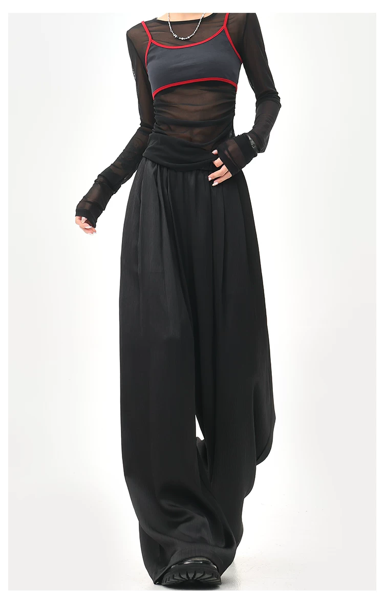 - KEN STUDIO mùa hè mới quần âu ống rộng xếp ly màu đen dành cho nữ, quần cạp cao, dáng suôn, quần rộng và tôn dáng