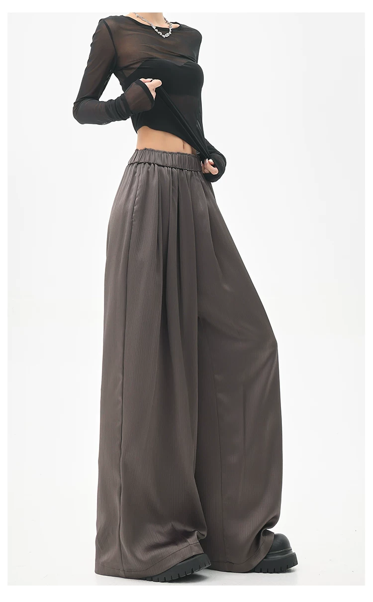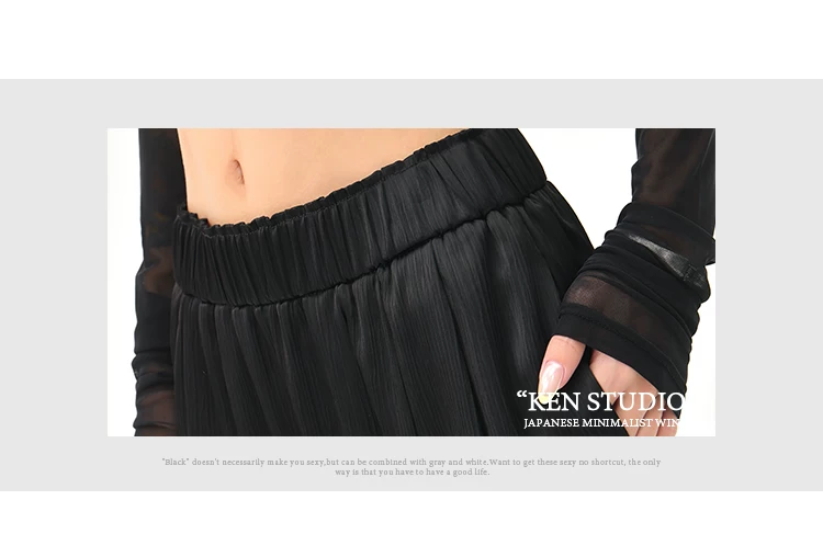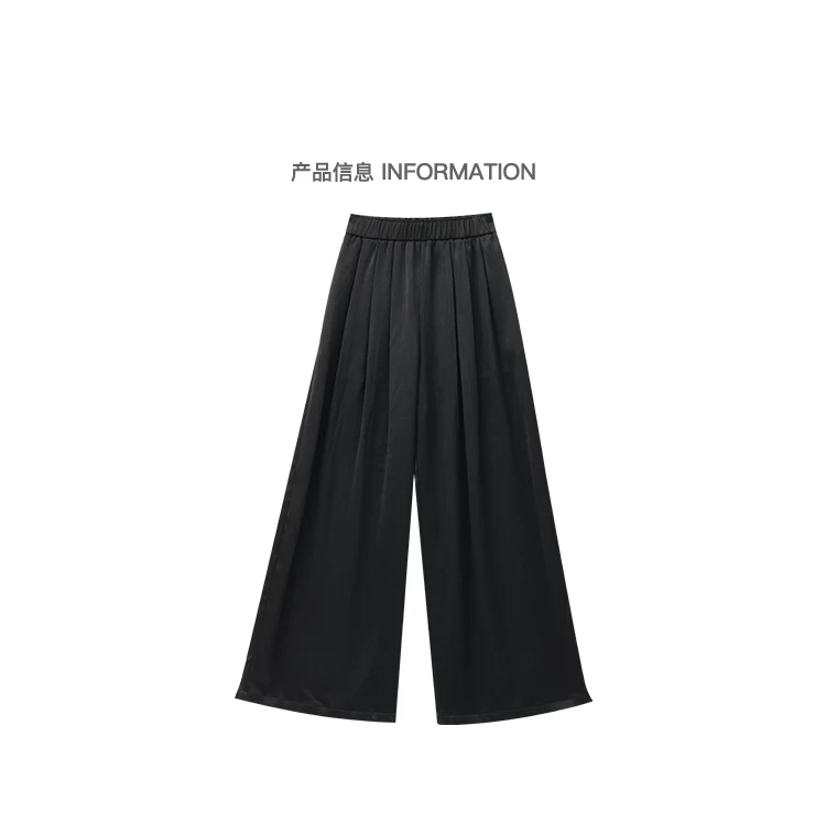 KEN STUDIO mùa hè mới quần âu ống rộng xếp ly màu đen dành cho nữ, quần cạp cao, dáng suôn, quần rộng và tôn dáng