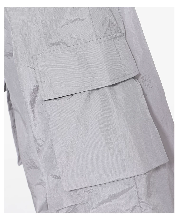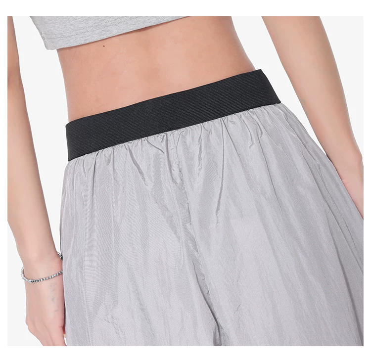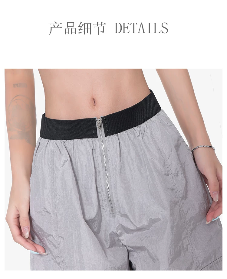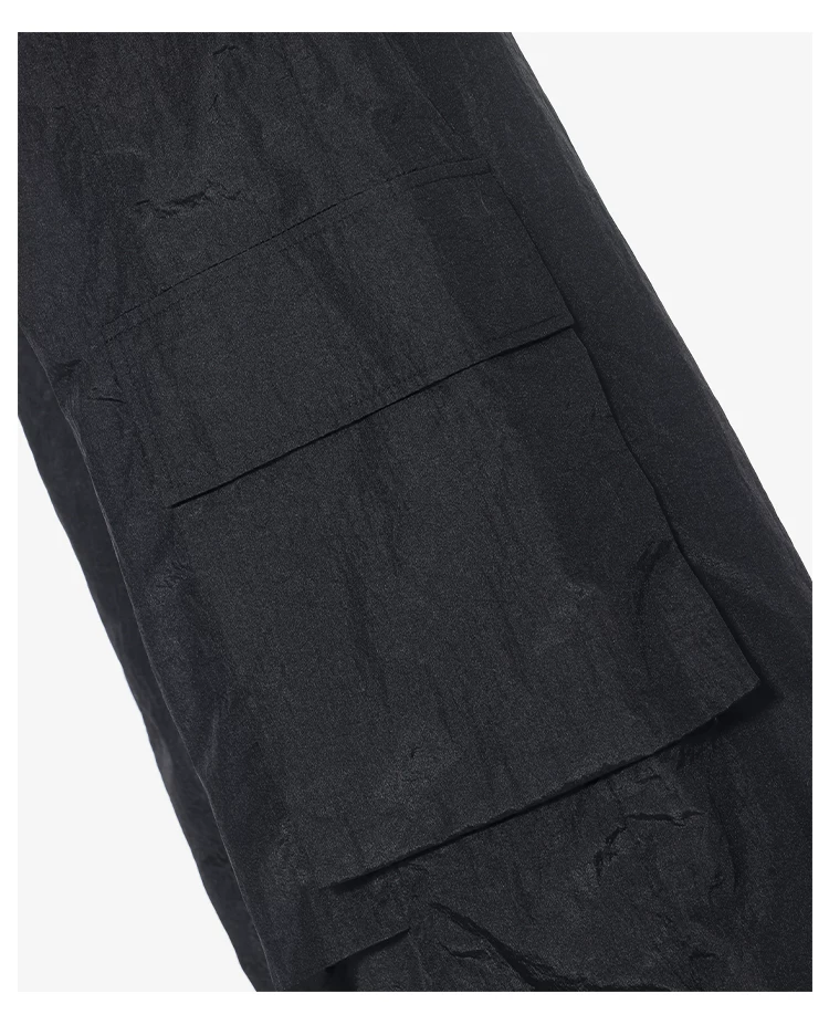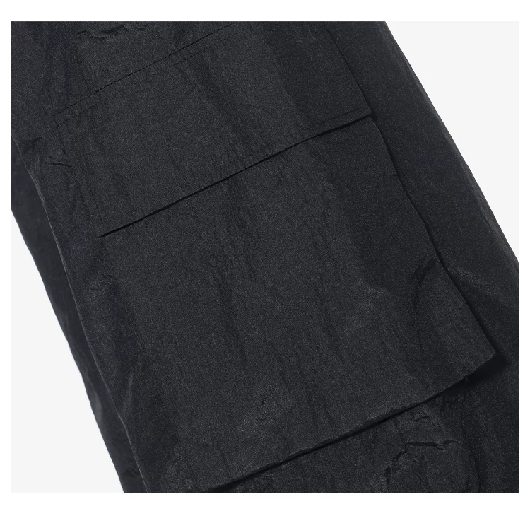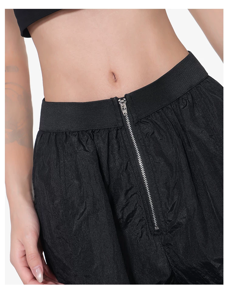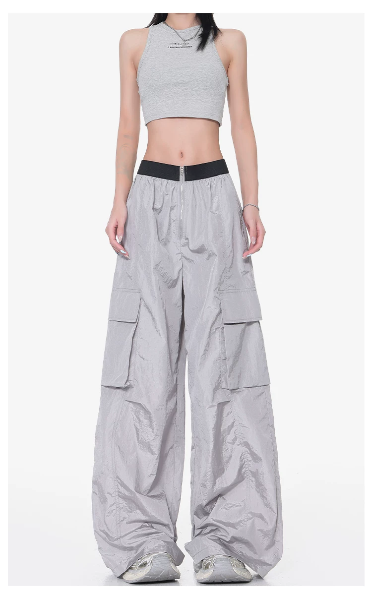 KEN STUDIO mùa hè mới quần cargo mỏng màu đen dành cho nữ có lưng thun, quần ống rộng, quần ống rộng lưng cao, quần thường ngày rộng rãi