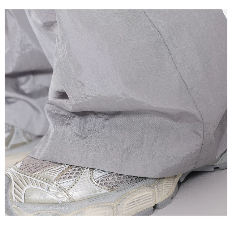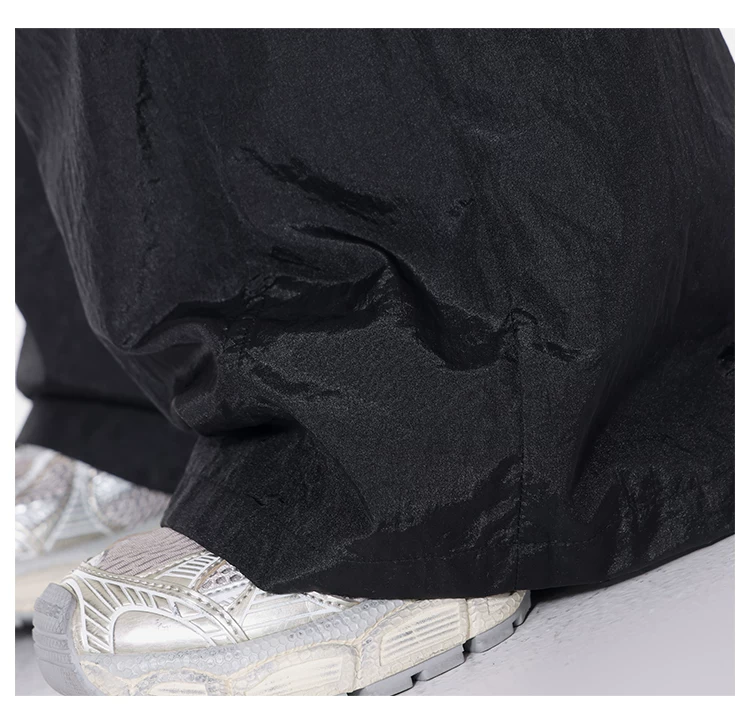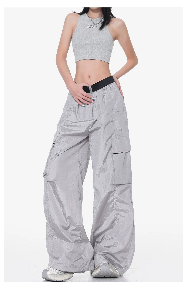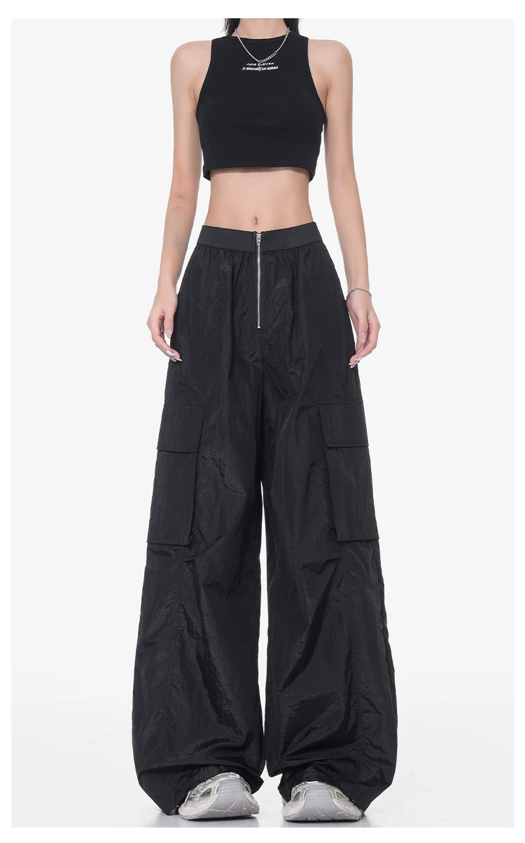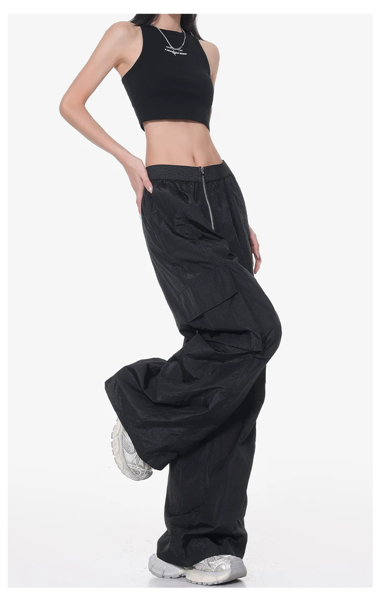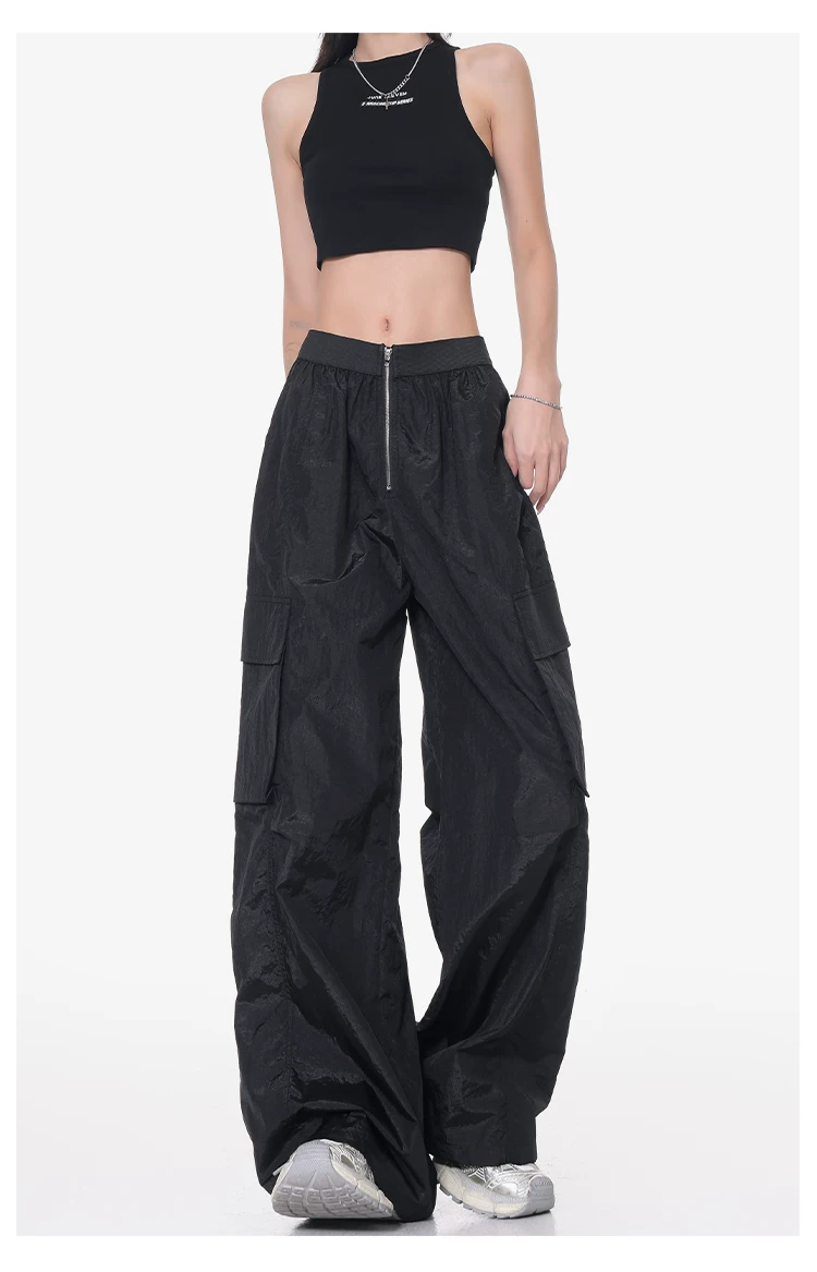 - KEN STUDIO mùa hè mới quần cargo mỏng màu đen dành cho nữ có lưng thun, quần ống rộng, quần ống rộng lưng cao, quần thường ngày rộng rãi