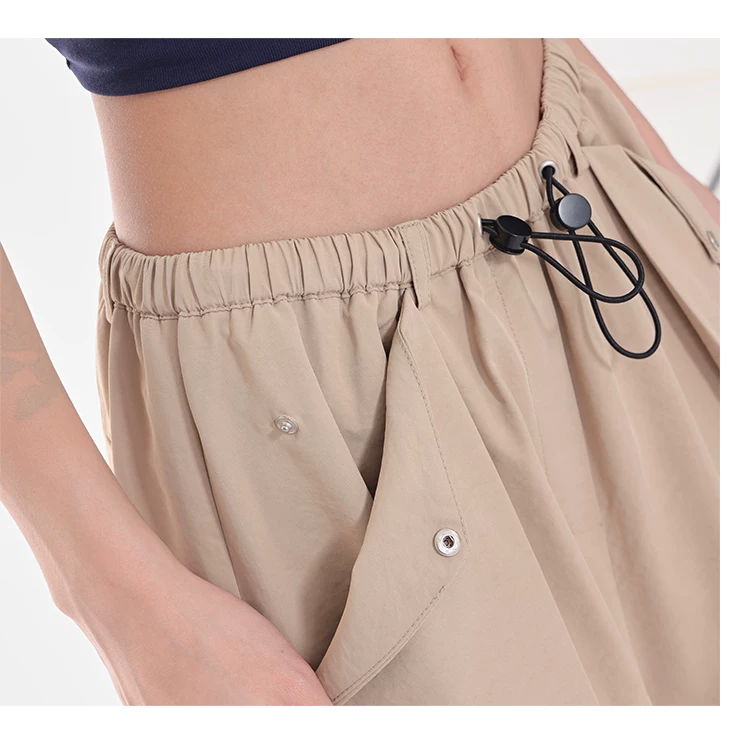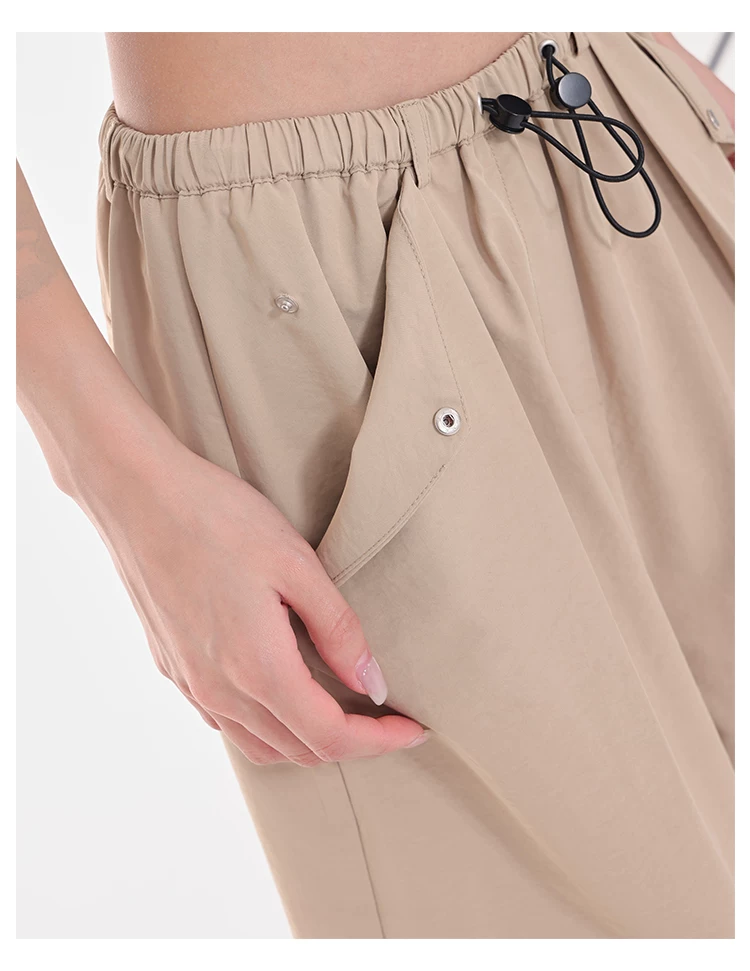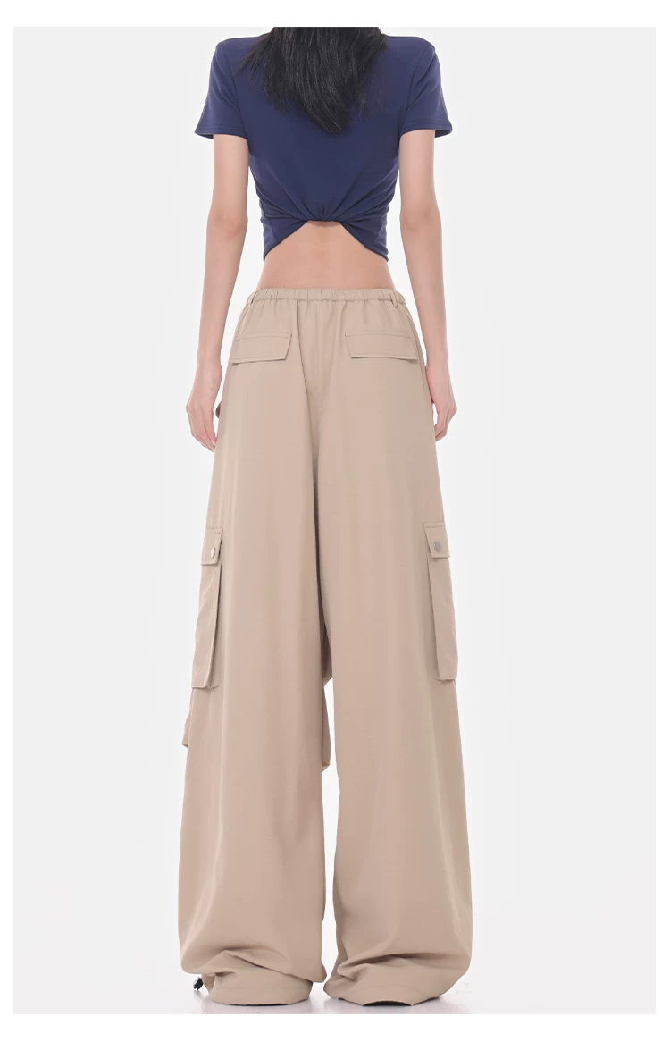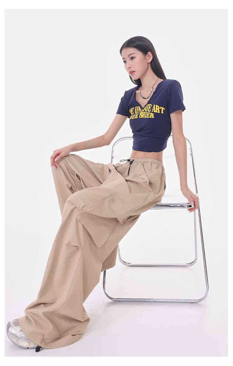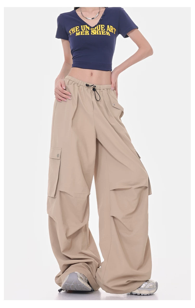 - KEN STUDIO mùa hè mới quần cargo ống rộng xếp ly theo phong cách retro Mỹ dành cho nữ, quần jogger ống thẳng dài đến sàn kiểu lính dù