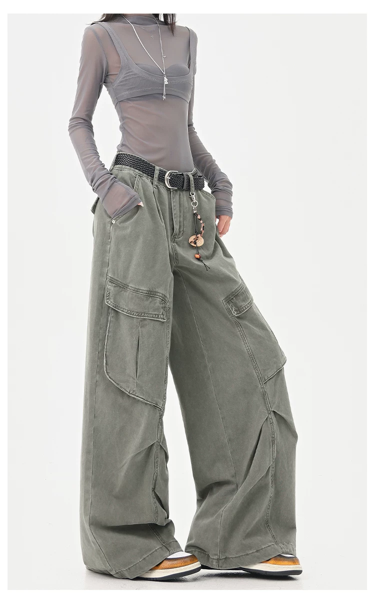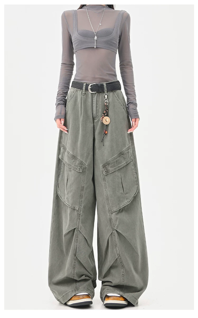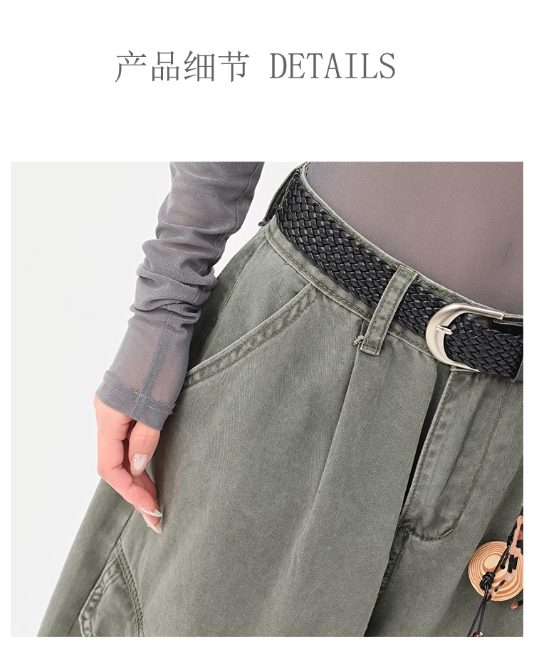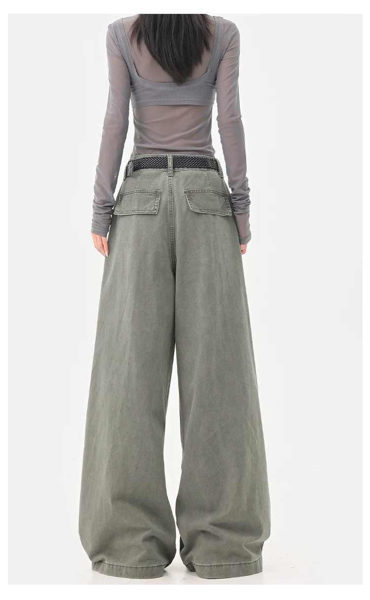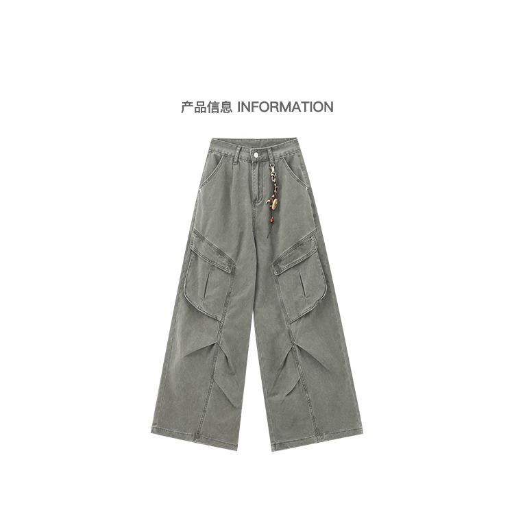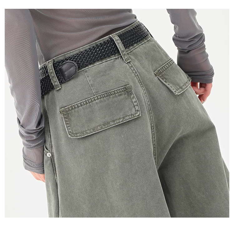 - KEN STUDIO mùa hè mới quần jean công sở kiểu vintage được thiết kế theo phong cách vintage dành cho nữ với thiết kế xếp ly, quần ống rộng dáng rộng