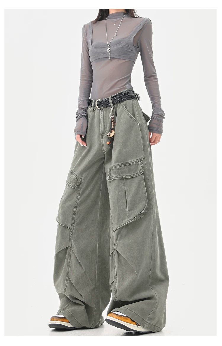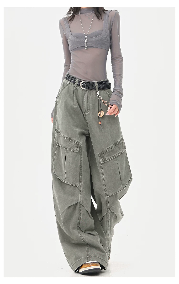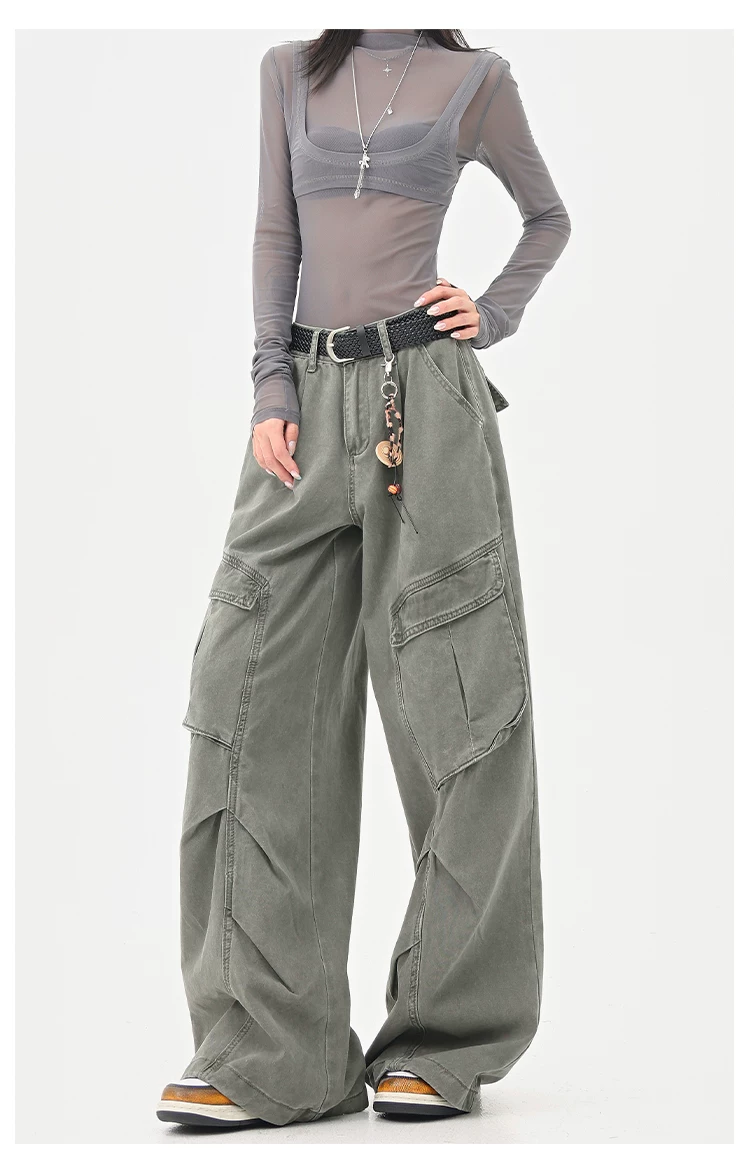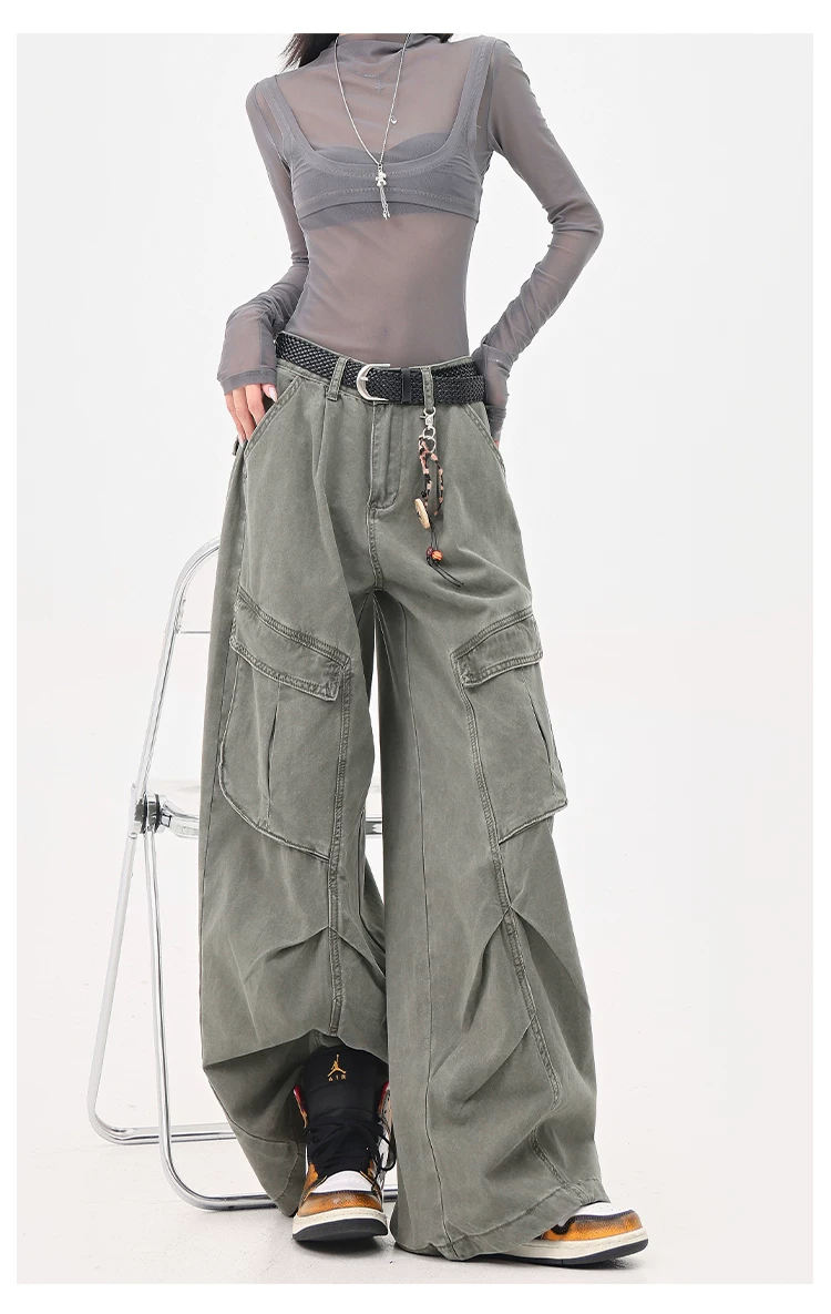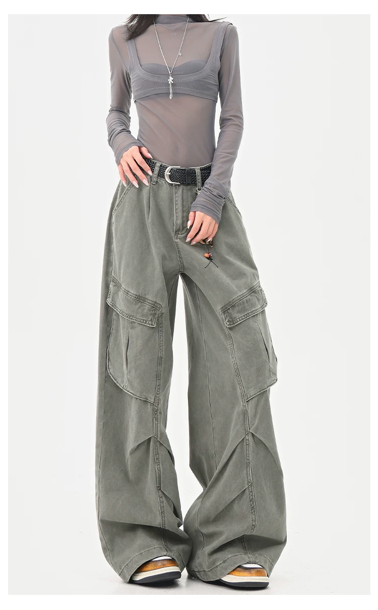 - KEN STUDIO mùa hè mới quần jean công sở kiểu vintage được thiết kế theo phong cách vintage dành cho nữ với thiết kế xếp ly, quần ống rộng dáng rộng
