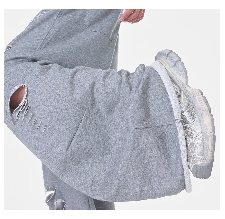 KEN STUDIO mùa hè phong cách mới quần thể thao xẻ tà màu xám quần thể thao dáng rộng lưng cao quần ống rộng cho nữ