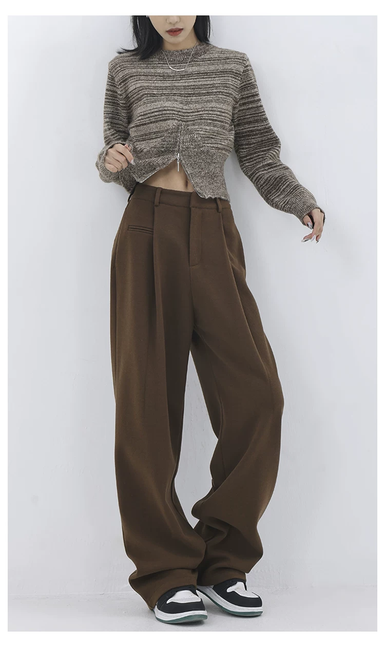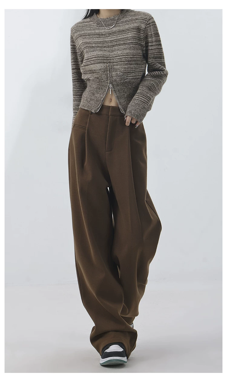 - KEN STUDIO mùa thu đông dày dặn len ống thẳng phù hợp với quần âu quần âu nữ quần ống rộng quần âu quần dài