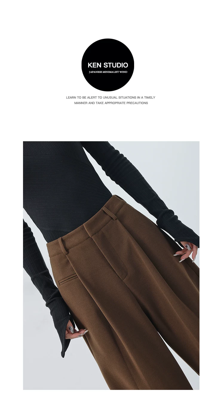 KEN STUDIO mùa thu đông dày dặn len ống thẳng phù hợp với quần âu quần âu nữ quần ống rộng quần âu quần dài