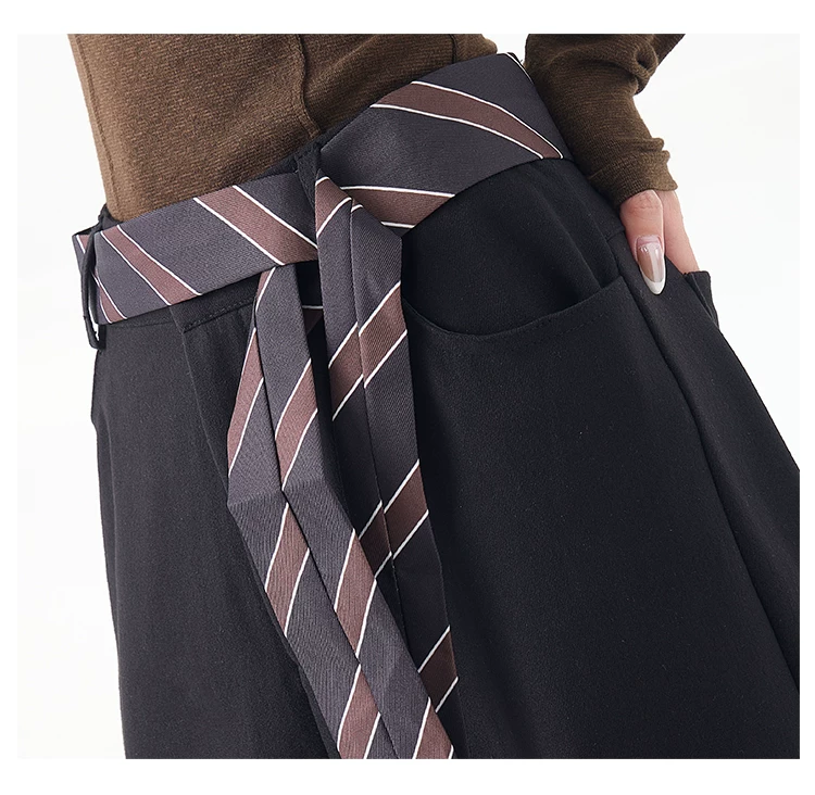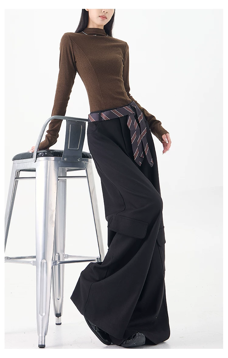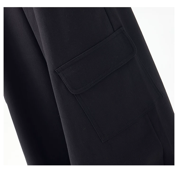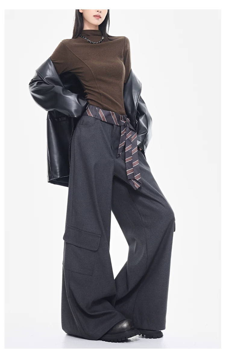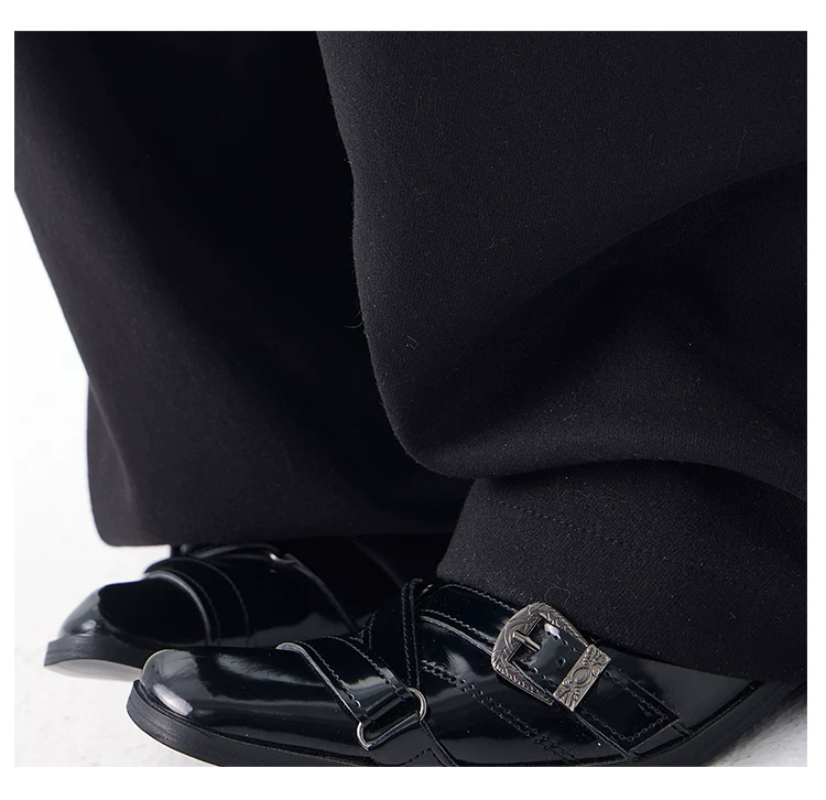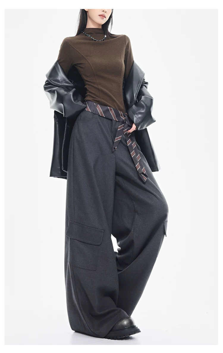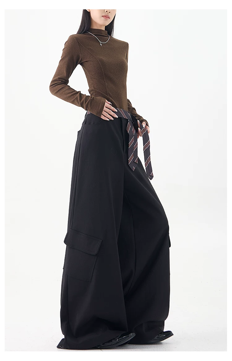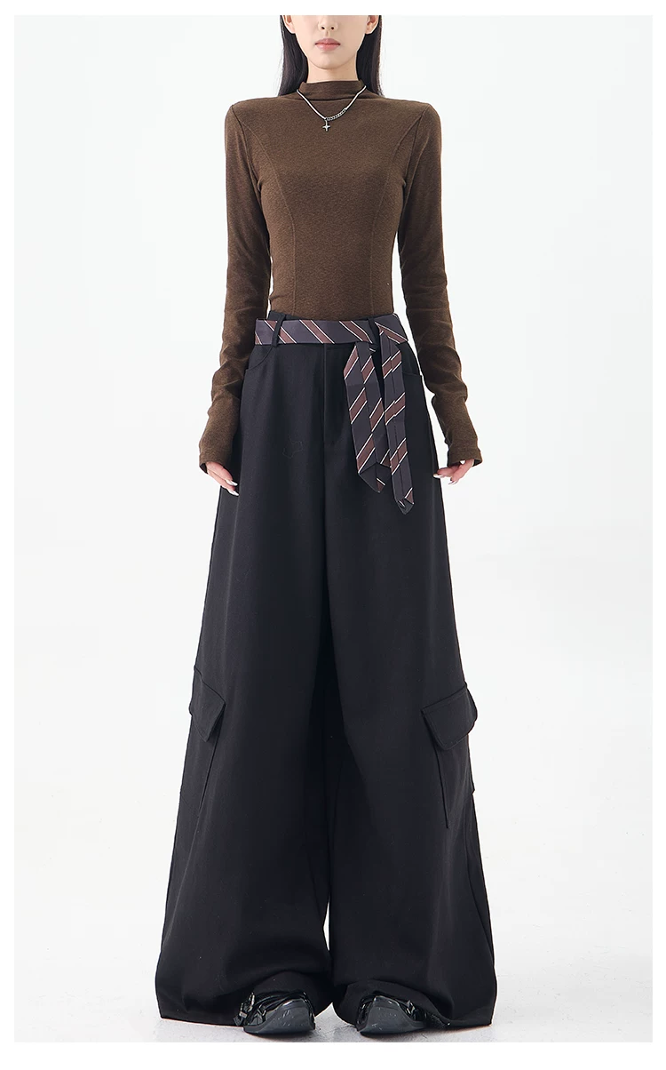 - KEN STUDIO mùa thu đông mới màu đen dày dặn quần âu thường ngày dành cho nữ quần ống rộng lưng cao thẳng dáng rộng