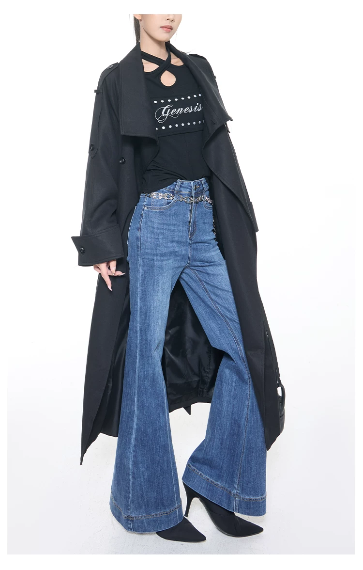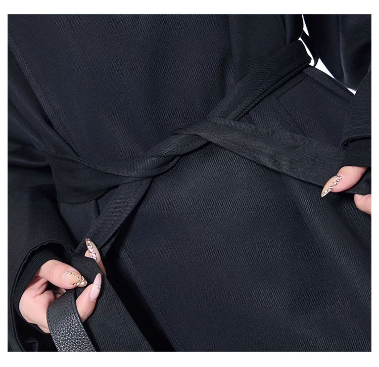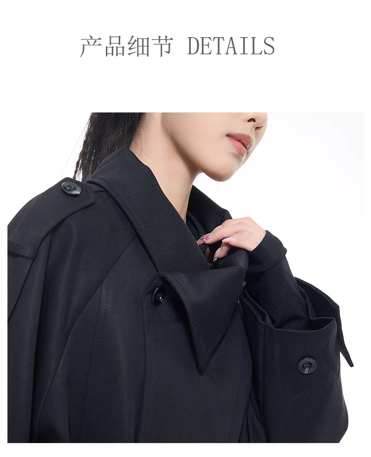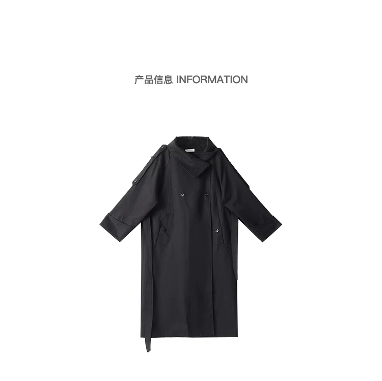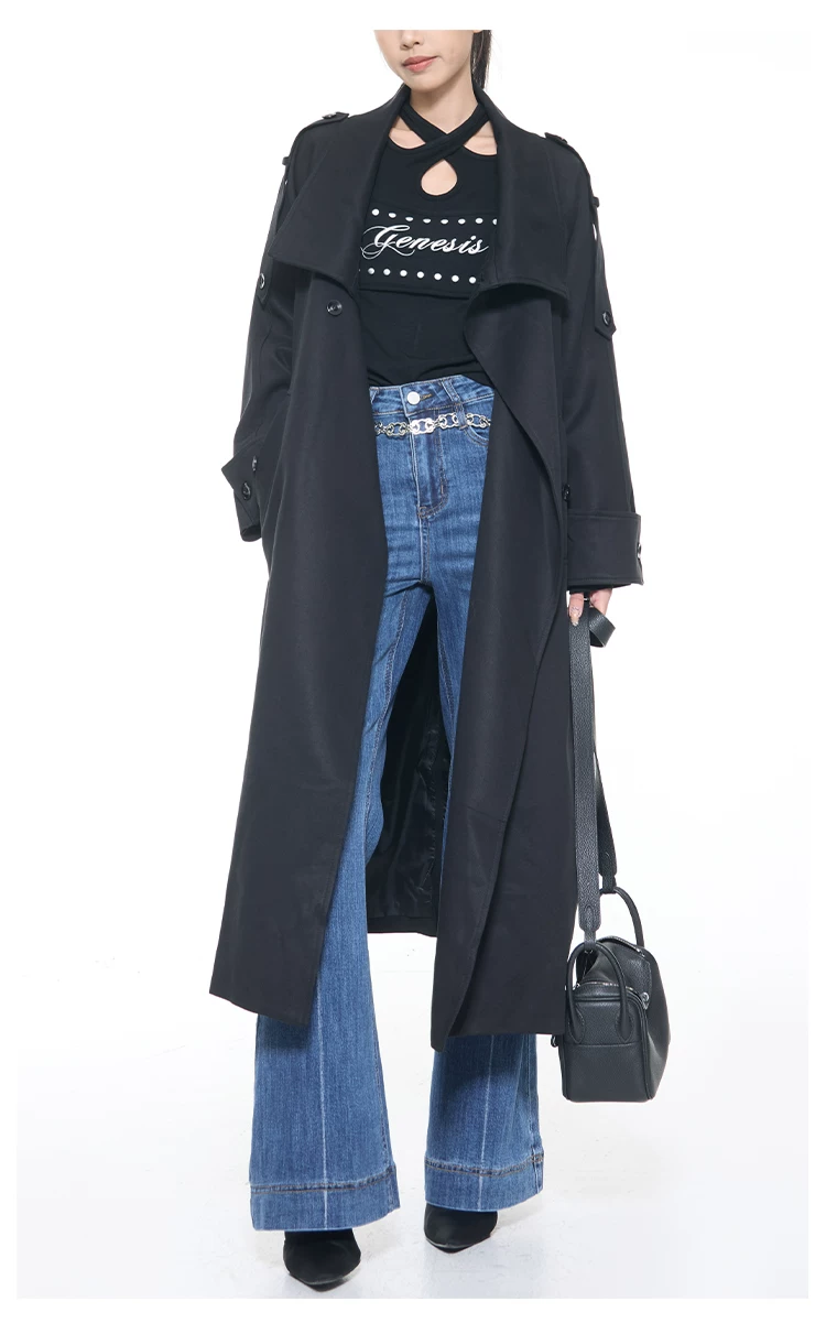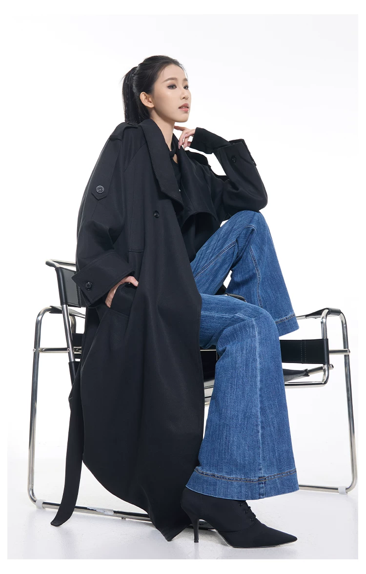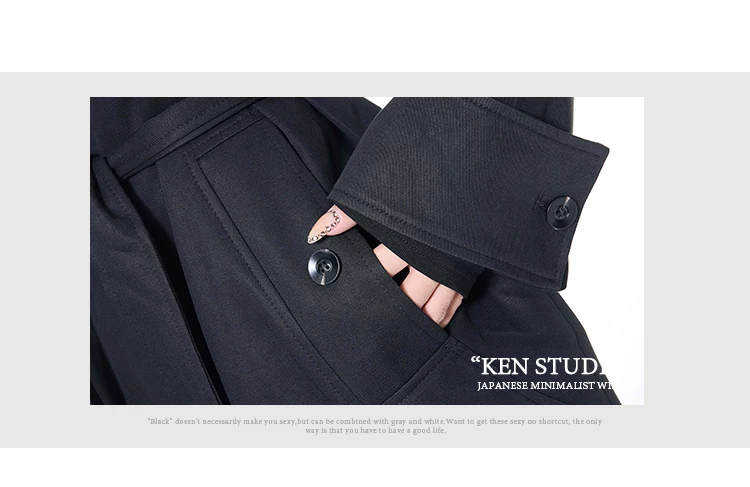 - KEN STUDIO mùa thu đông mới phong cách Anh quốc áo khoác dài có ve áo màu đen dành cho nữ áo khoác dáng rộng dài vừa phải