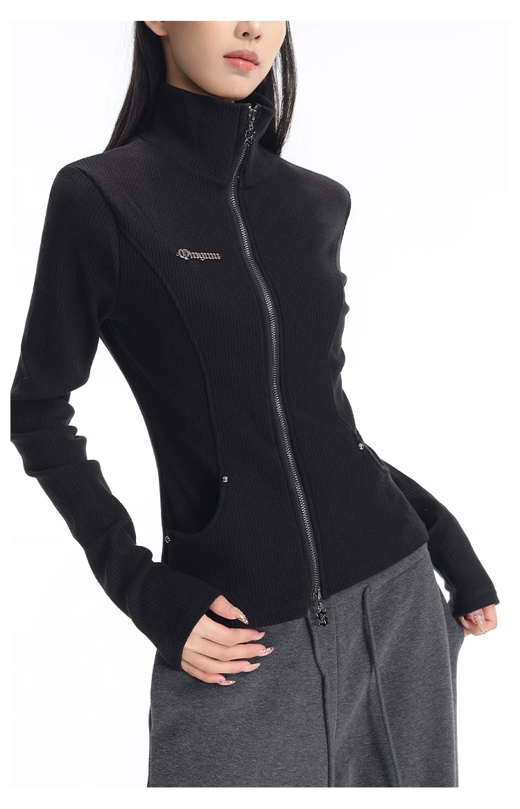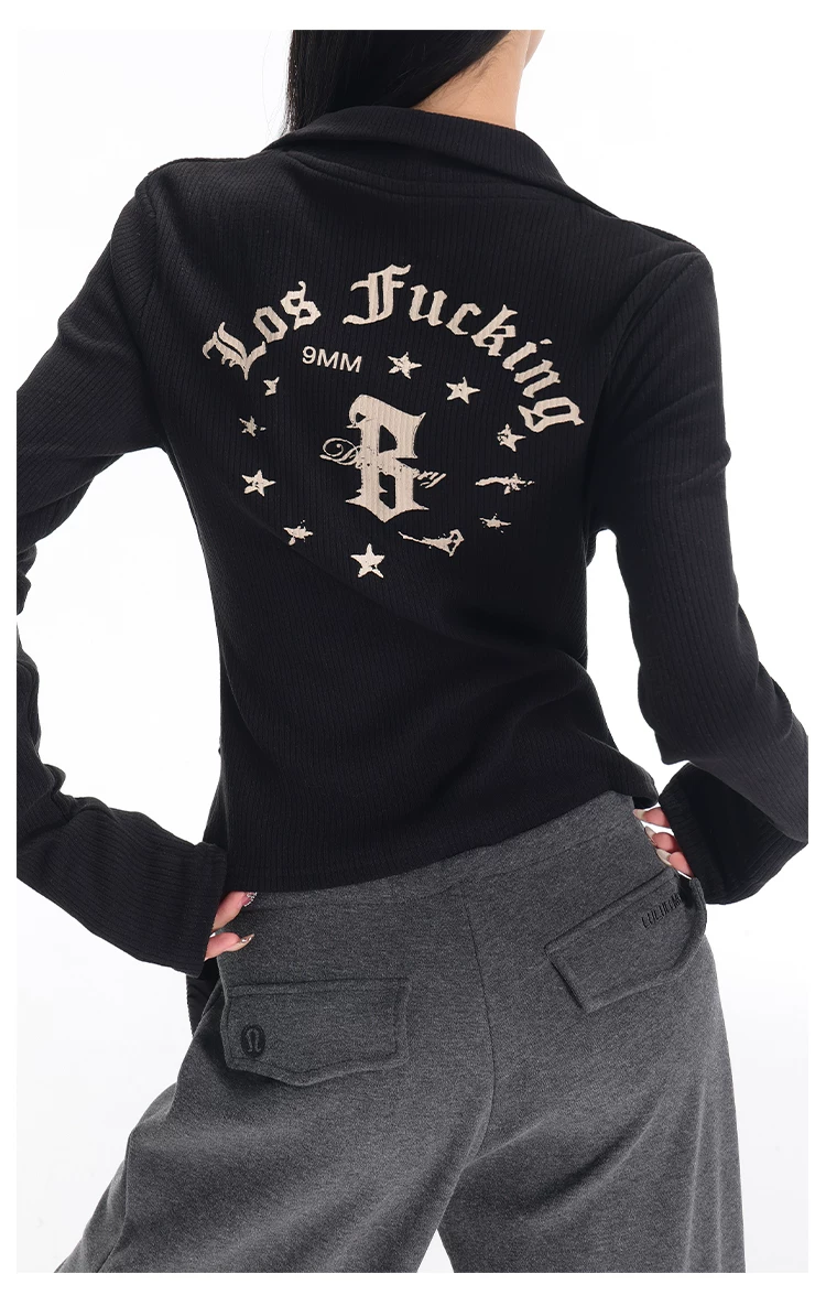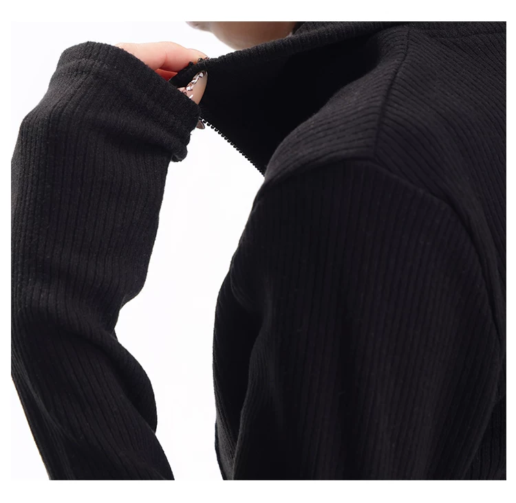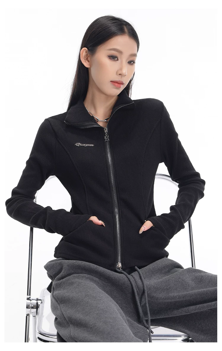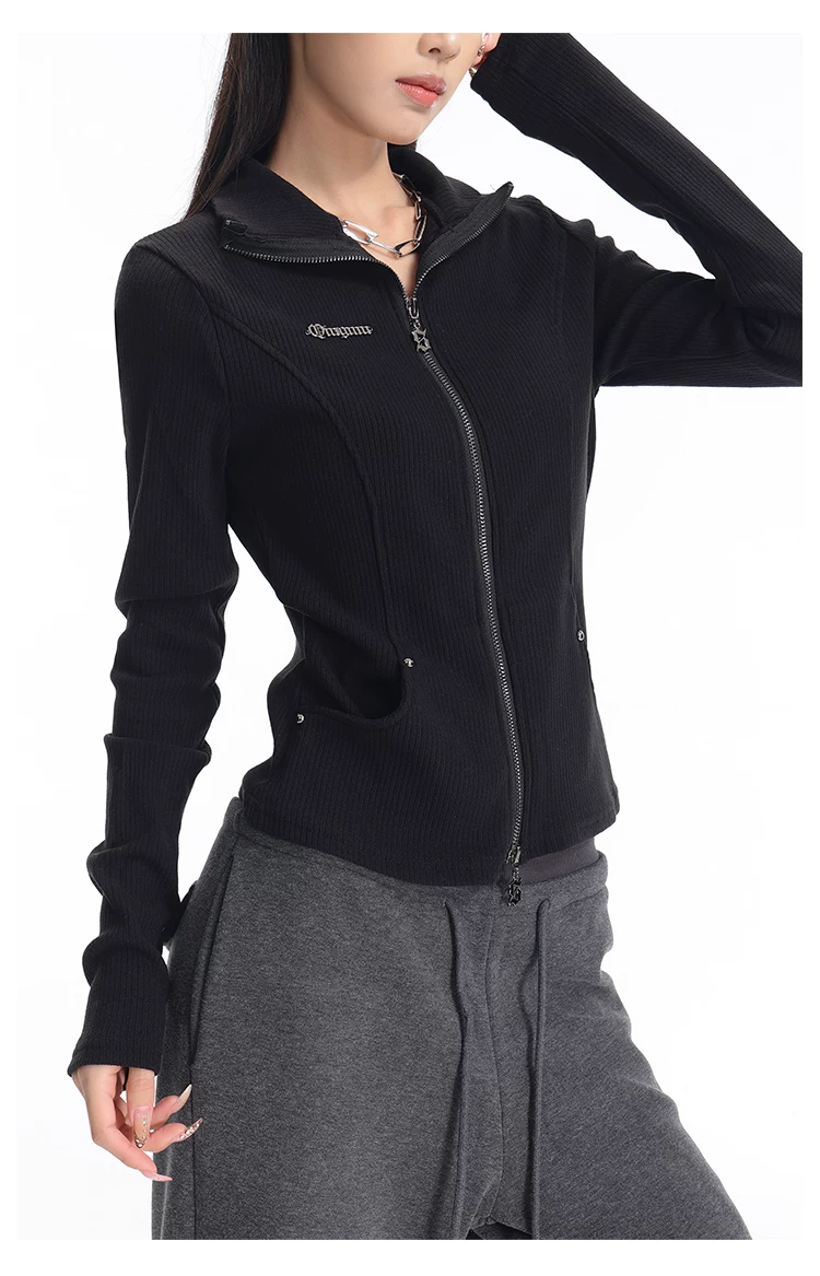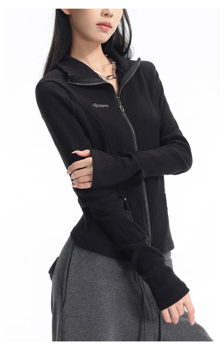 KEN STUDIO mùa thu đông mới phong cách Mỹ áo khoác cardigan dệt kim màu đen dành cho nữ dáng ôm vừa vặn áo dài tay sọc
