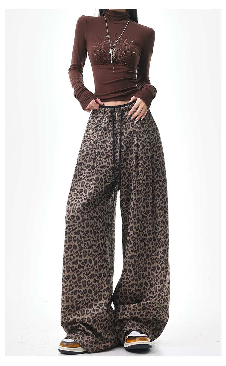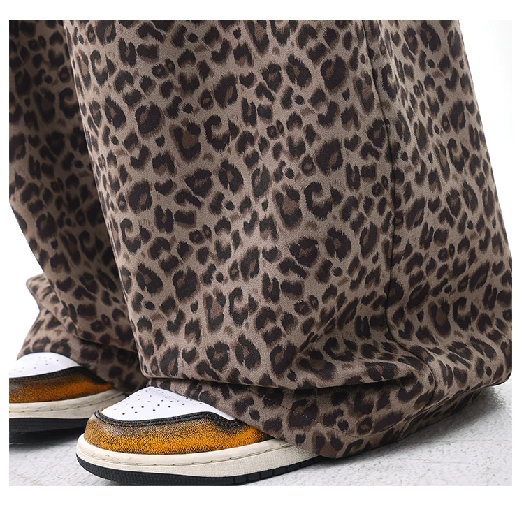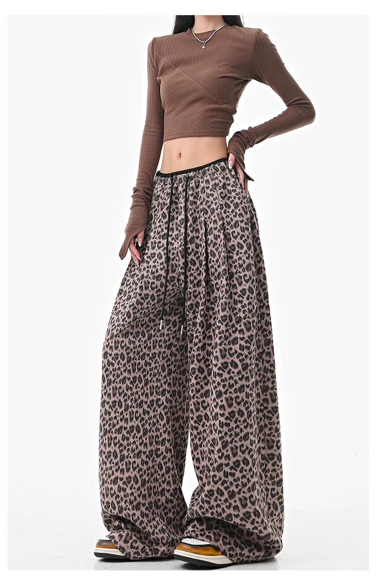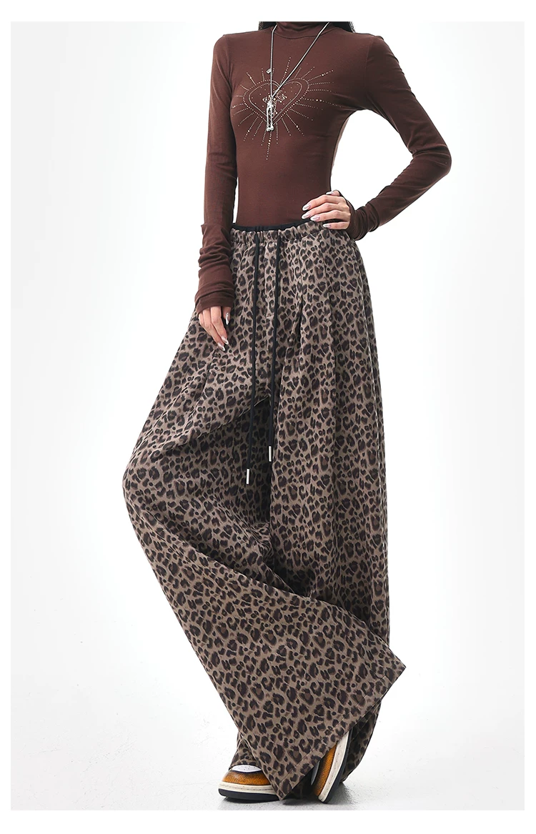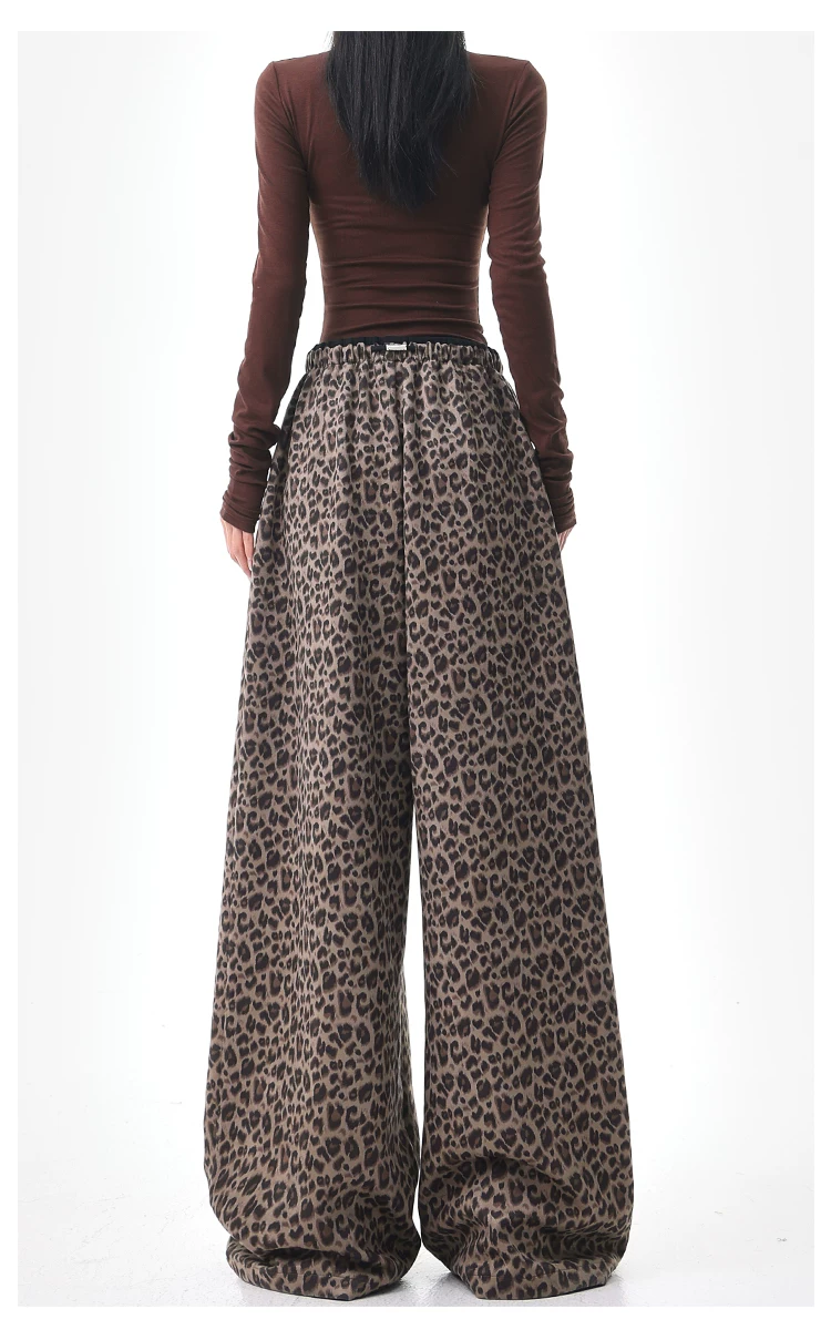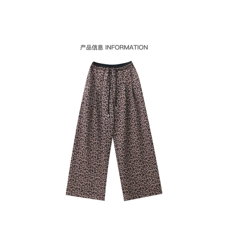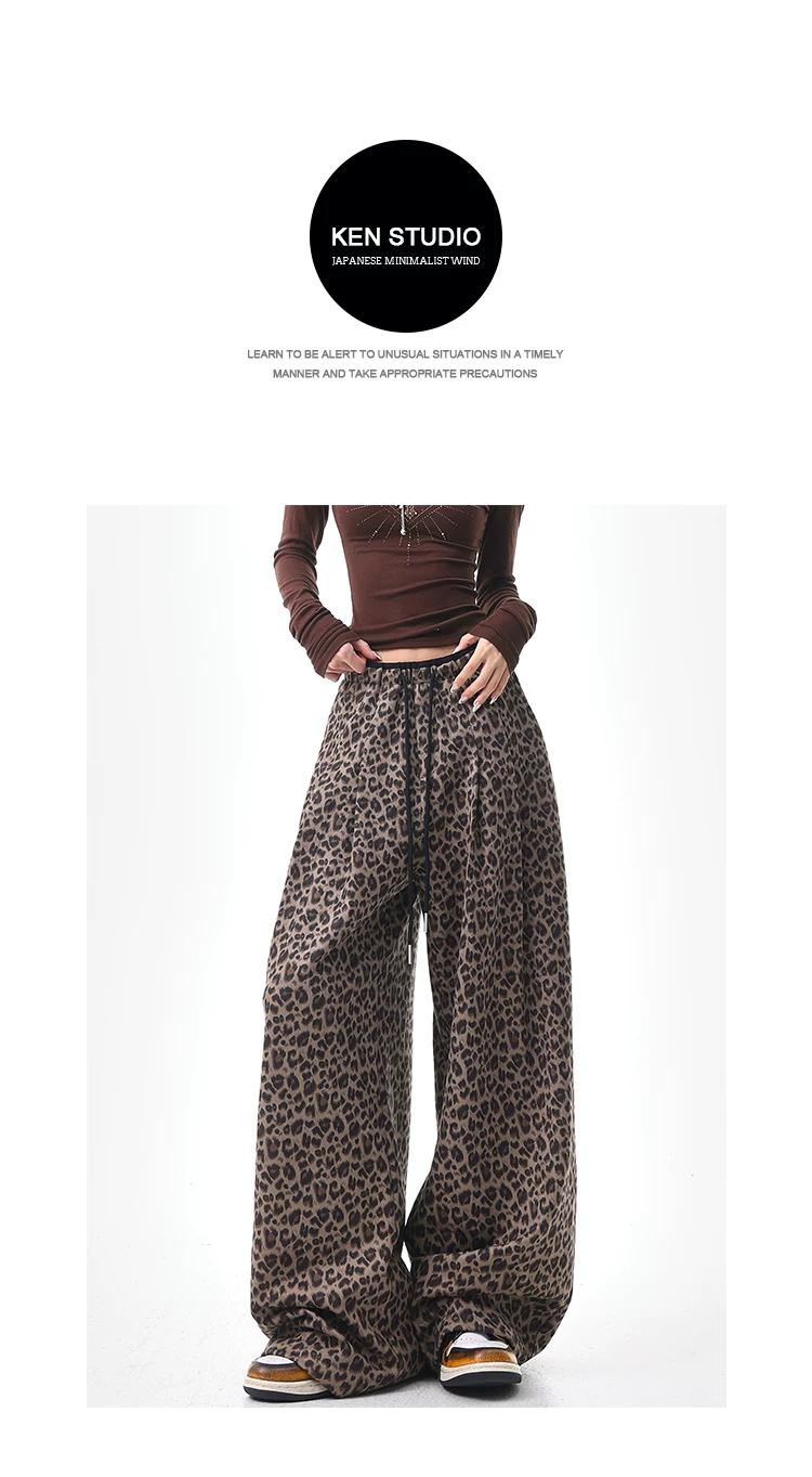 - KEN STUDIO mùa thu đông mới phong cách retro da lộn in họa tiết da báo quần âu nữ lưng cao dáng rộng quần ống rộng giảm béo