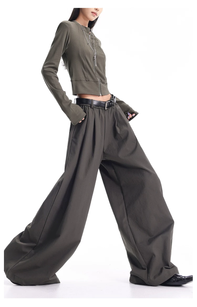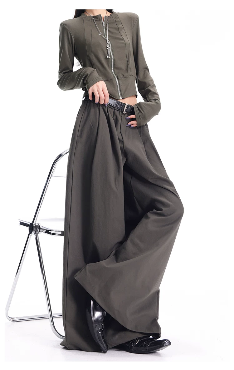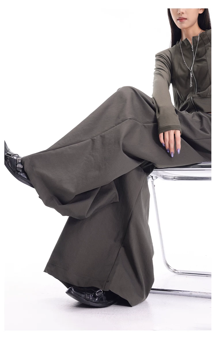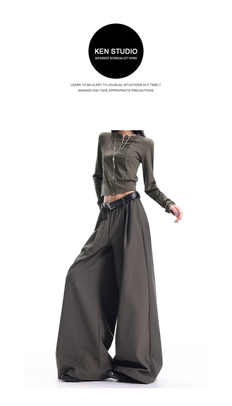 - KEN STUDIO mùa thu đông mới phong cách retro thẳng quần ống rộng thường ngày dành cho nữ quần ống rộng cạp cao giảm béo quần Yamamoto