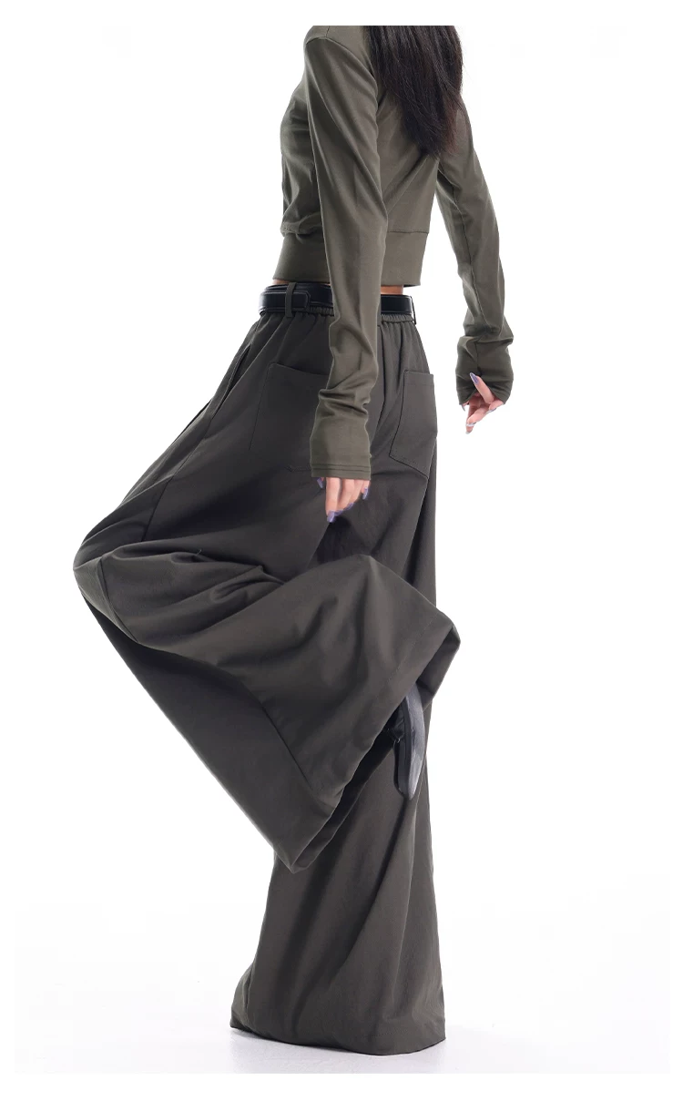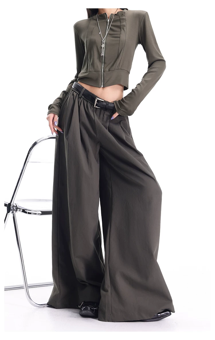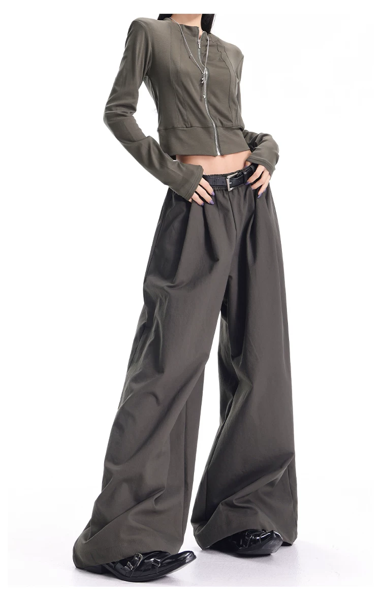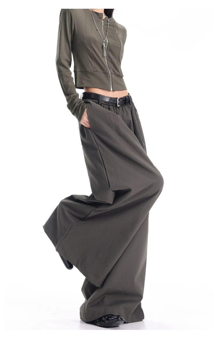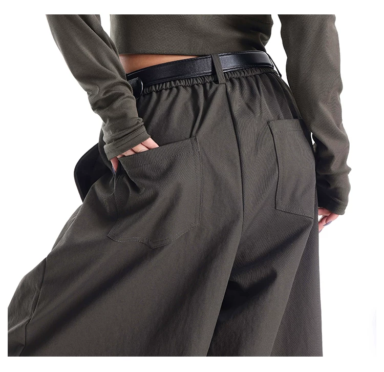 - KEN STUDIO mùa thu đông mới phong cách retro thẳng quần ống rộng thường ngày dành cho nữ quần ống rộng cạp cao giảm béo quần Yamamoto