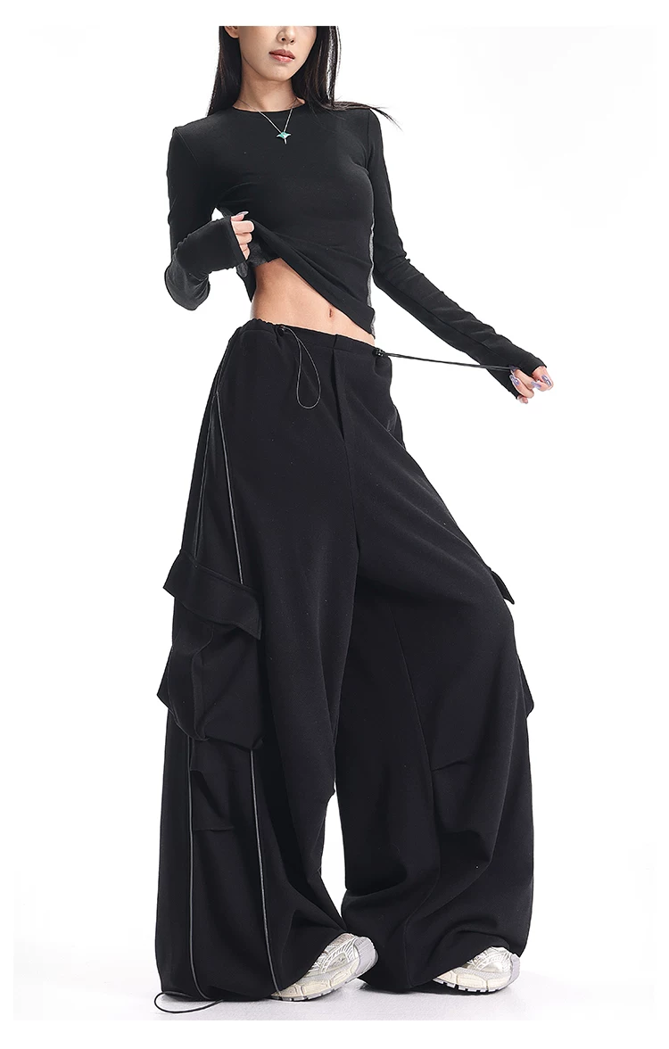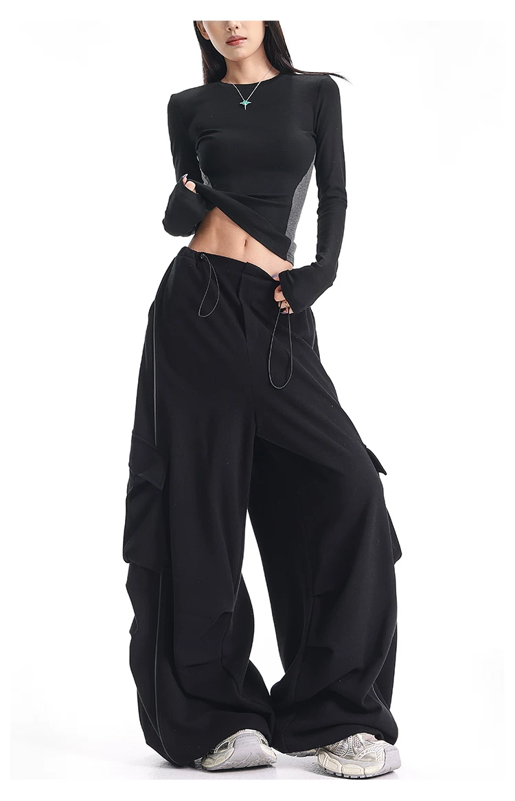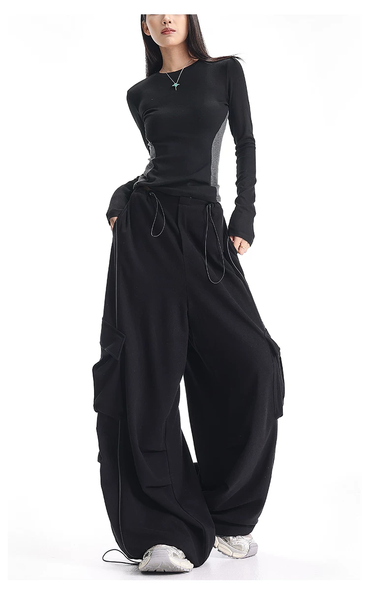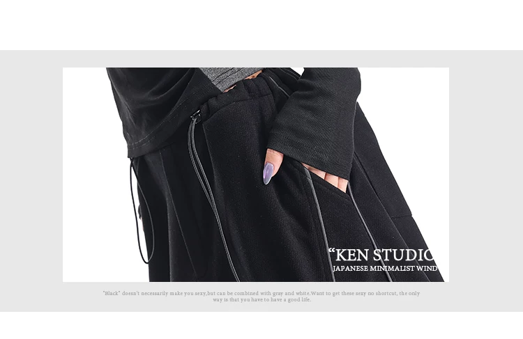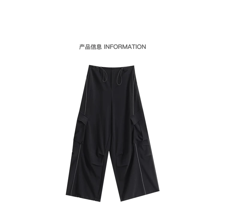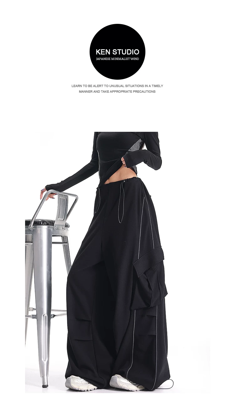 - KEN STUDIO mùa thu đông mới quần dài xếp ly phong cách Mỹ quần dài xếp ly kiểu lính dù quần thể thao ống rộng quần ống rộng dành cho nữ