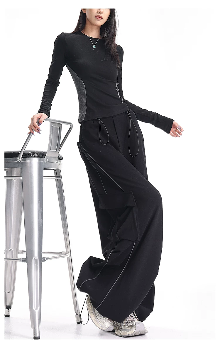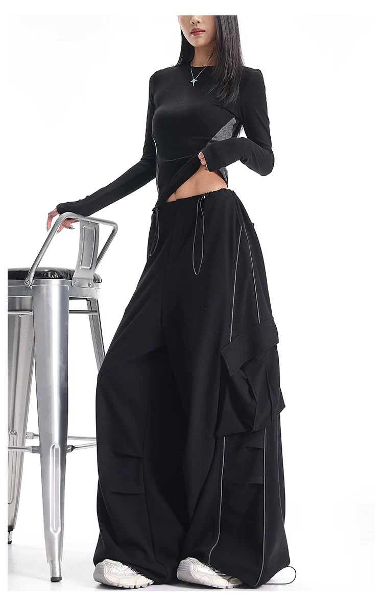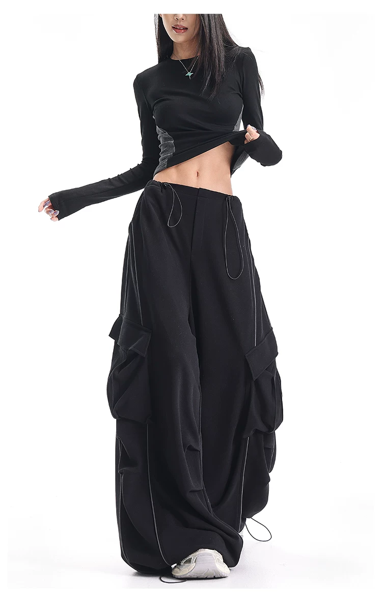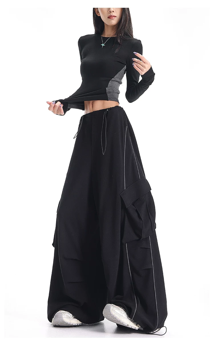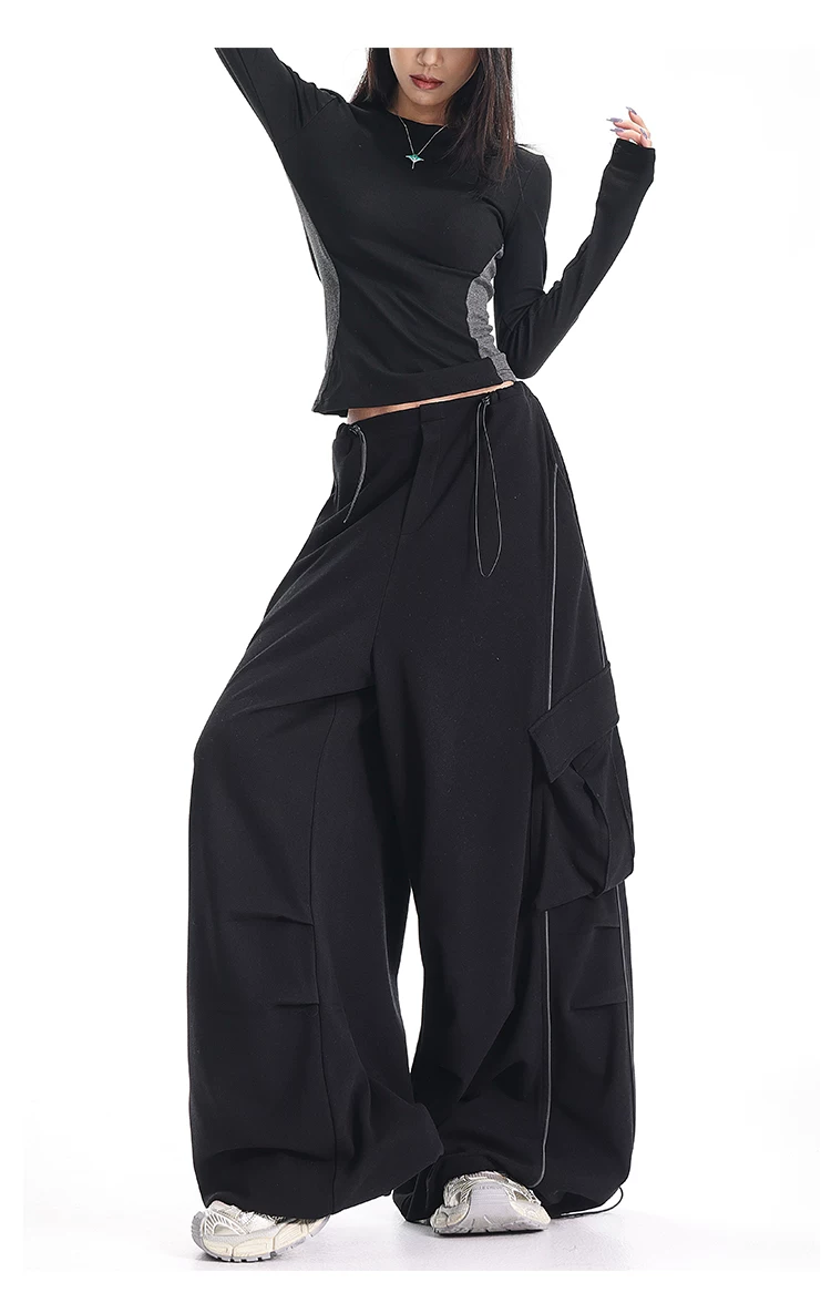- KEN STUDIO mùa thu đông mới quần dài xếp ly phong cách Mỹ quần dài xếp ly kiểu lính dù quần thể thao ống rộng quần ống rộng dành cho nữ