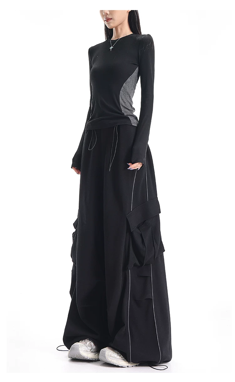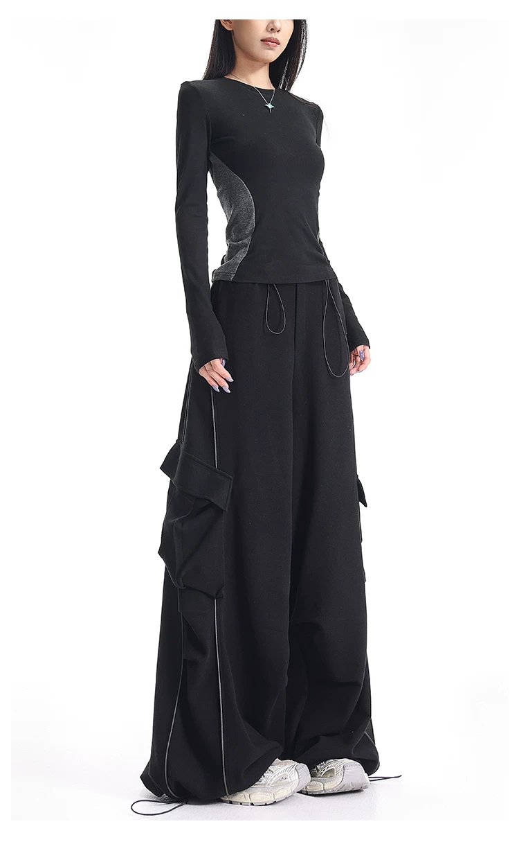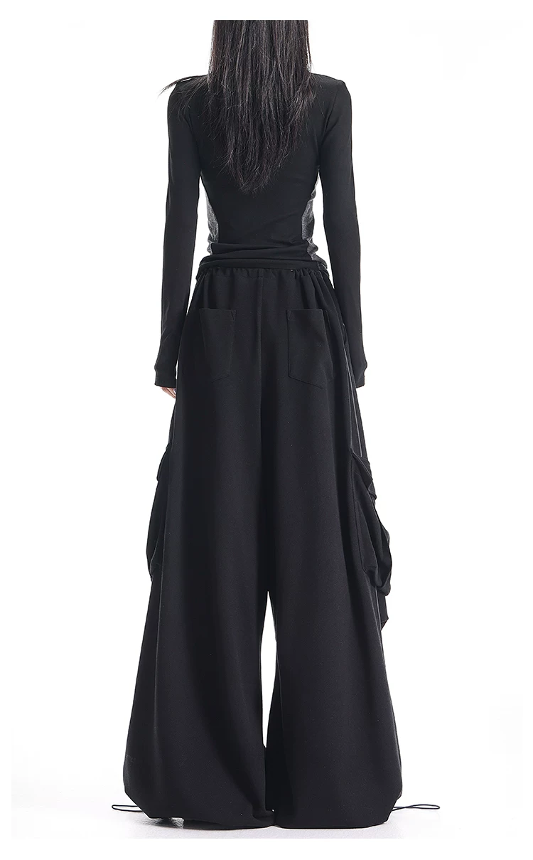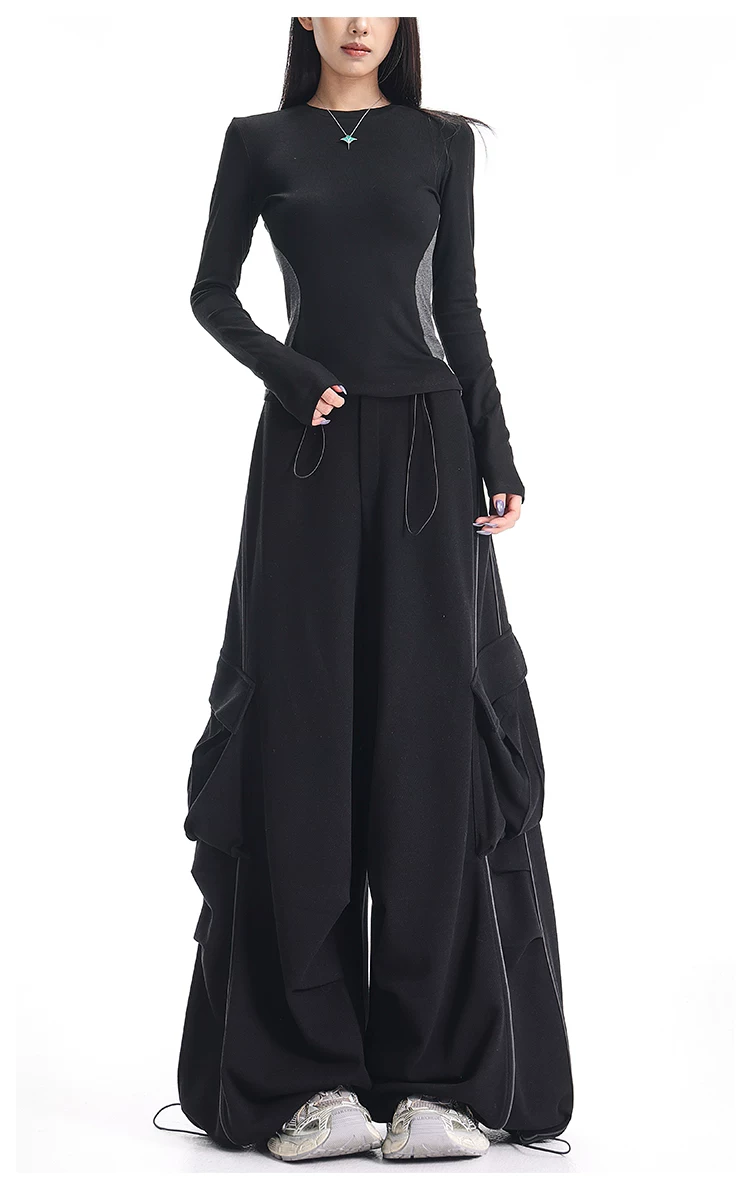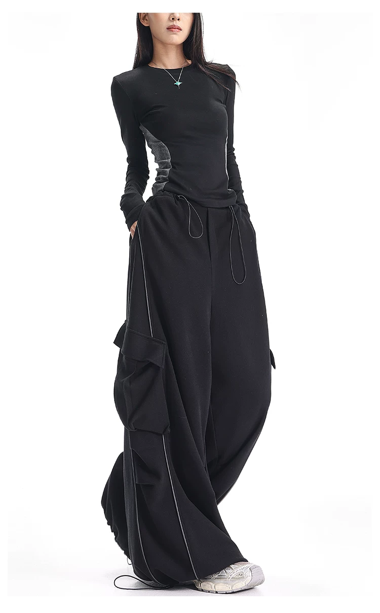 - KEN STUDIO mùa thu đông mới quần dài xếp ly phong cách Mỹ quần dài xếp ly kiểu lính dù quần thể thao ống rộng quần ống rộng dành cho nữ