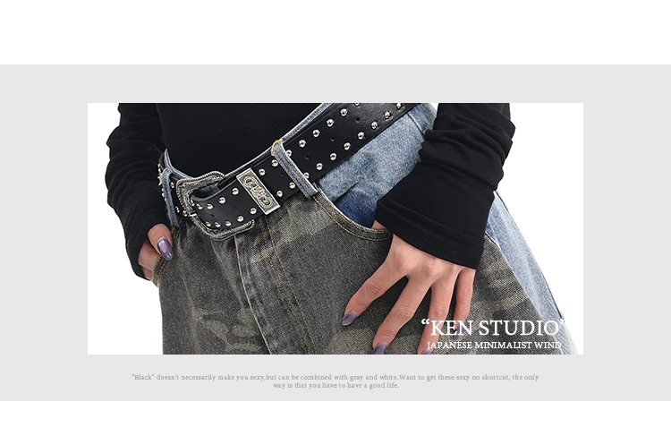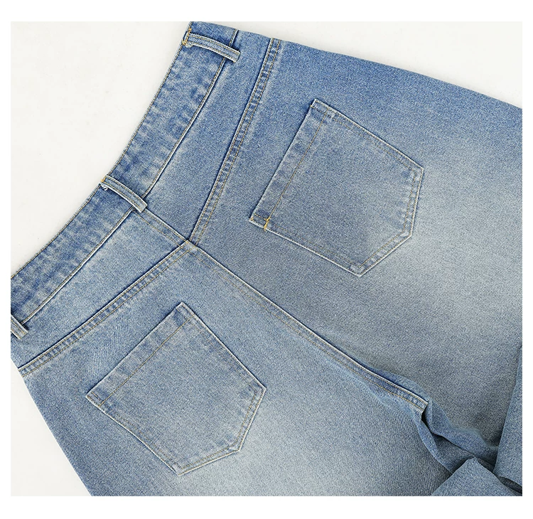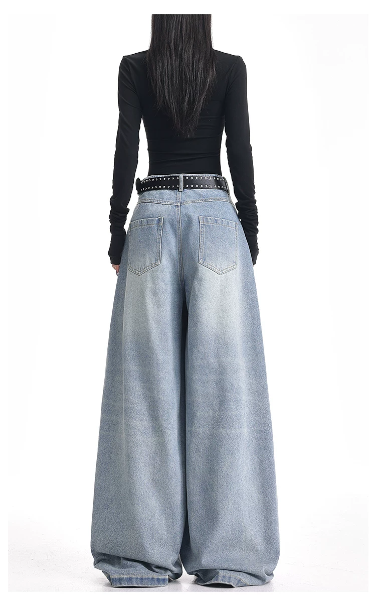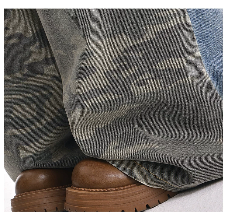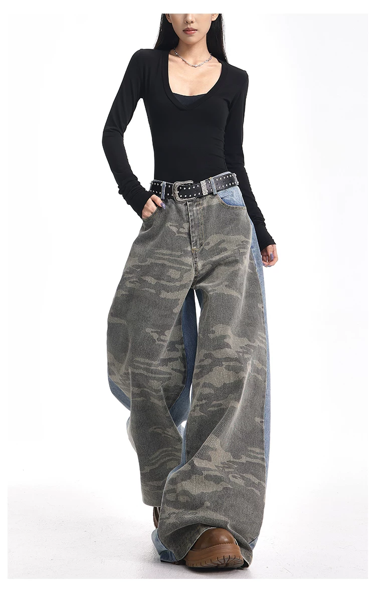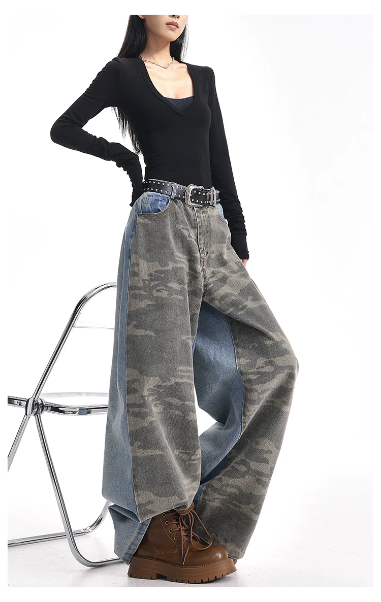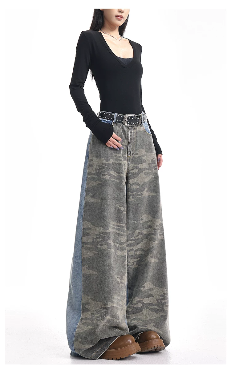 - KEN STUDIO mùa thu đông mới quần jean phối màu rằn ri phối màu kiểu Mỹ quần ống rộng dài đến sàn kiểu Mỹ
